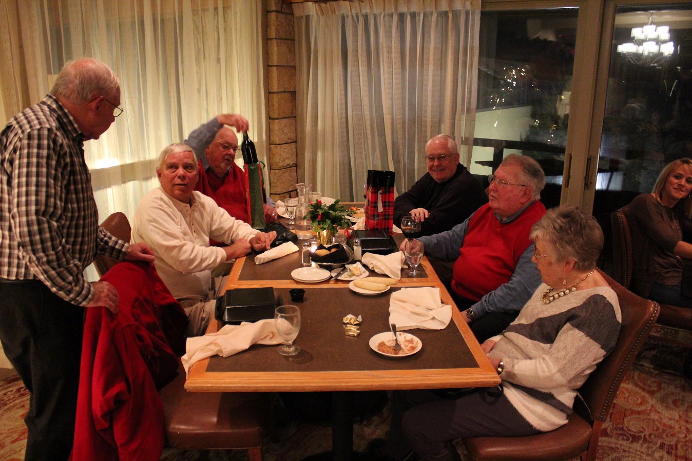 “Those Who Stay Behind” Annual Soiree: On Friday, the 12th, we again took Arrowwood by storm, the largest group of old people in one place at the facility since 1942. These are the people from the senior golf league who are either too old, too tired, too poor, or too much hockey fans to want to go south in the winter. The Fieldhammers did come back from Arizona for a week – they were tired of all the sunshine, so we accommodated them by not having a single ray of sunshine the entire week. Since we are such a known and infamous group, people of all ages and the 5 county area were dropping by our tables to greet us. A good time was had by all, though many will not remember it in the morning. And once again, thanks to Al for the annual gift of his homemade, and good, wine!