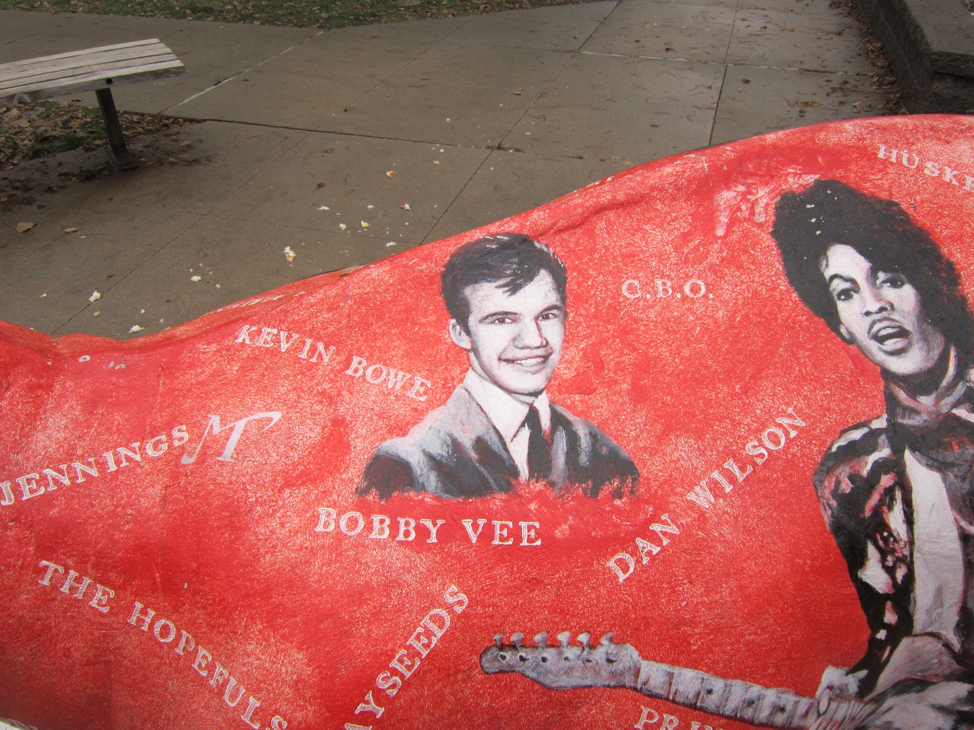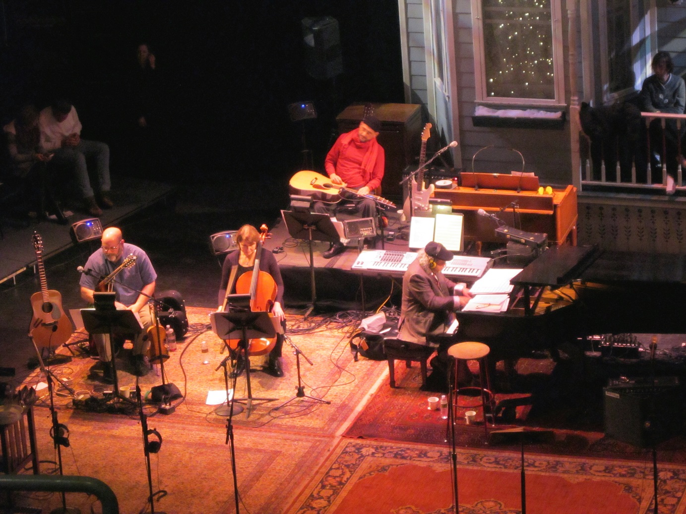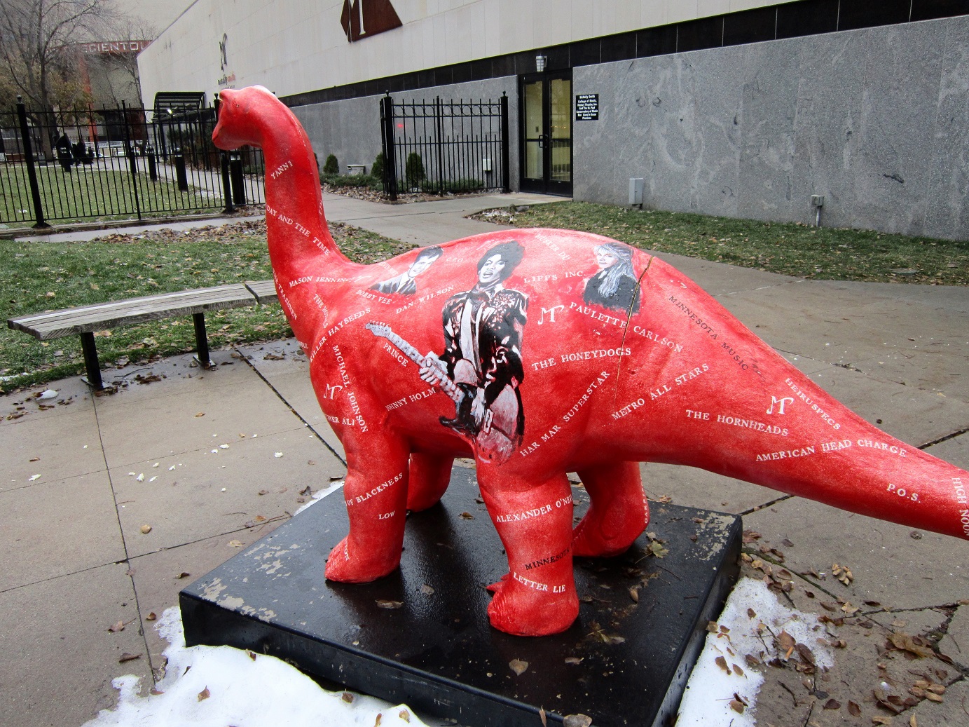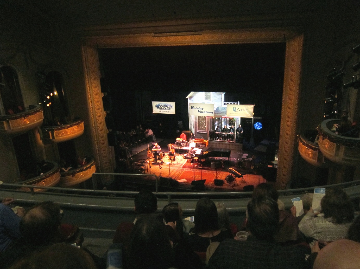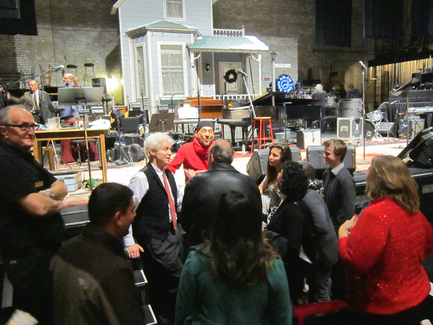 When a “Those Who Stay Behind” Annual Soiree isn’t enough to sate a weekend. How ’bout a trip to the Fitzgerald Theater on Exchange Street in St. Paul, kitty-corner from the Church of Scientology, across the street from the McNally Smith College of Music (and Dylan, the dinosaur), around the corner from the Minnesota Children’s Museum, and just down the block from Mickey’s Dining Car. It was a special date after all – twelve thirteen fourteen – and the guy is 72 years old now. We had seen him twice before, but never at his “home” at the Fitzgerald. It was 50 degrees in mid-December (it may have hit 30 twice the entire month of November) – the snow was almost gone from downtown St. Paul.