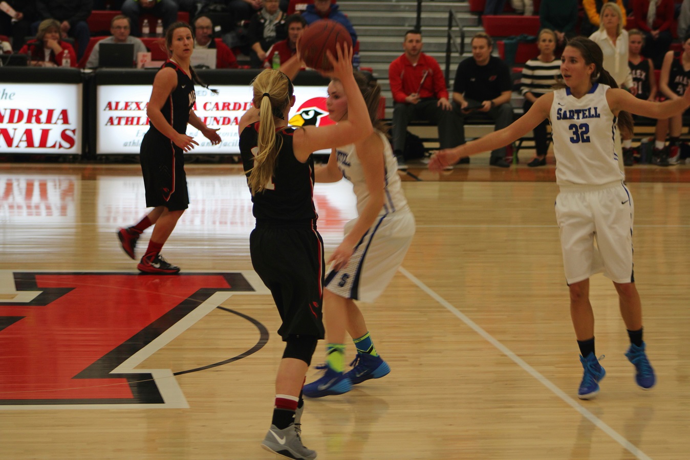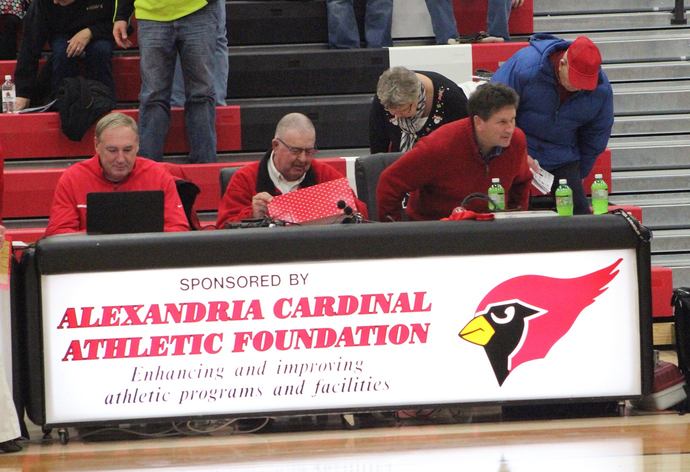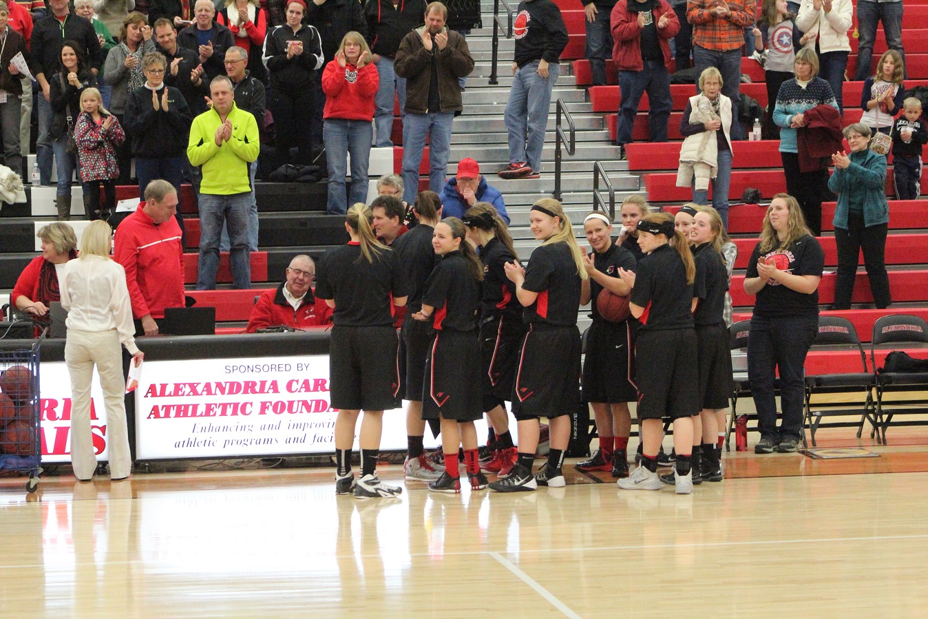 [The tribute to retiring Cardinal broadcaster Dave Harris continued at the girls’ basketball game against undefeated Sartell on Friday night.]