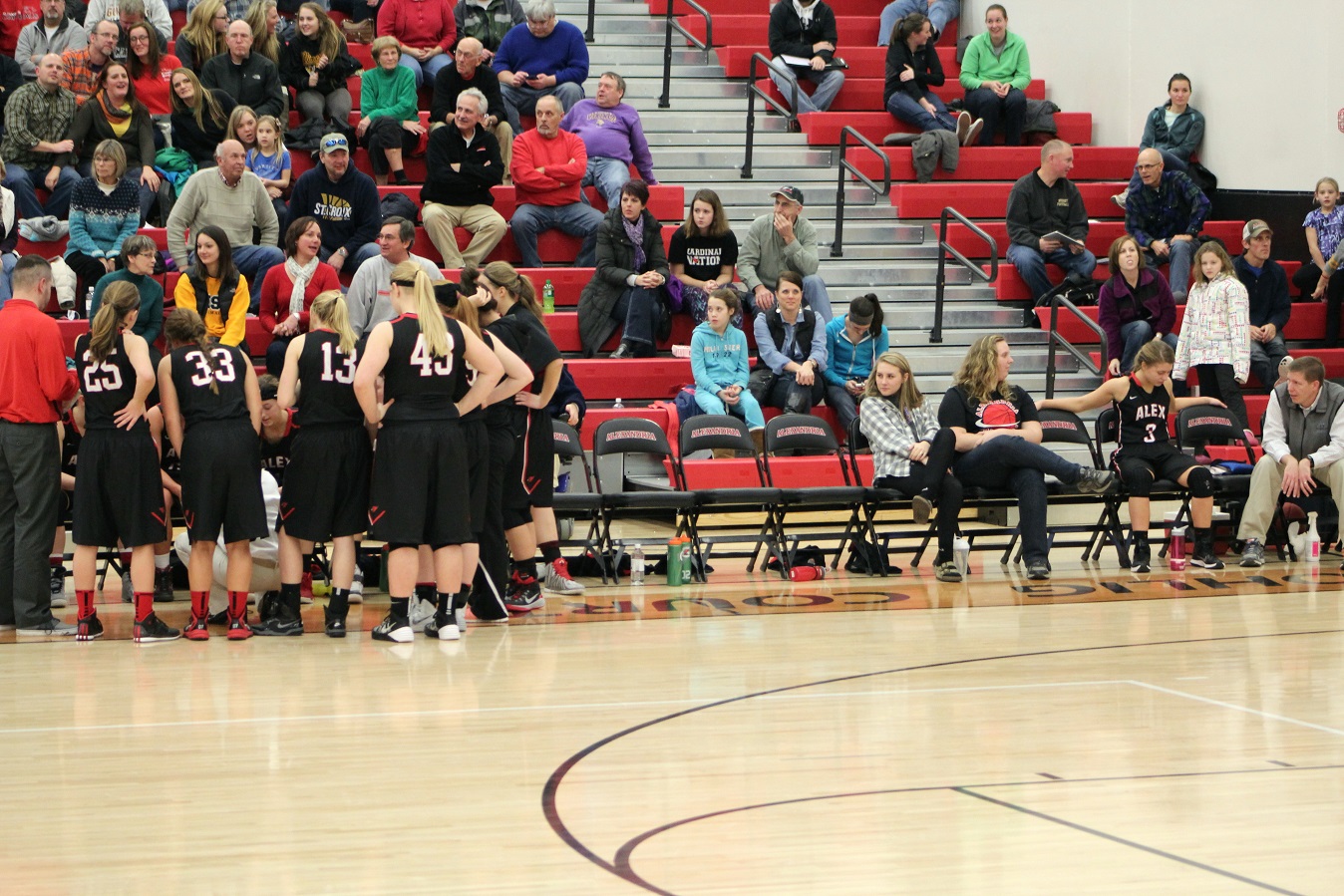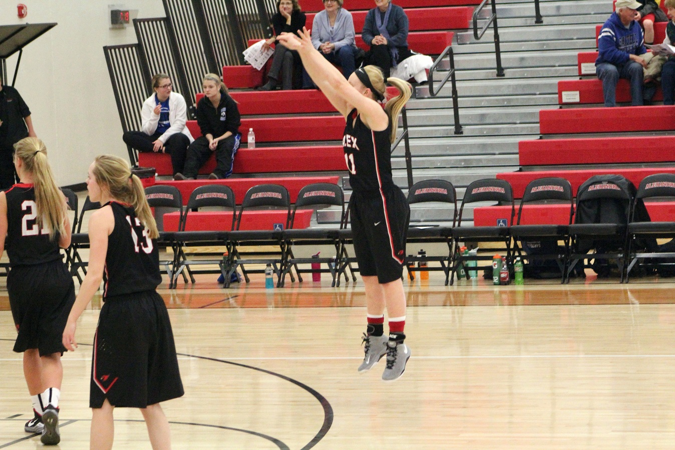 [Kohler and braintrust supported in the background by the center for the last state tournament team, her parents, and her grandmother. They vibes were good!]