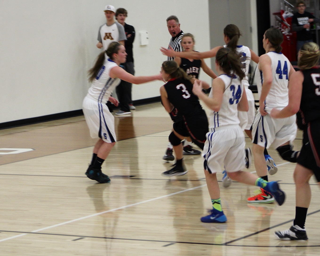 [And then Kendall (far right) took a hard fall with about 4 minutes left in the game and didn’t play again. I’ve been told that happily she is OK.]