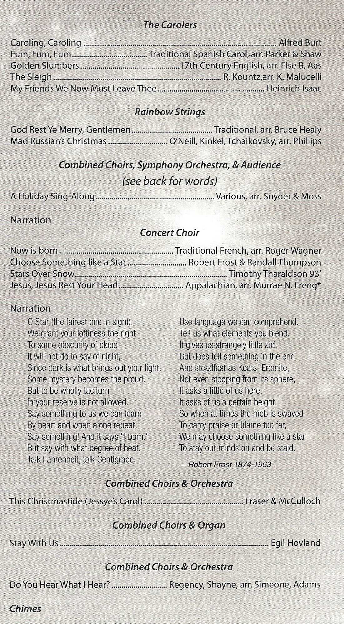 Part of every Christmas concert since we’ve been going has been the narration by Bob Hines. Our old friend has the perfect late-night FM deejay voice!: