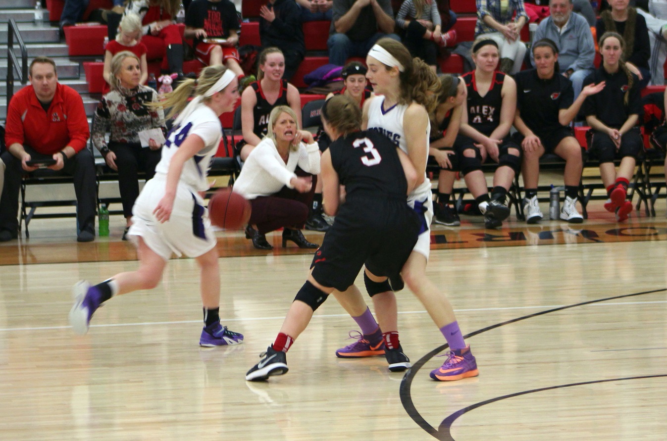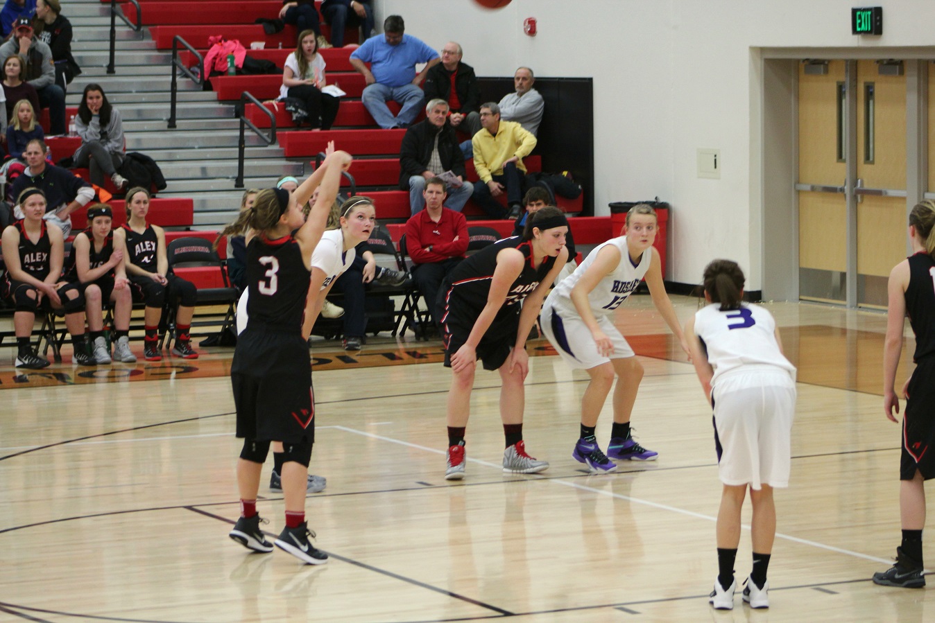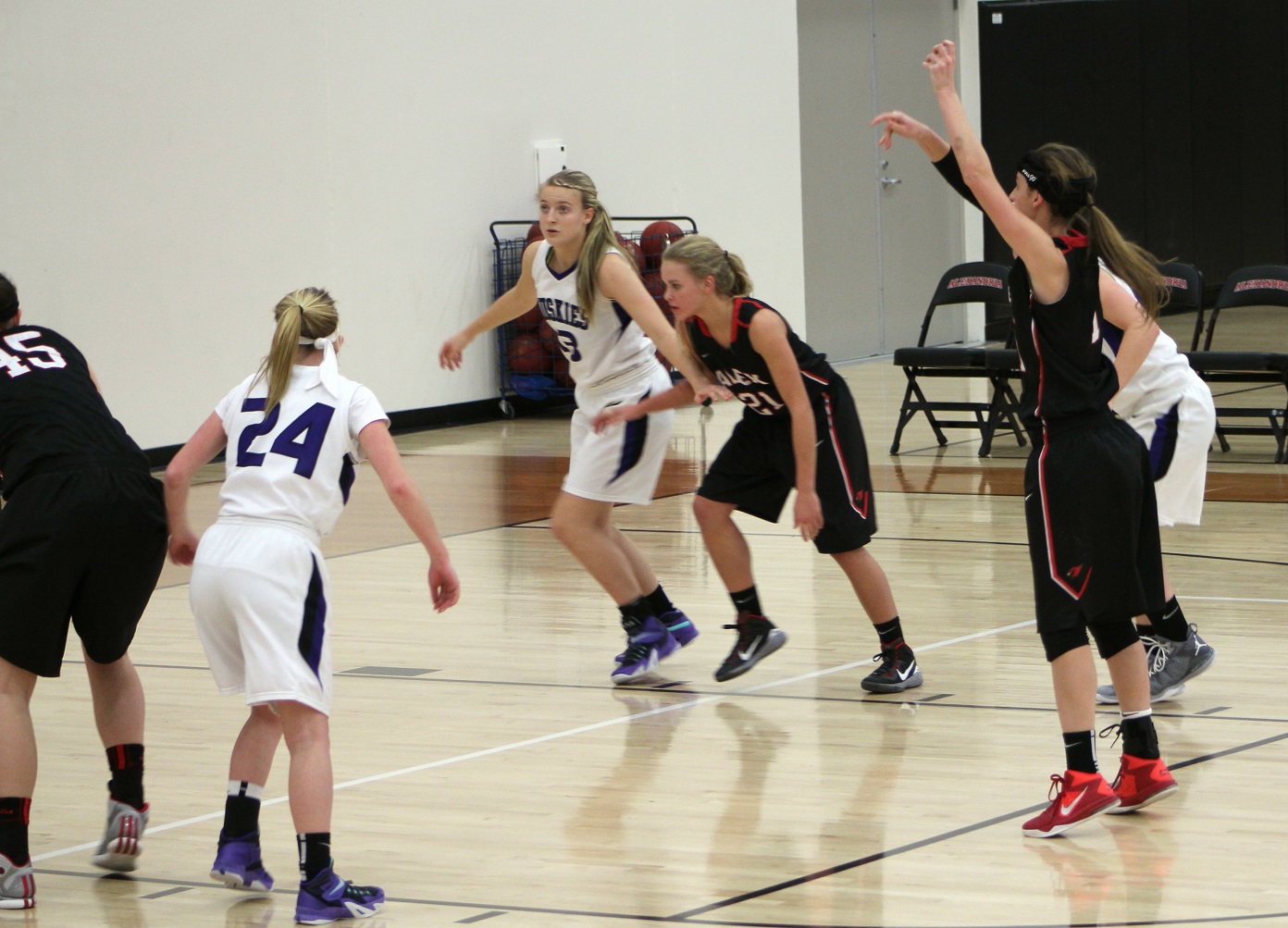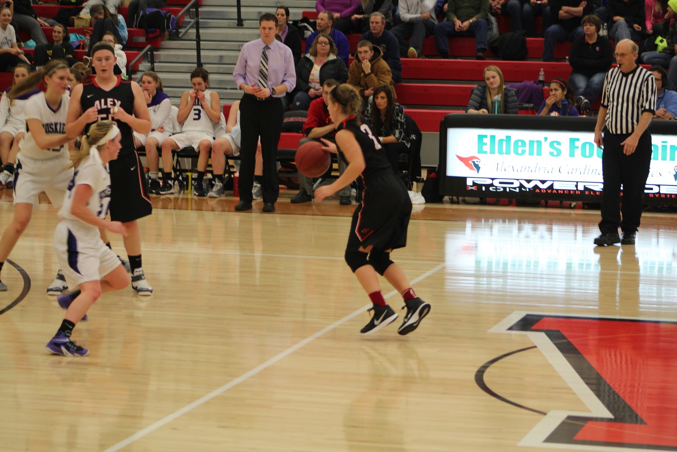 [Kohler shouts, “Don’t you block my daughter!” This was the key match-up all night, Kendall on the Huskies’ point guard, Sidney Schiffler (24), who is their star player. Kendall is prone to foul trouble, but she did a great job defensively on this night.]