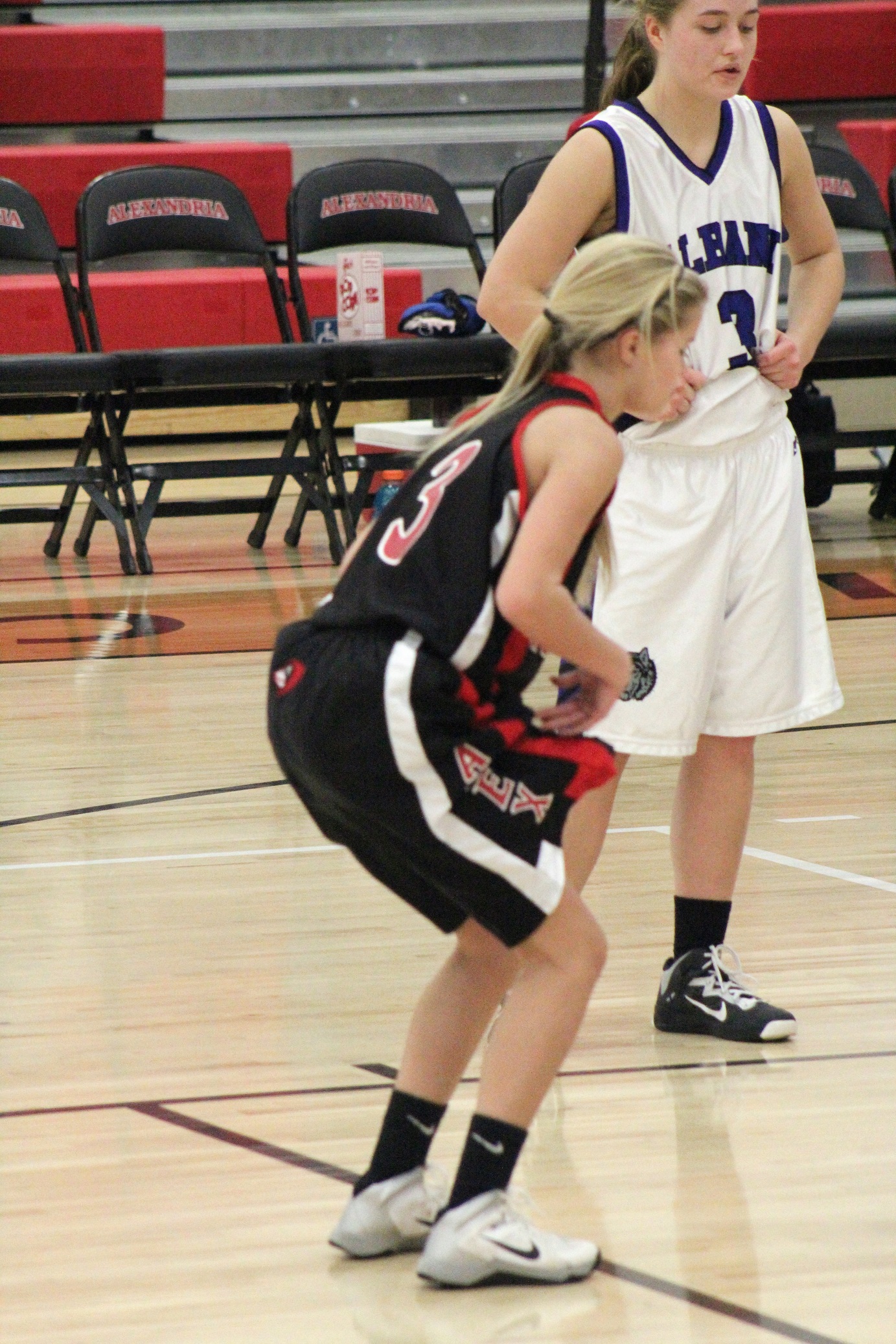 [We have a plethora of number 5’s – I believe this is Ellie Ronning. And she’s playing ‘D’ with Alayna Aanerud (3). The entire JV team are sophomores.]