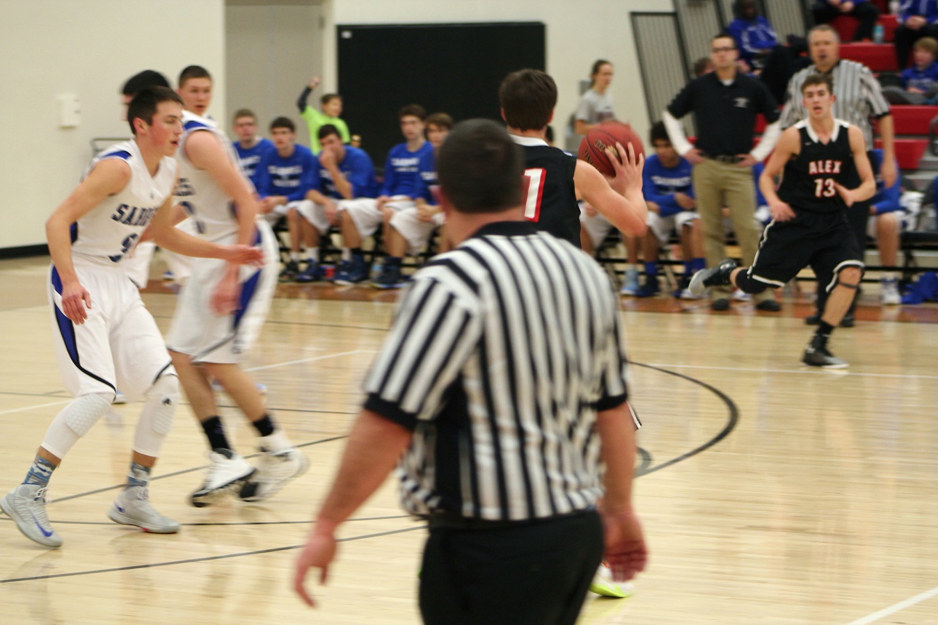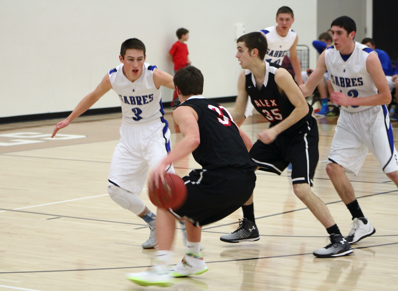 [Grant Toivonen (1), 5’10” senior guard, as Owen moves to cut off the drive to the basket.]