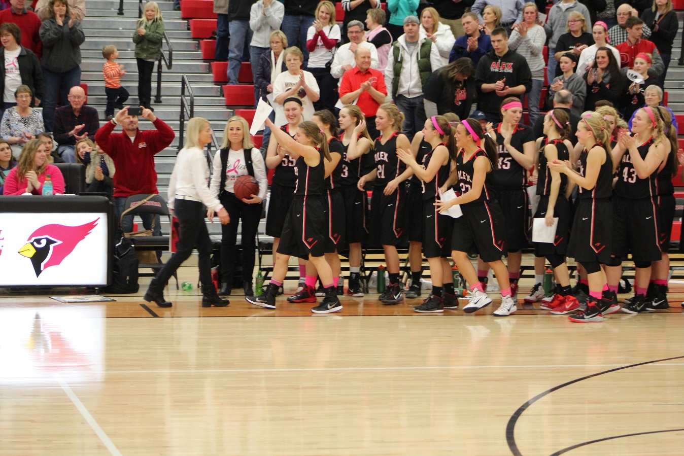 Saturday night the Cardinals hosted Bemidji in a girl/boy basketball doubleheader. The girls’ game was particularly significant in that Coach Wendy Kohler was going for her 500th career victory. So, I began the evening by being late, because . . . our morning meeting ran long, which meant we were late getting the winery for Anthony Miltich, which meant we were late leaving the winery. Anyway, I always wanted to just video Kohler, particularly in tight games when she’s whistling and shouting instructions. This game unfortunately (in that regard) was “over” by the time I got there a little before halftime . . .