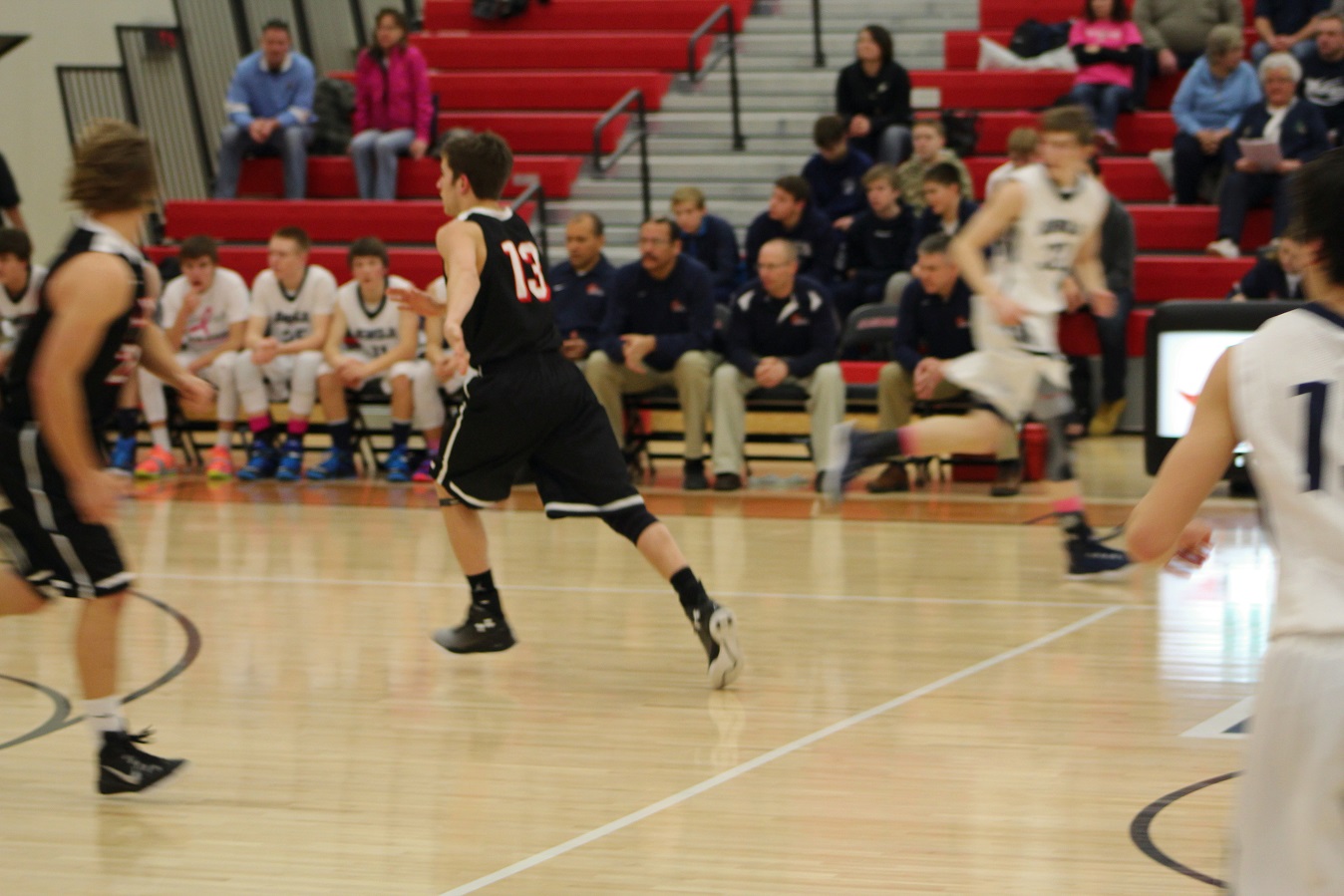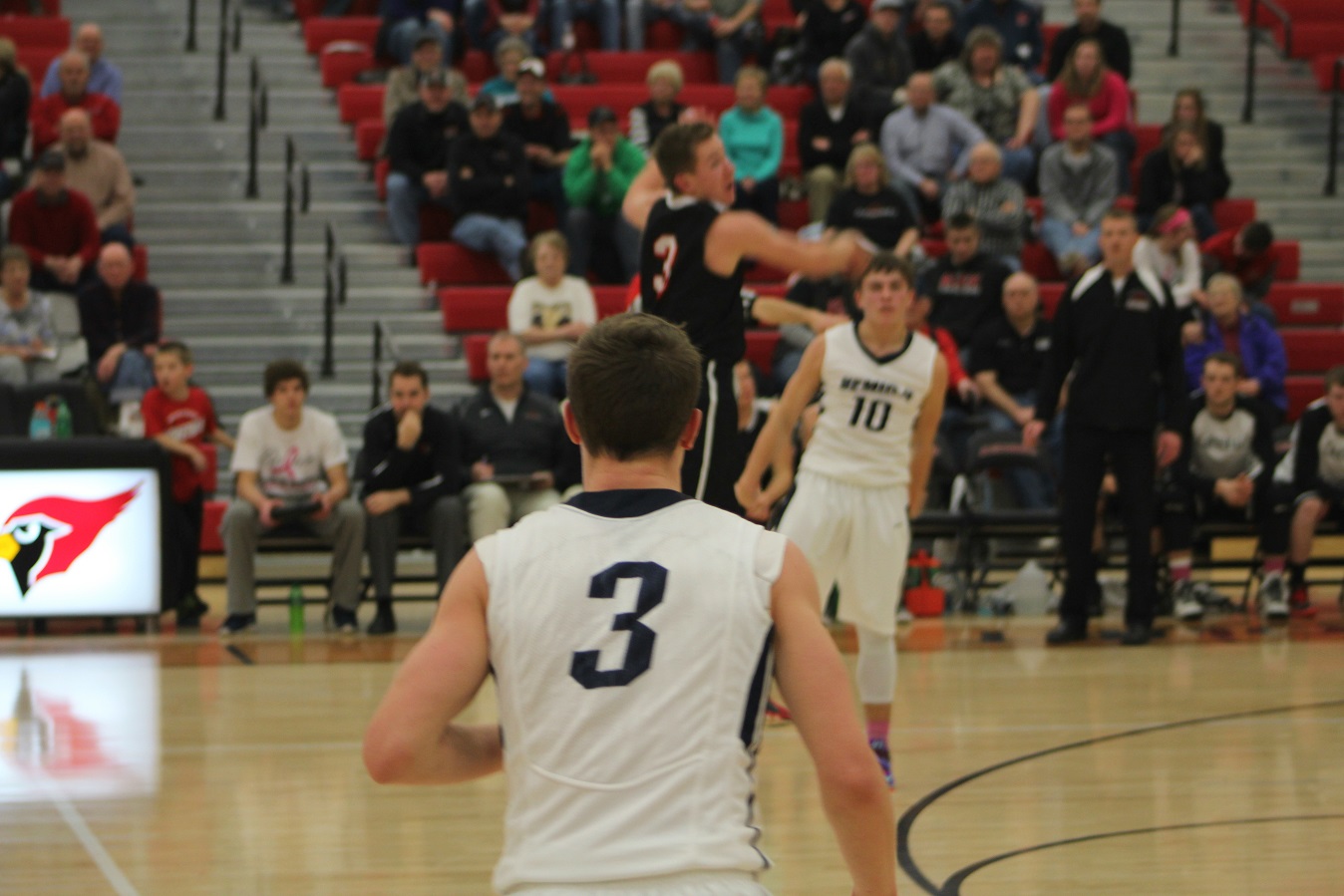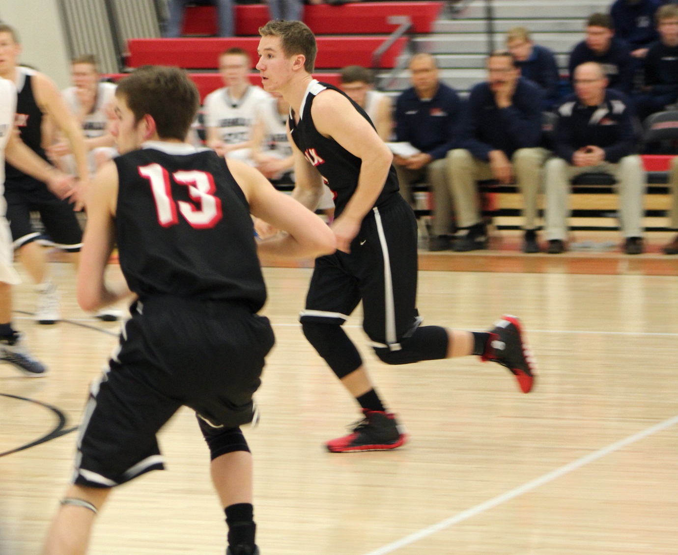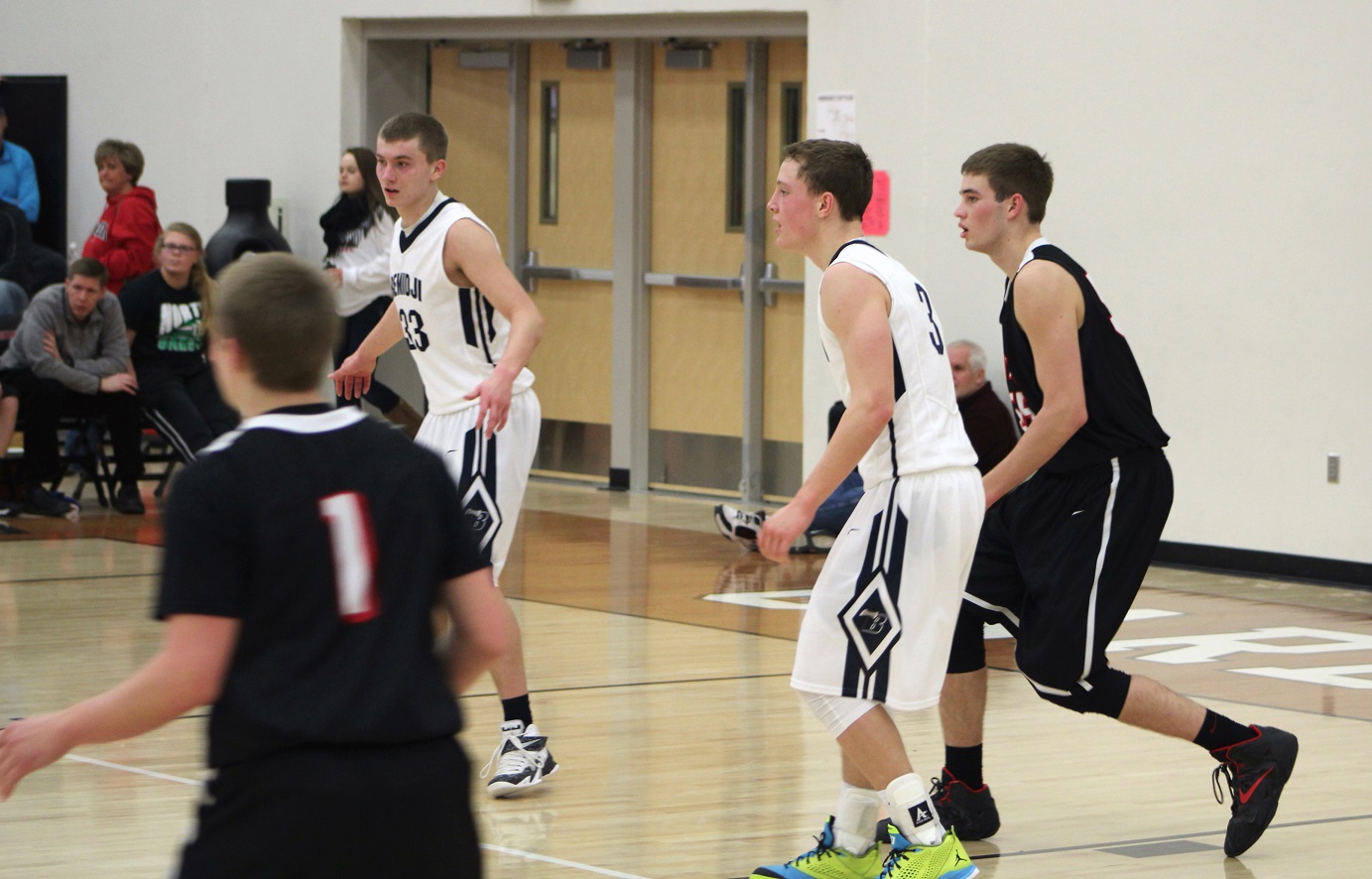[Ben Corson (13) and Kris Setterstrom (3), senior guards. Kris had a particularly strong game offensively as he really pushed for his shot.]