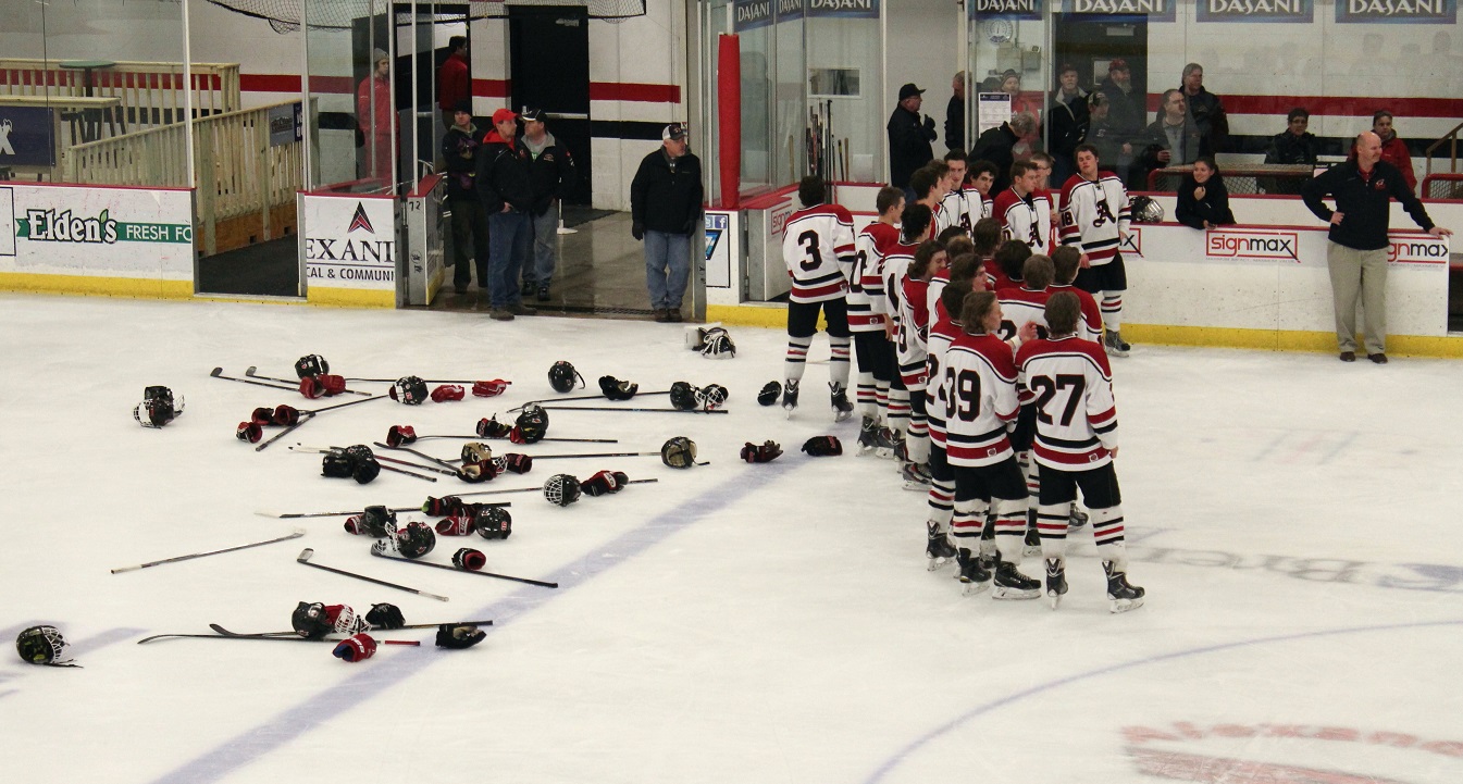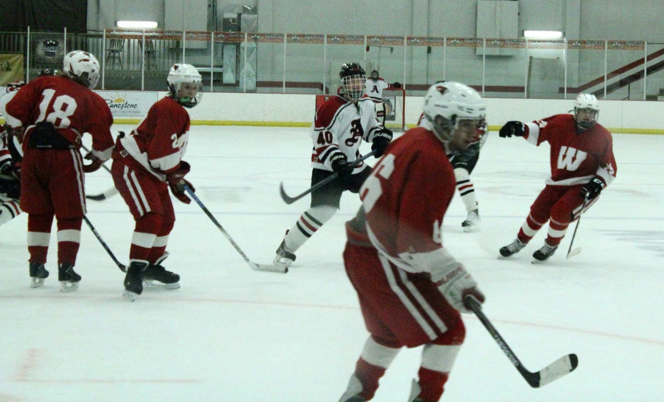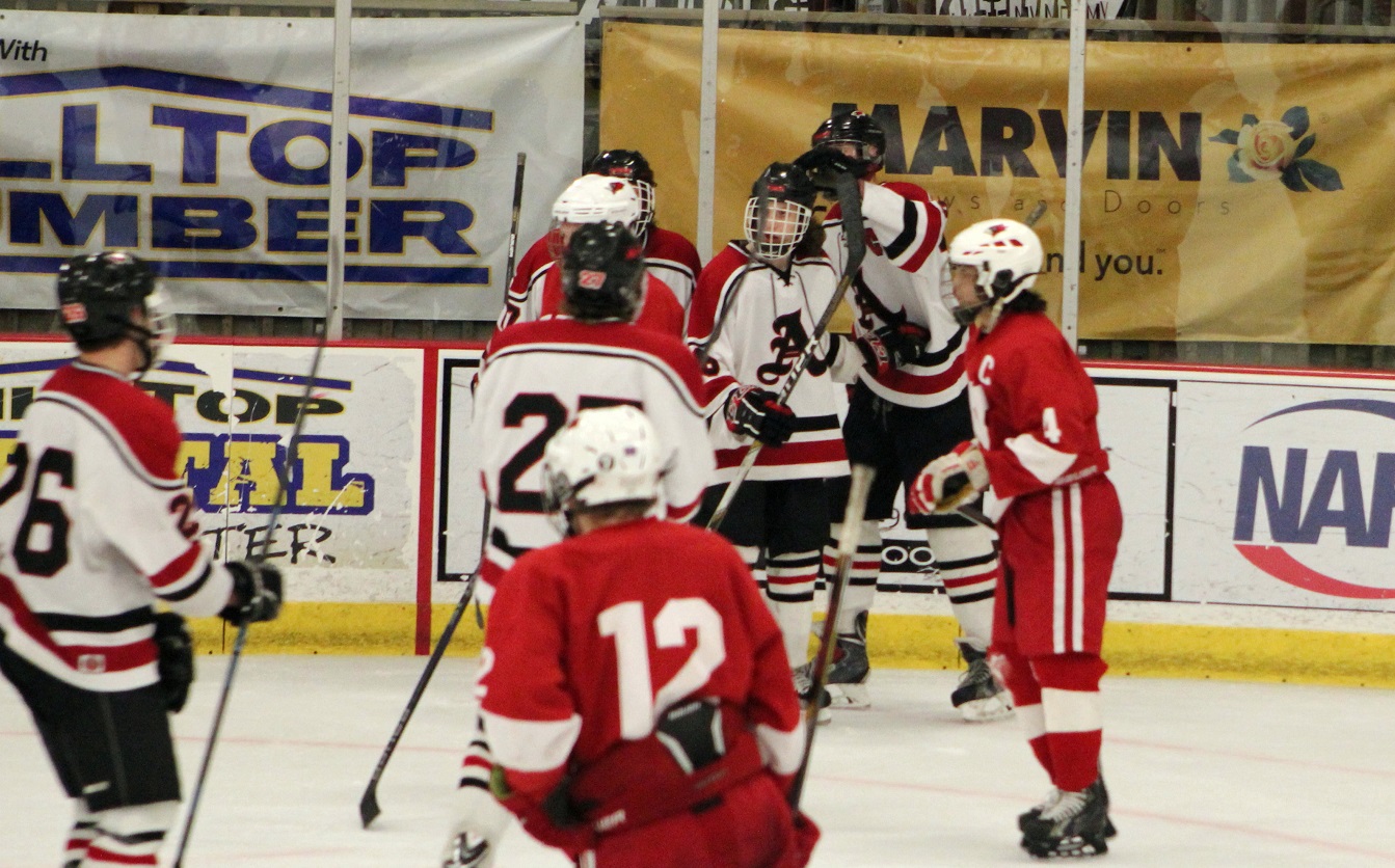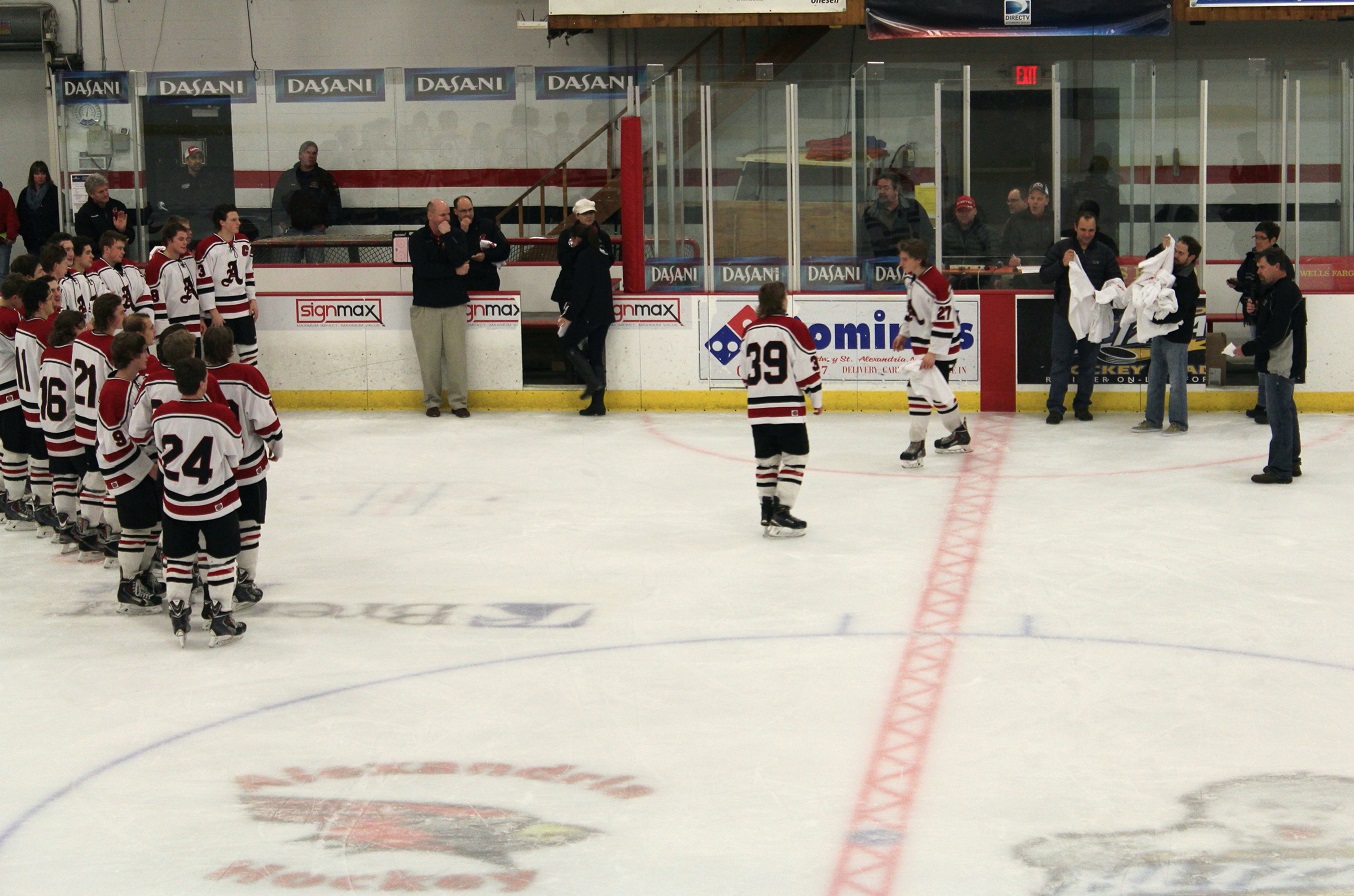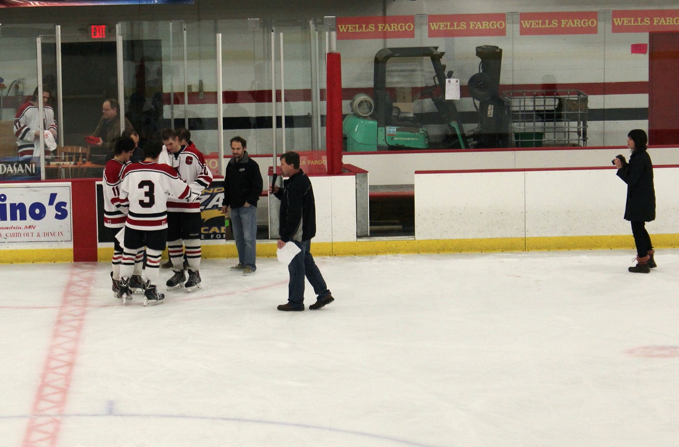 This one was an NC’er from the git go! Our Cards, against the Willmar Cardinals, wanted to secure on home ice our first conference title since the 2003-04 team finished a series of four conference titles in a row. There’s one more regular season game to go before sections start. (The final shots on goal were ultimately maladjusted to 53 – 15. It was hard to keep up as the entire third period was on running time.)