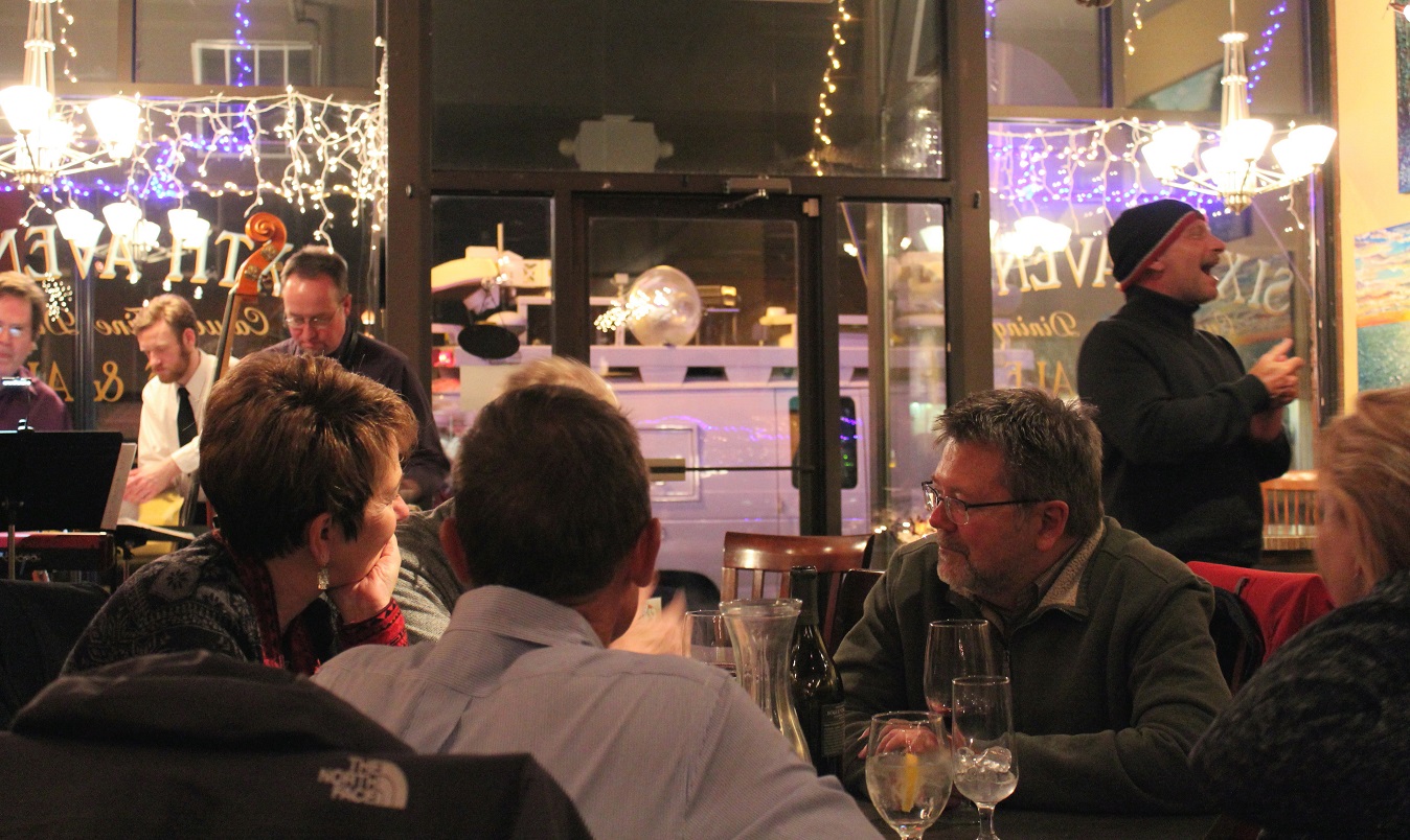 [Well, Raapers was right across the street so across we went . . . seven of us had a repast, a beverage, and a spirited discussion of stuff right up until . . . ]