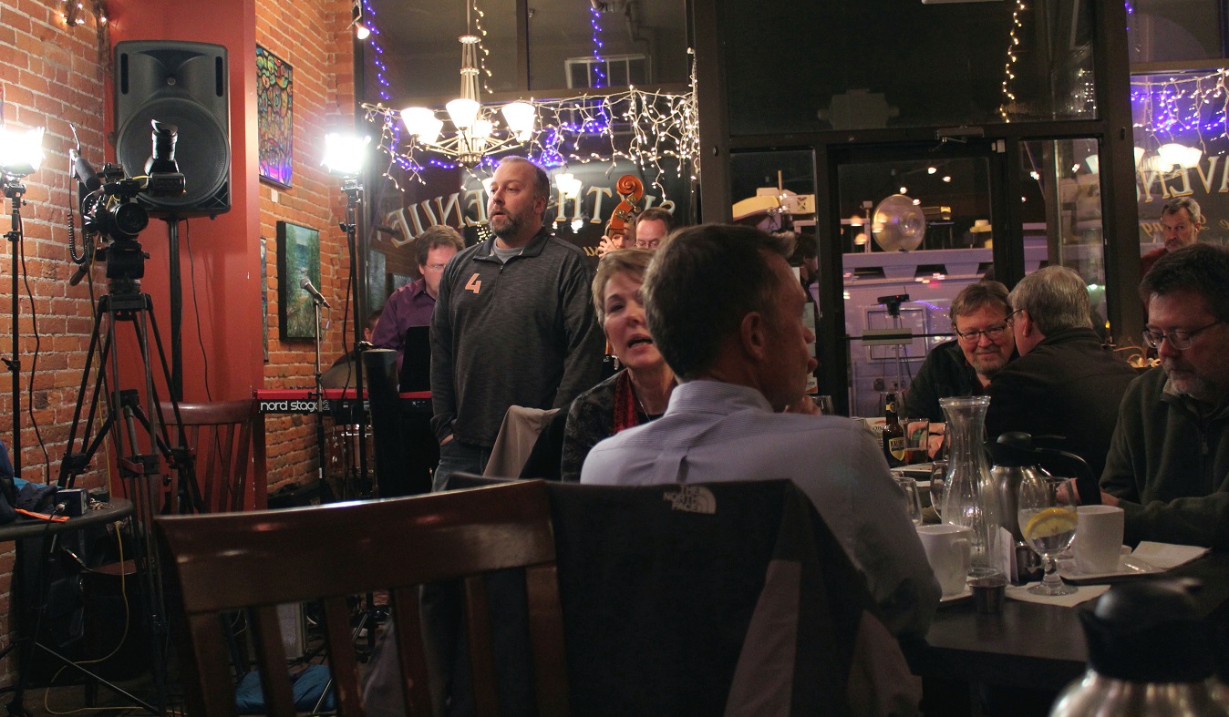 [A ne’er-do-well, ever on the move, visits with Greg Donahue, CLSO officer and violin performer of some repute, after the event.]