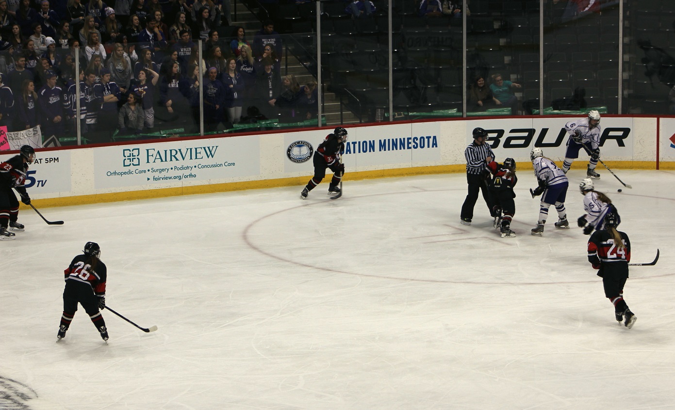 [The Heckert line with Wosepka and Ellingson, and the defensive pair of O’Kane and junior Karina Carlsen (31).]