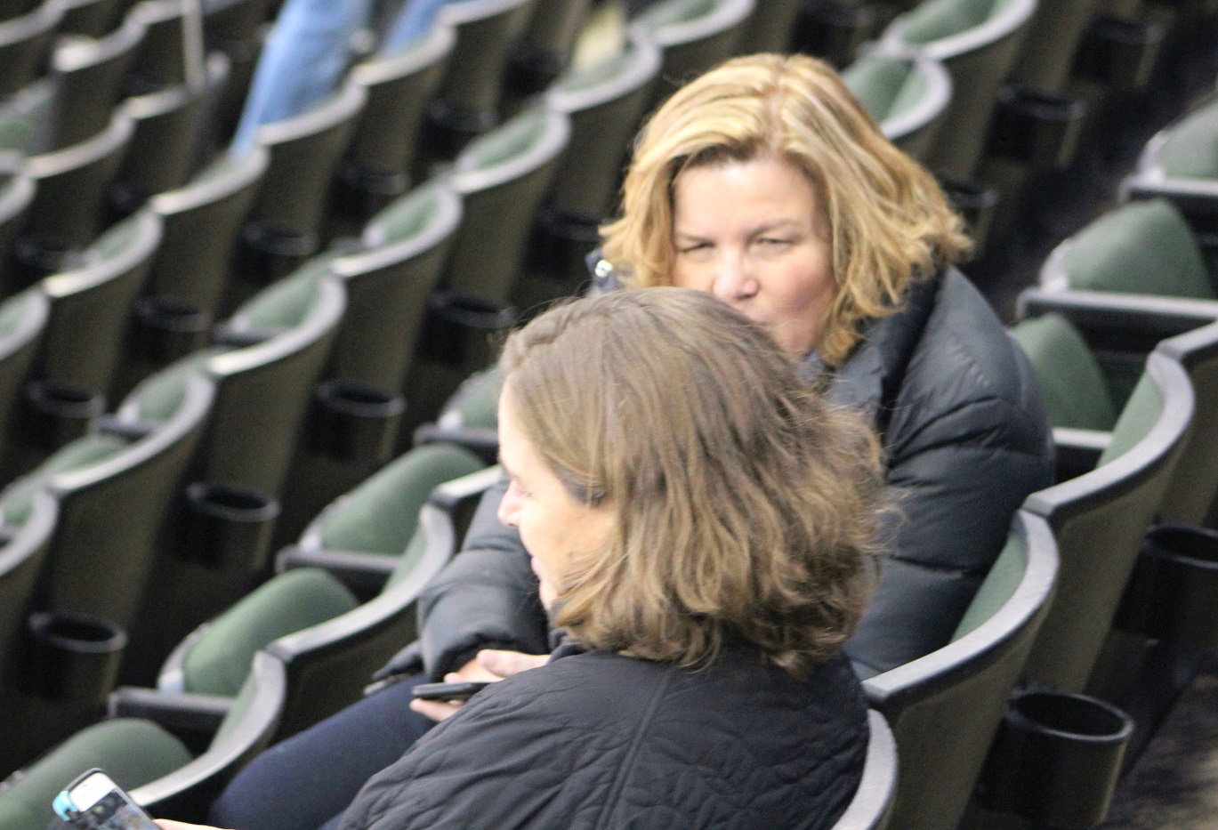 [Big screen again of freshman Allison O’Kane (36), Kristin and Rev.]