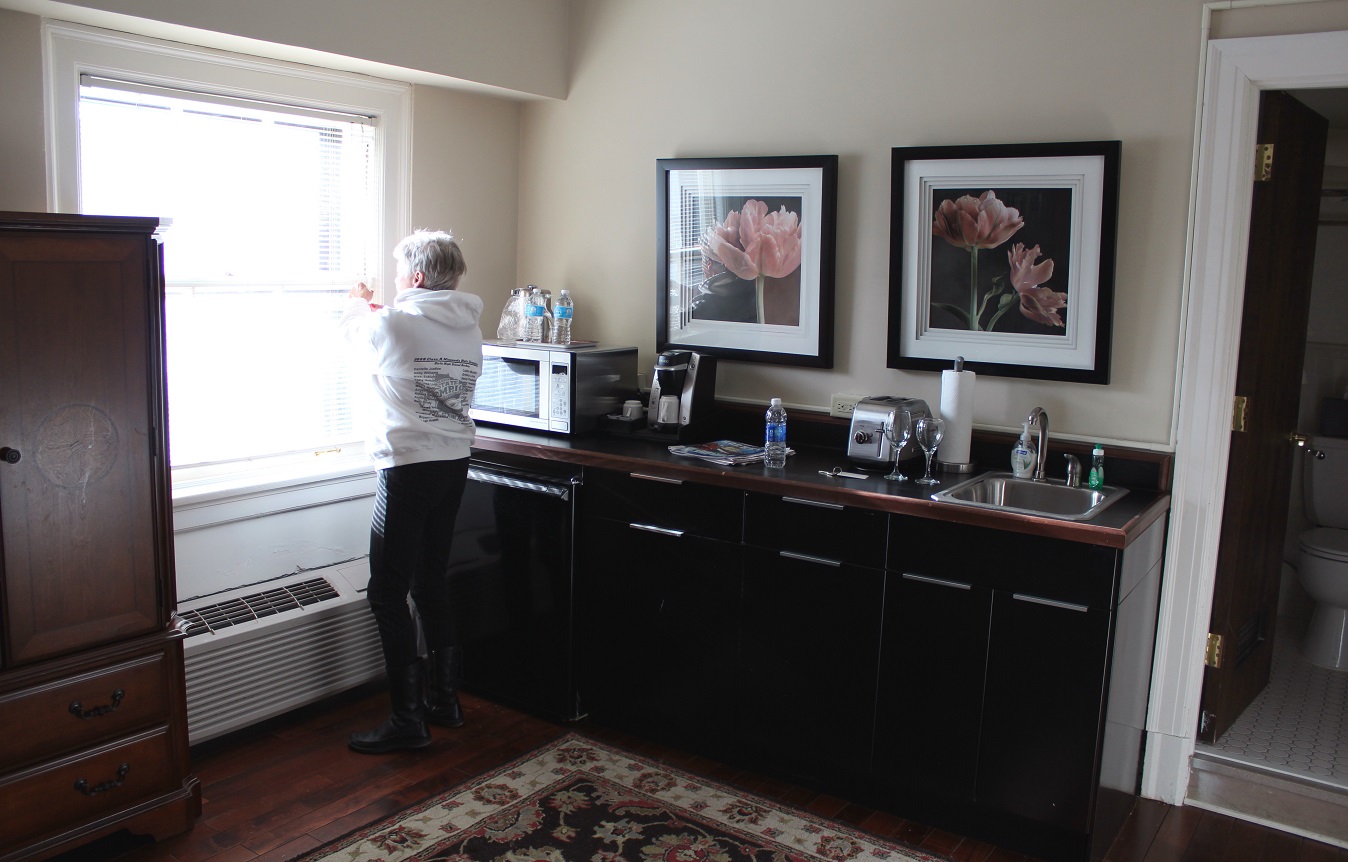 [Just like last year, the Super got us a room (well, a suite) in Hotel 340, the top three floors of the classic St. Paul Athletic Club, at 340 Cedar.]