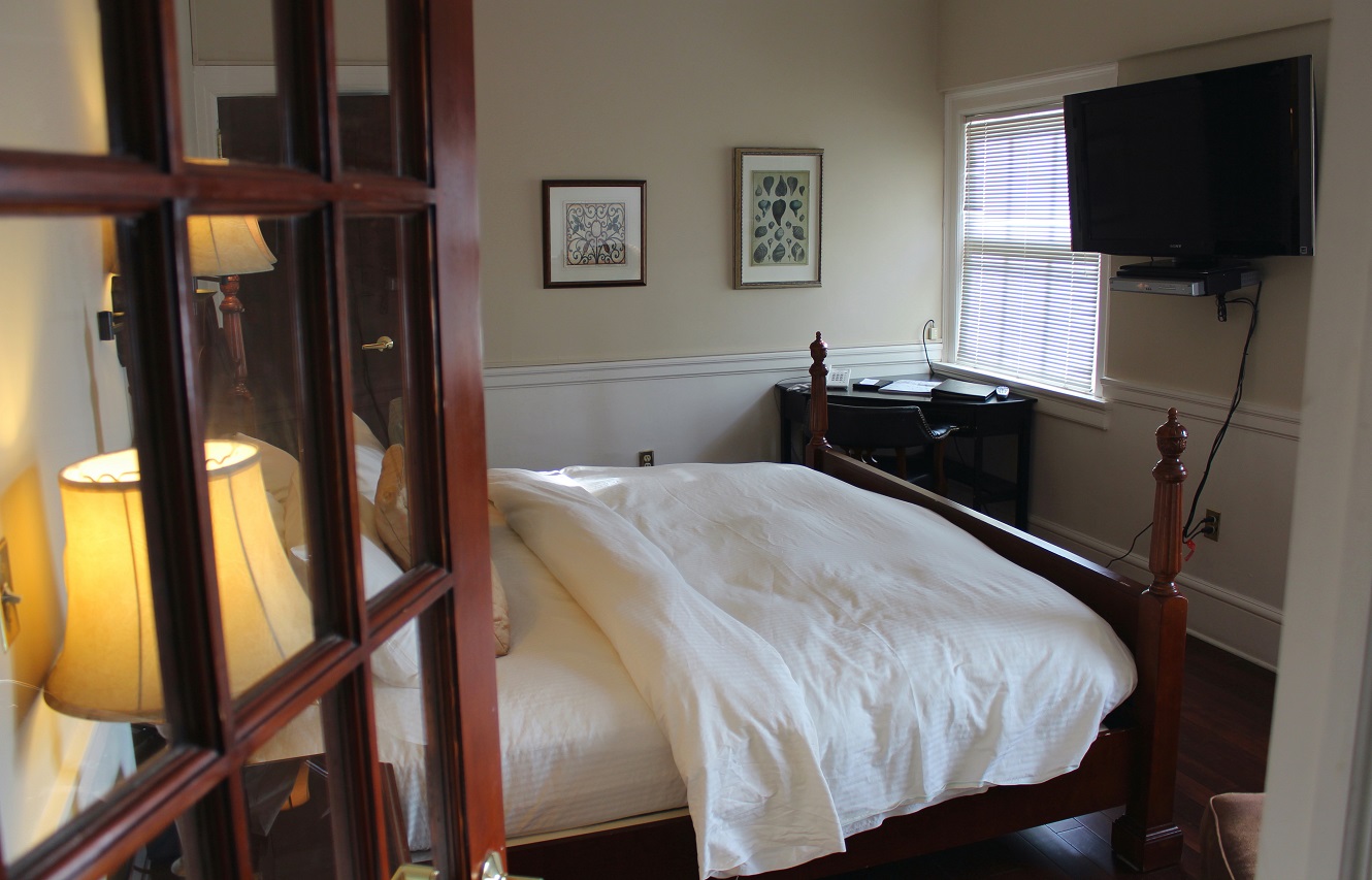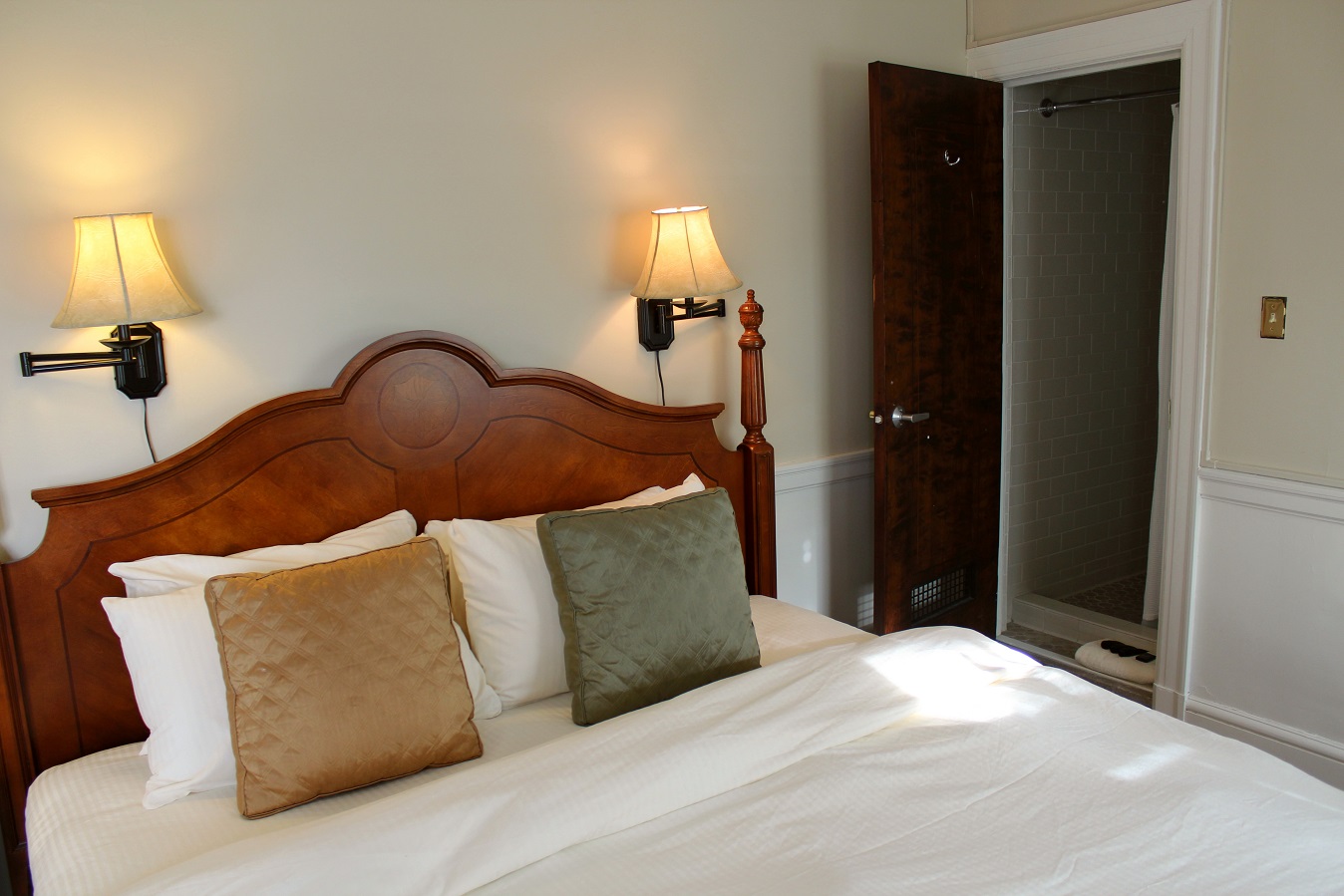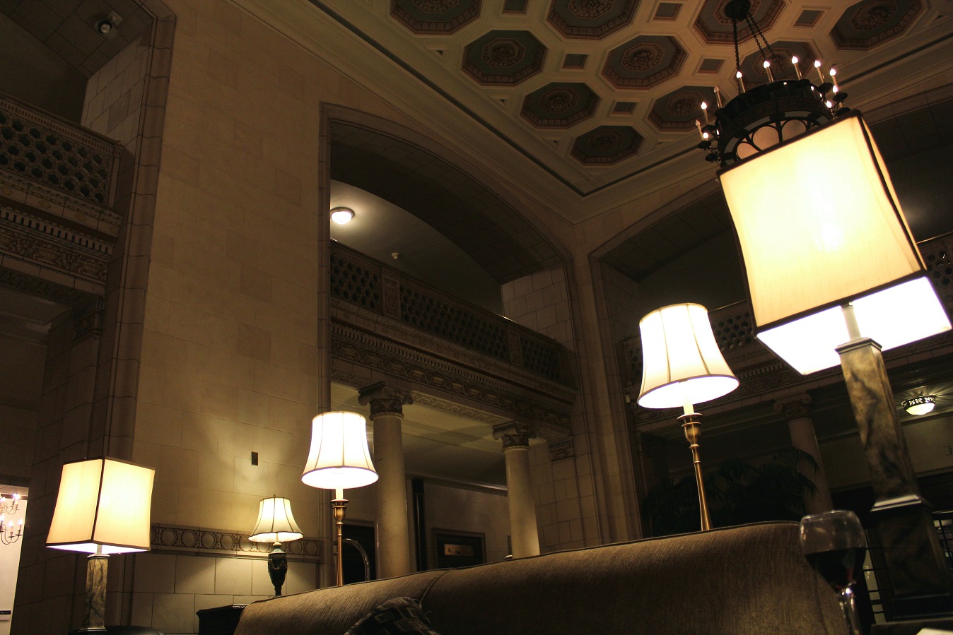 [We took a glass of wine down to the lobby to drown our sorrows. It’s the kind of place where you expect to see gray-haired gentlemen in tuxedos sitting around in leather chairs with brandy snifters and fine Cuban cigars. Last year, we unexpectedly ran into Tami and Kim Bredeson from Carlos Creek Winery here; this year we unexpectedly ran into Sara Schwabe of Theatre L’Homme Dieu fame here. Amazing.]