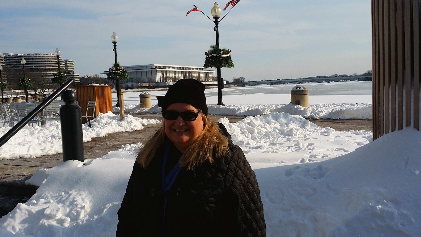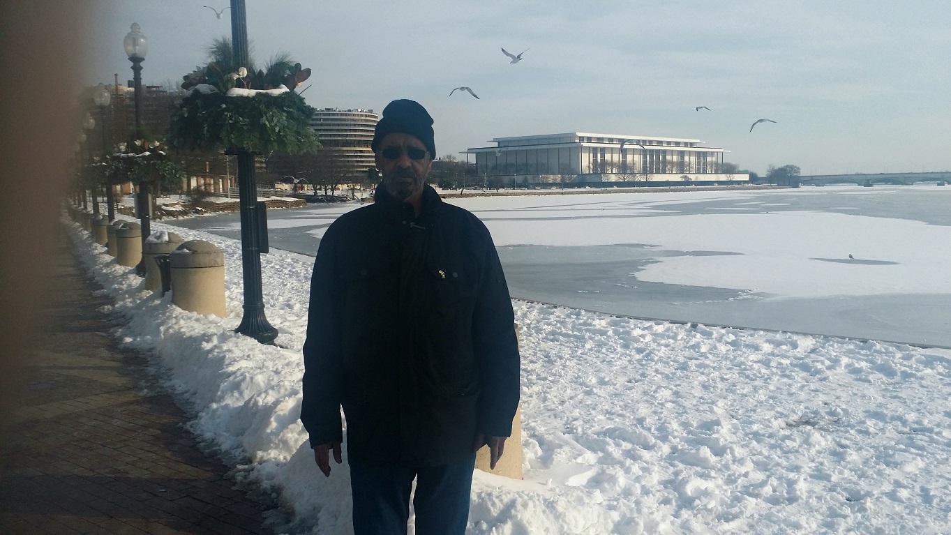 [Yes, D.C. has more snow than we do . . . so they were able to scout possible local hockey talent for our Cards (?) You may recognize the Watergate Hotel (left) and the Kennedy Center on the Potomac River behind Mohamed.]