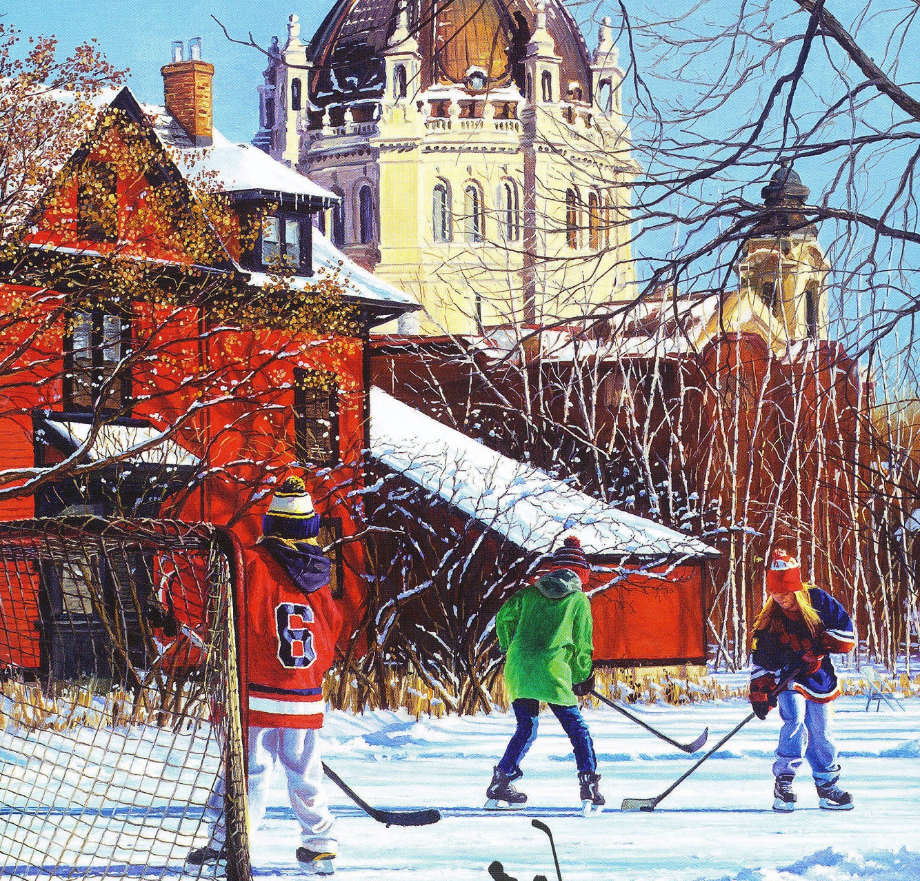 [The Super and I couldn’t find any locals who were willing to brave the elements to join us for dinner. Wimps! So we skywayed our way to Pazzaluna for a Rustica pizza. Outstanding – that EATING thing again. In the morning, we would be off to Ridder Arena on the U of M campus for the first game in the consolation bracket.]