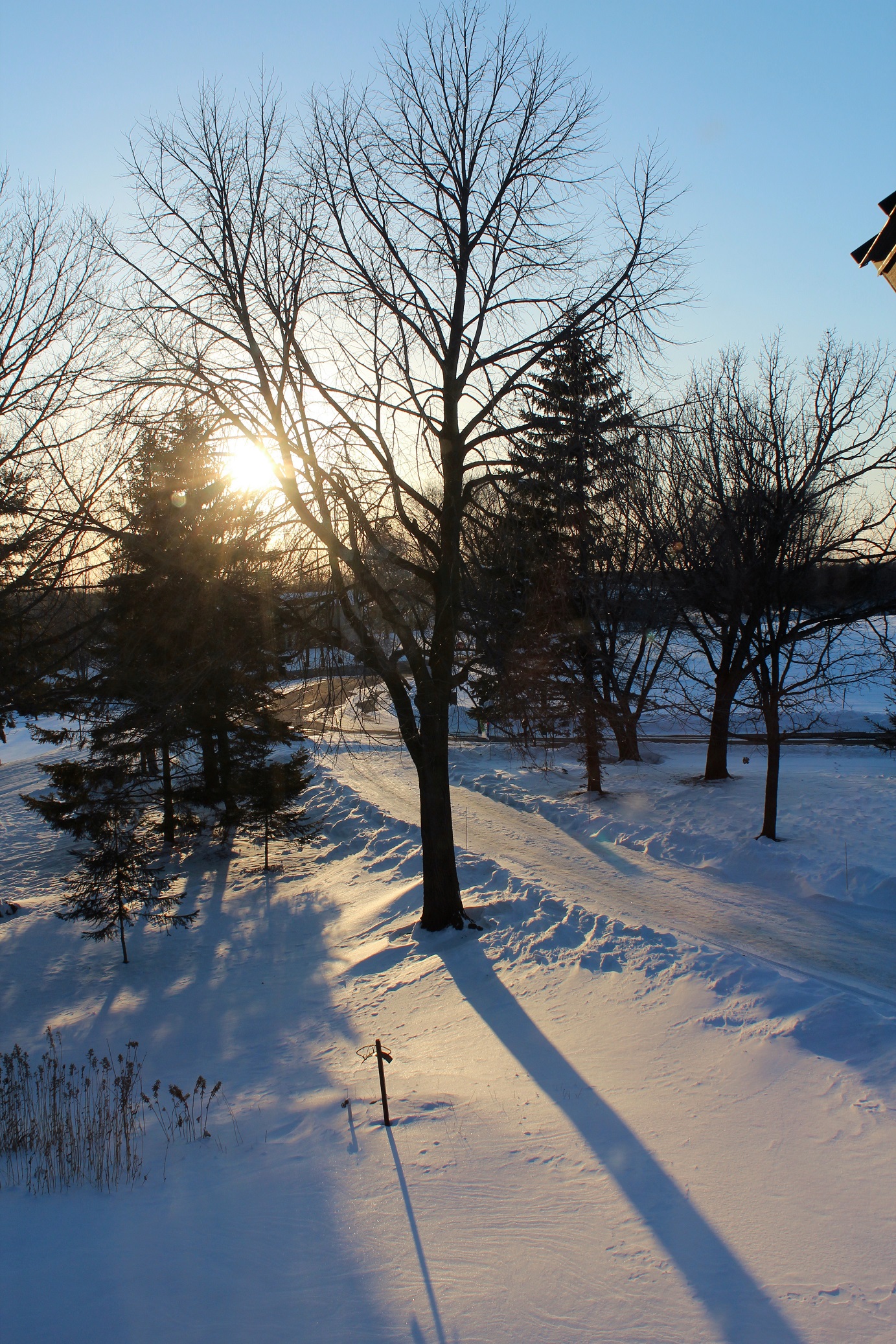 [March 1, the first day of meteorological spring, another beautiful day dawned over beautiful Lake Darling. While the morning news was once again filled with weather horror stories from all over the country, we continue to have a particularly uneventful winter. February was colder than normal, but we are still way below normal snowfall. For the most part, it’s just been beautifully sunny and cold. The Polar Plunge was at Arrowwood on beautiful Lake Darling that day. (Already reported upon herein.)]