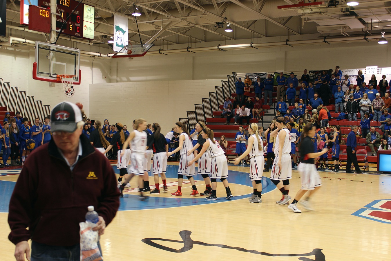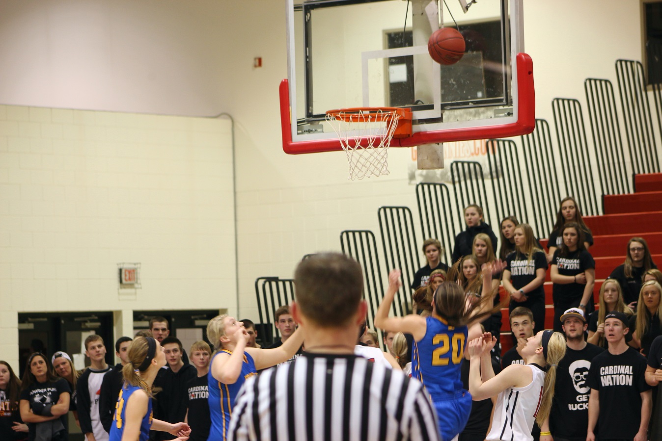 * OK, everybody says that . . . but more about that later. On Thursday, March 12, our 2nd-seeded Cards lost to the 1st-seeded Thief River Falls Prowlers in the section 8AAA championship at St. John’s University, 43 – 42, in a game that was that close all the way. It will be the Prowlers first ever trip to the state tournament, so congratulations to them.