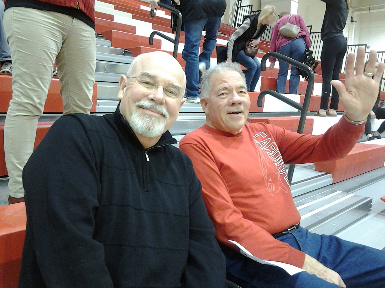 [Inadvertently captured a member of the school board arriving here. He was then off on a mission to recruit three 6’7″ players for next year.]
