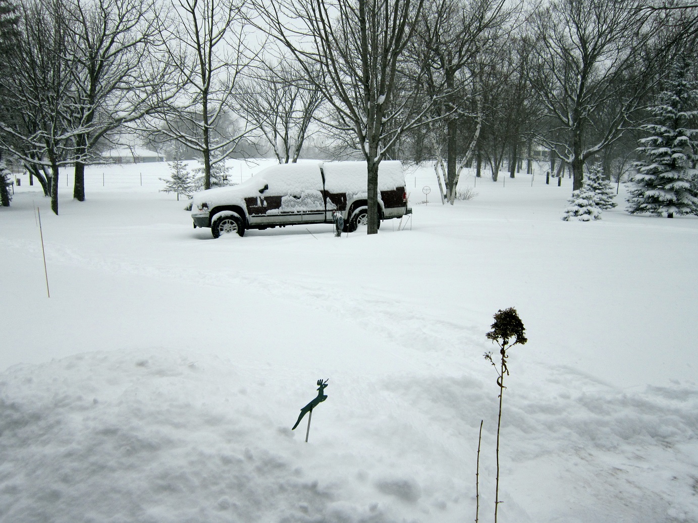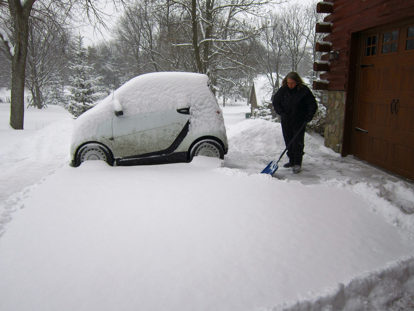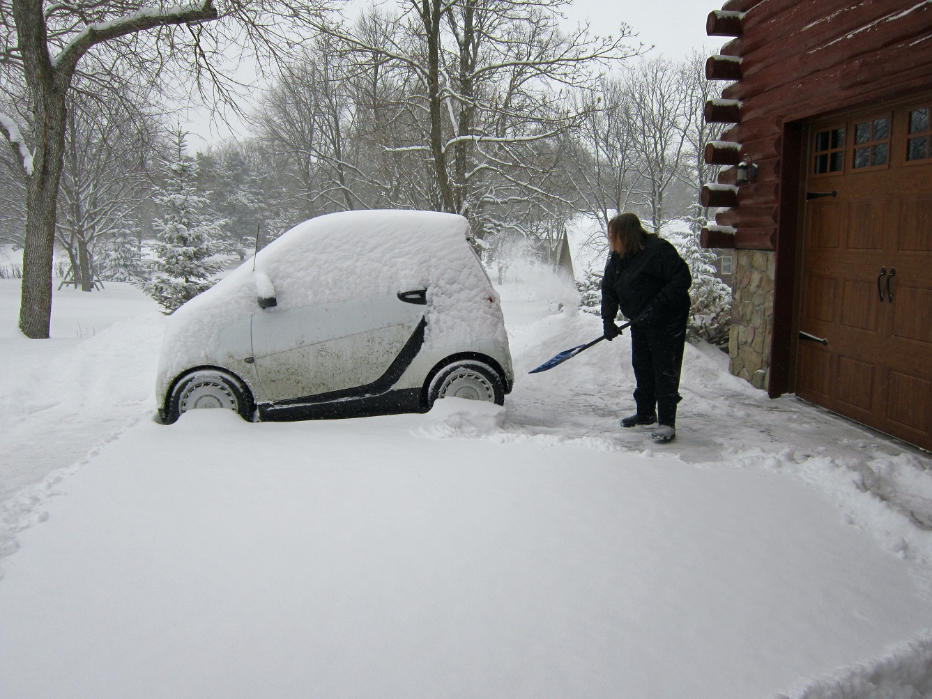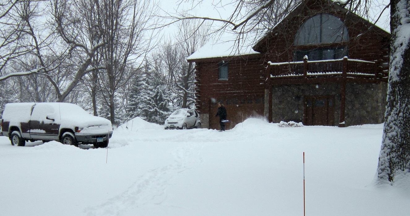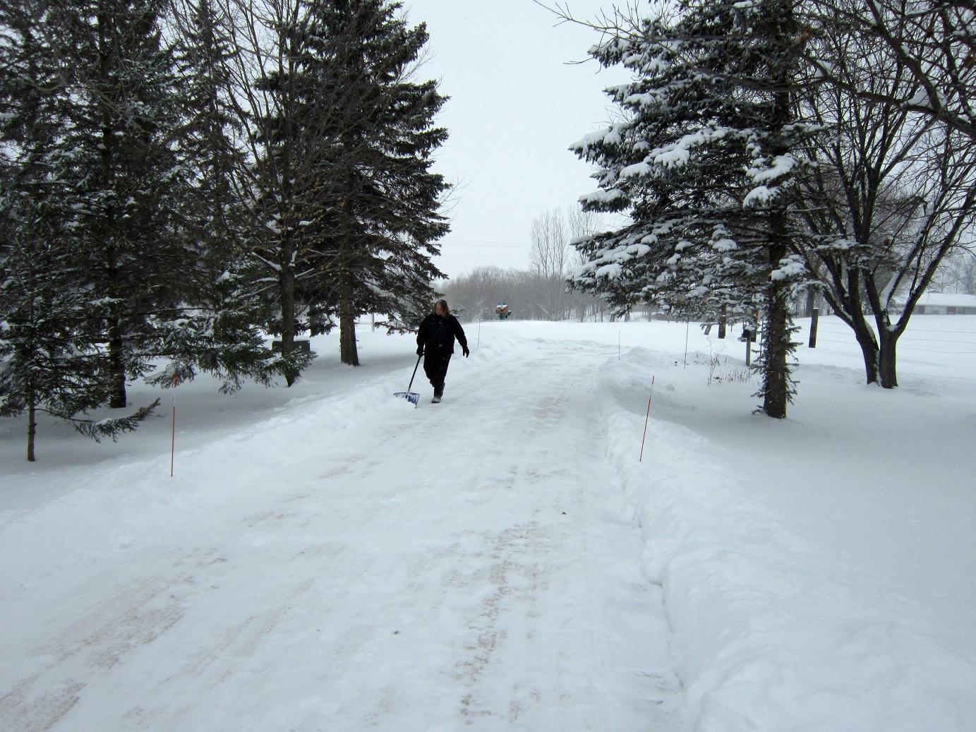 [On March 3, Jami and I went out to enjoy our last (?) winter snowfall, shovels in hand.]