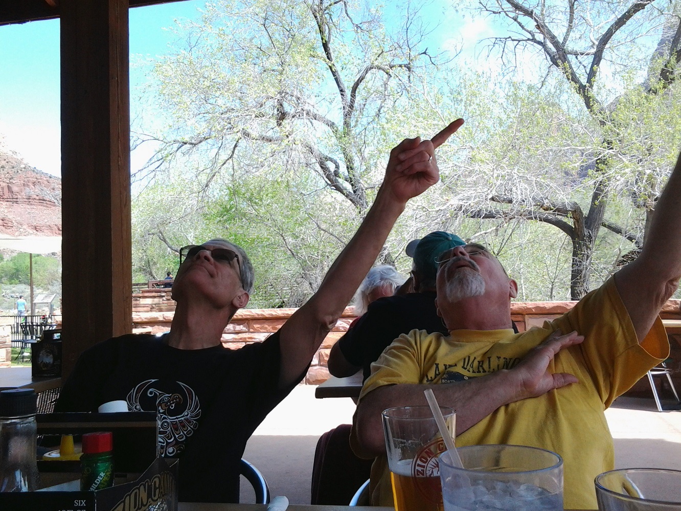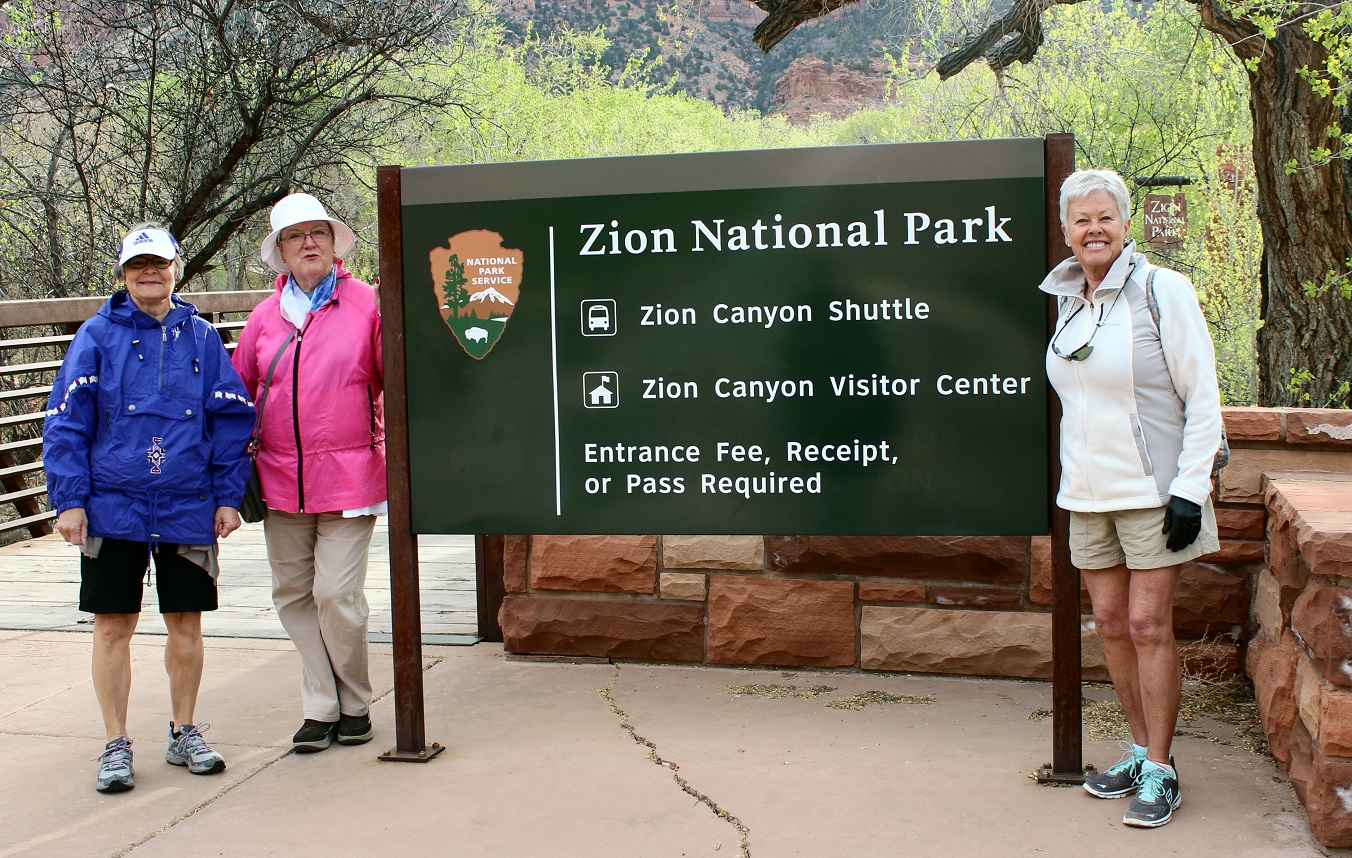 [And we picked up two more Alexandrians when we got there. Before we all left, we discovered Kathleen and Bruce Pohlig would be at Zion, staying at a local lodge, this very day, so we made arrangements to meet up with them for park exploration. 🙂 ]