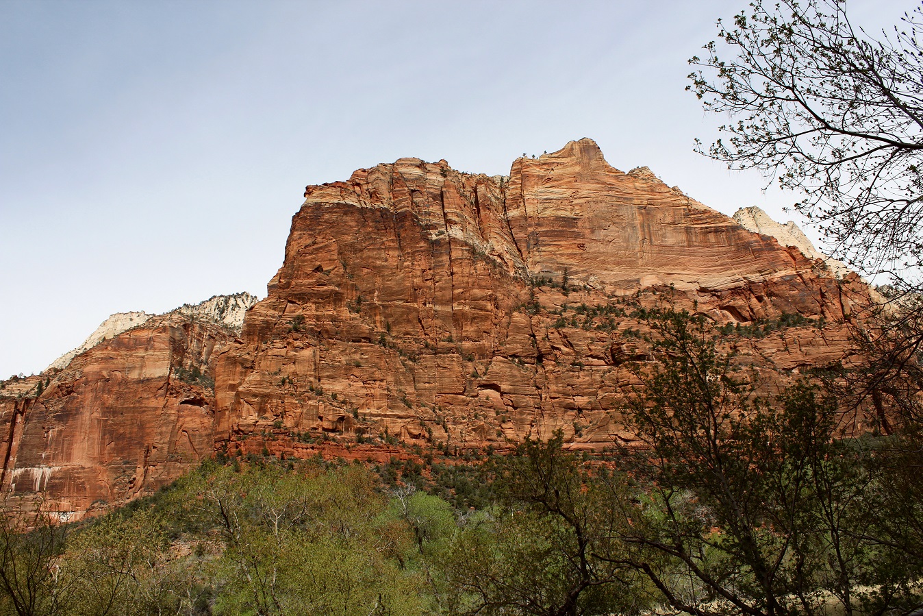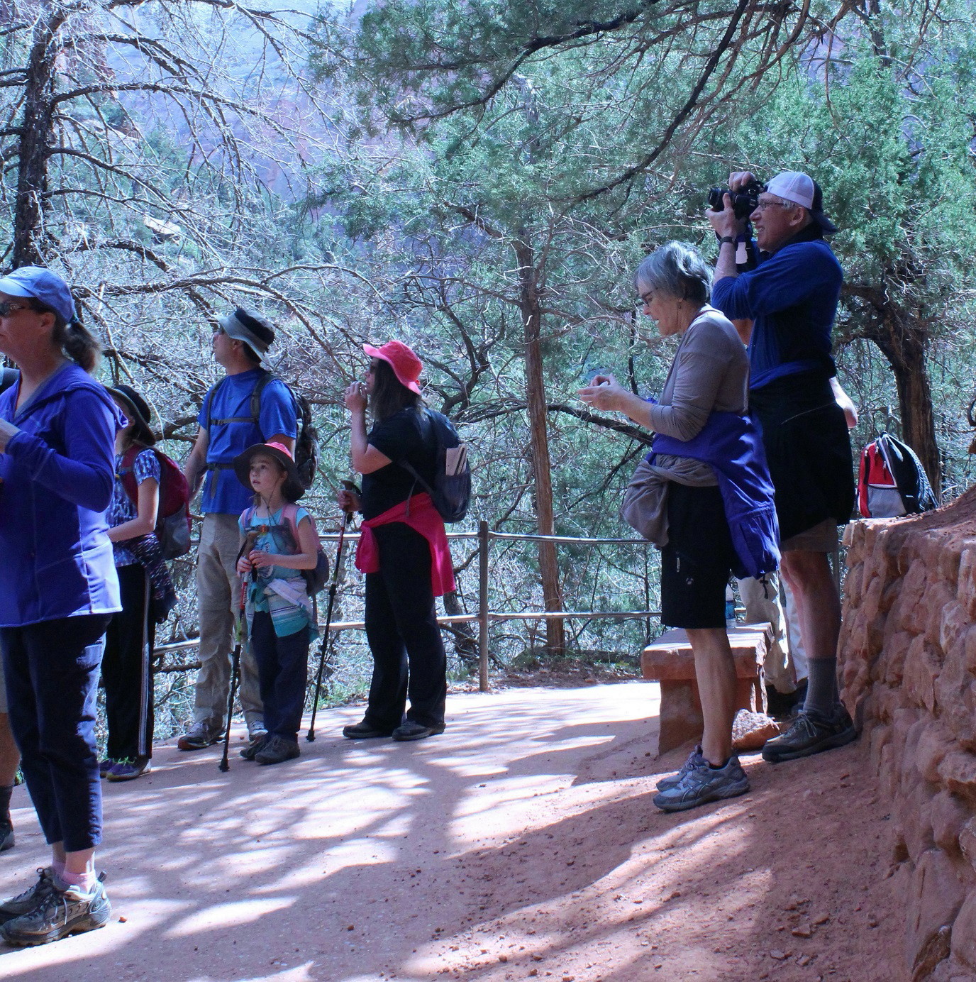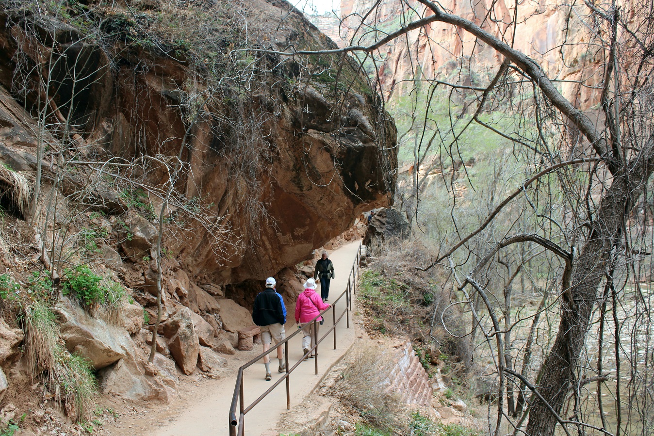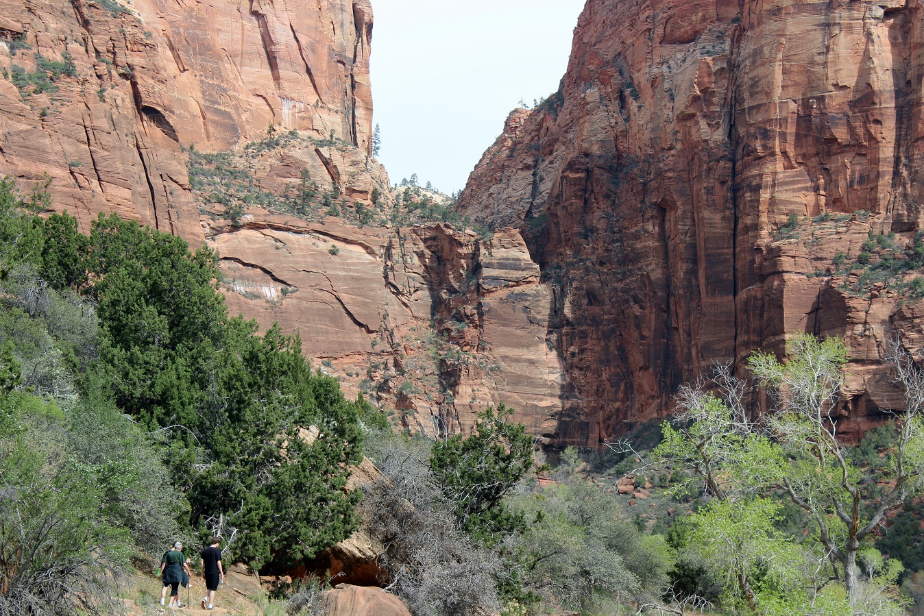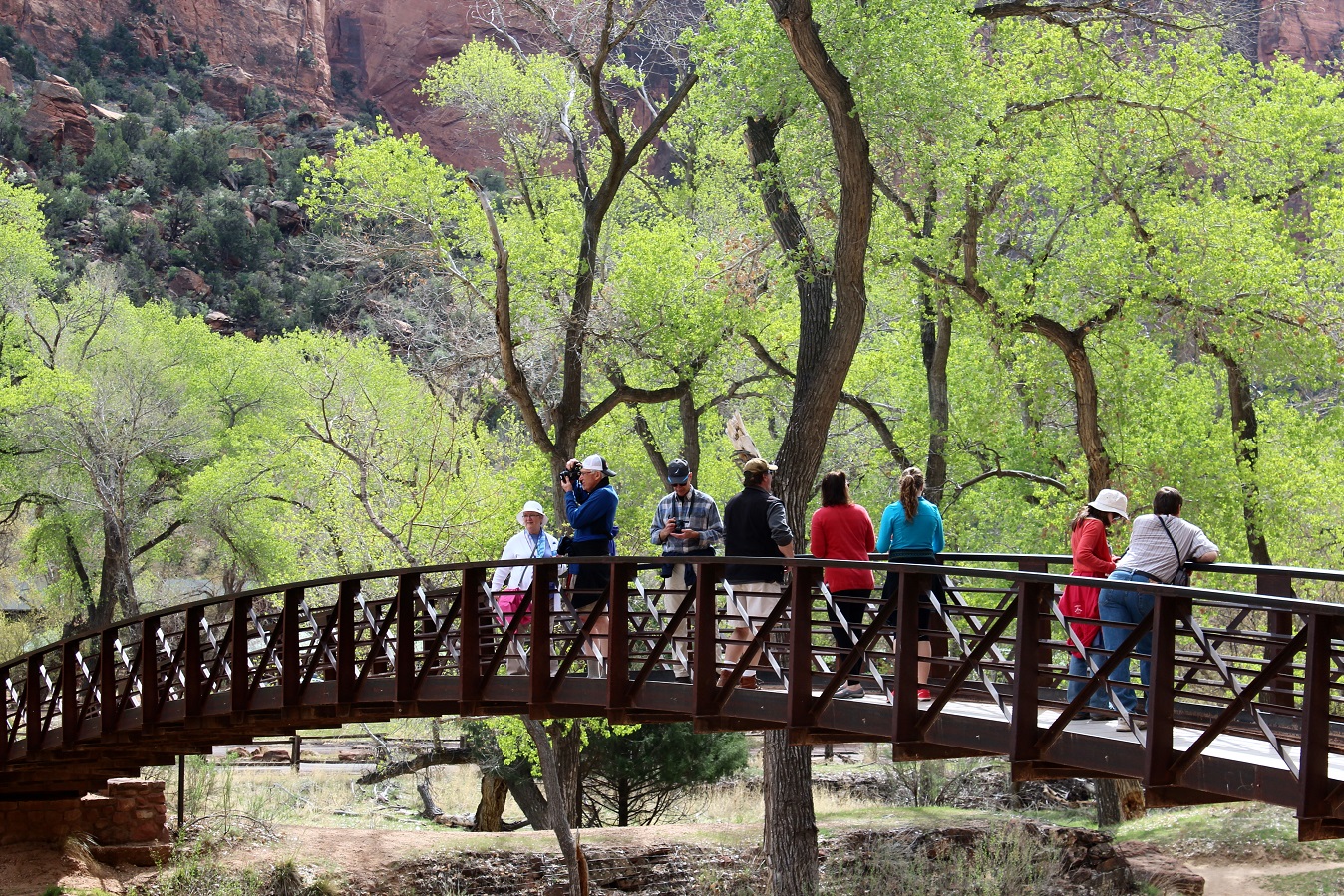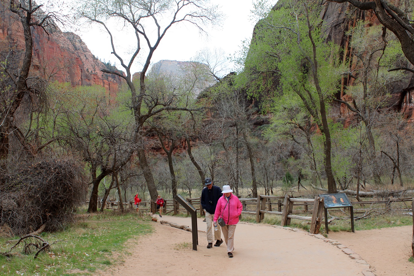 [Back in current time, the group is on the move from the Grotto (eyeballing Angels Landing) to Zion Lodge.]