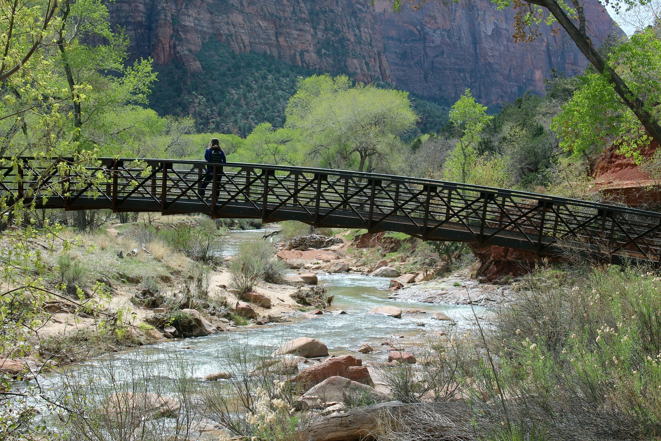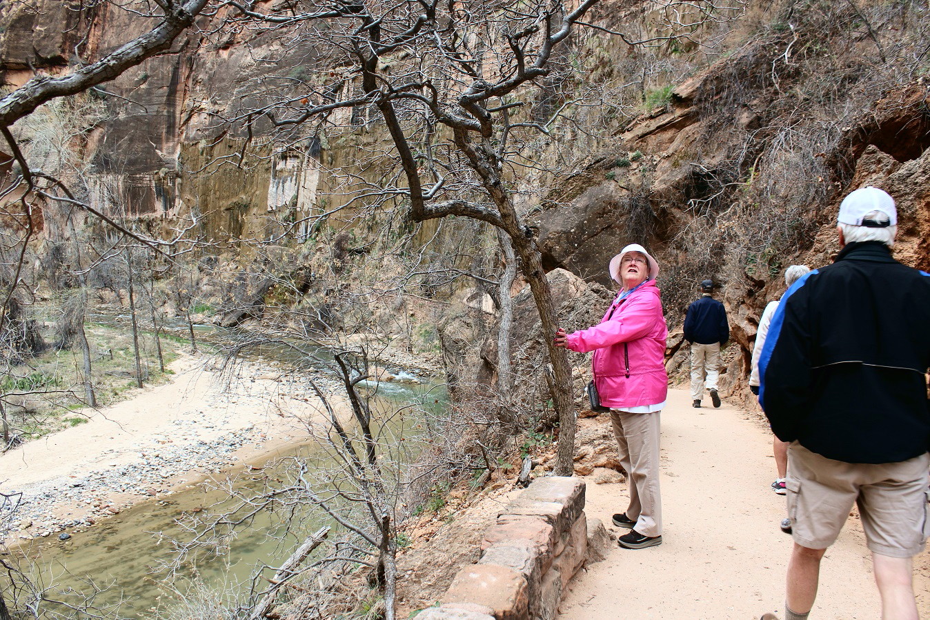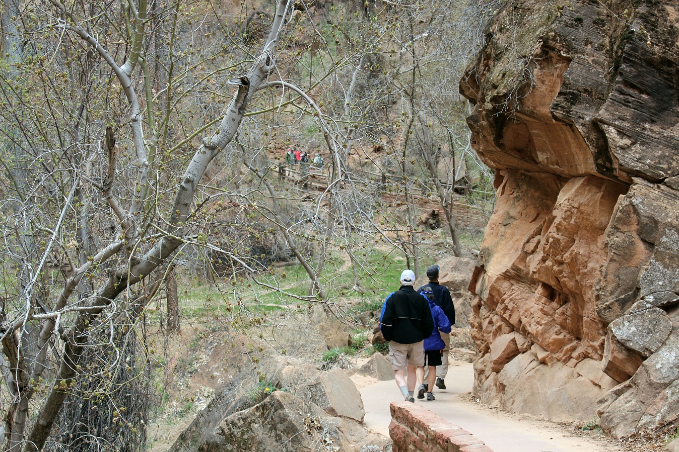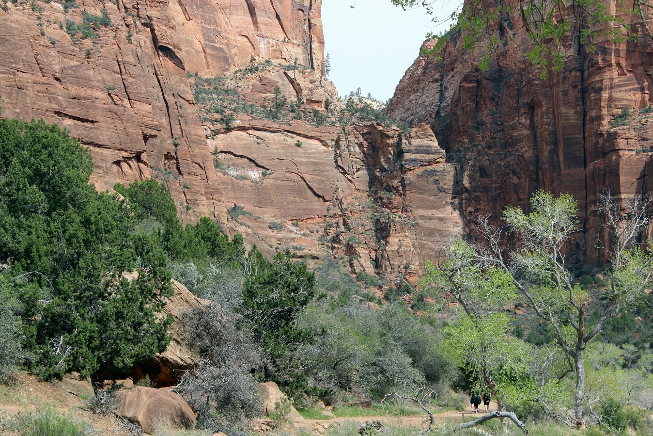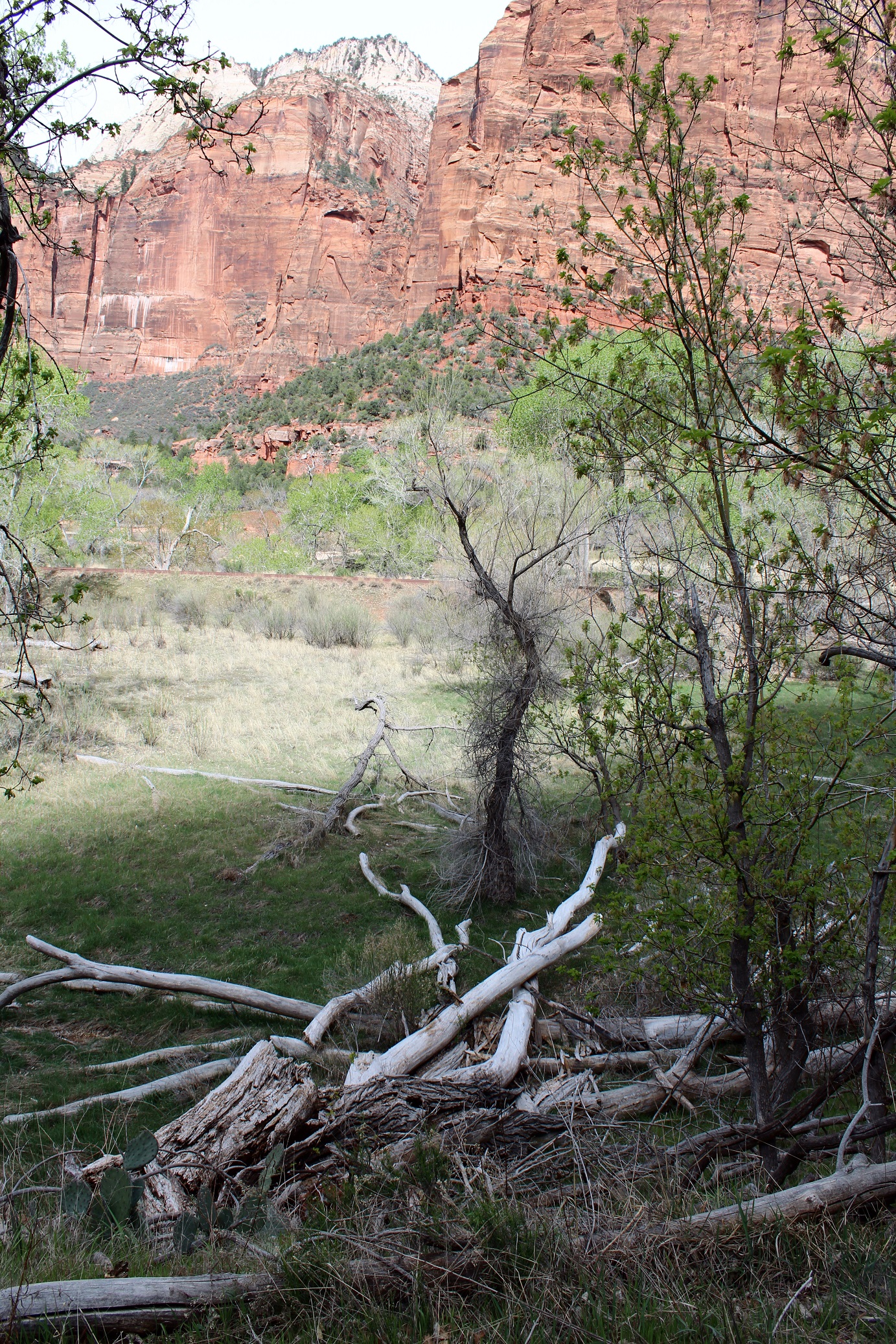 [Back in current time, the group is on the move from the Grotto (eyeballing Angels Landing) to Zion Lodge.]