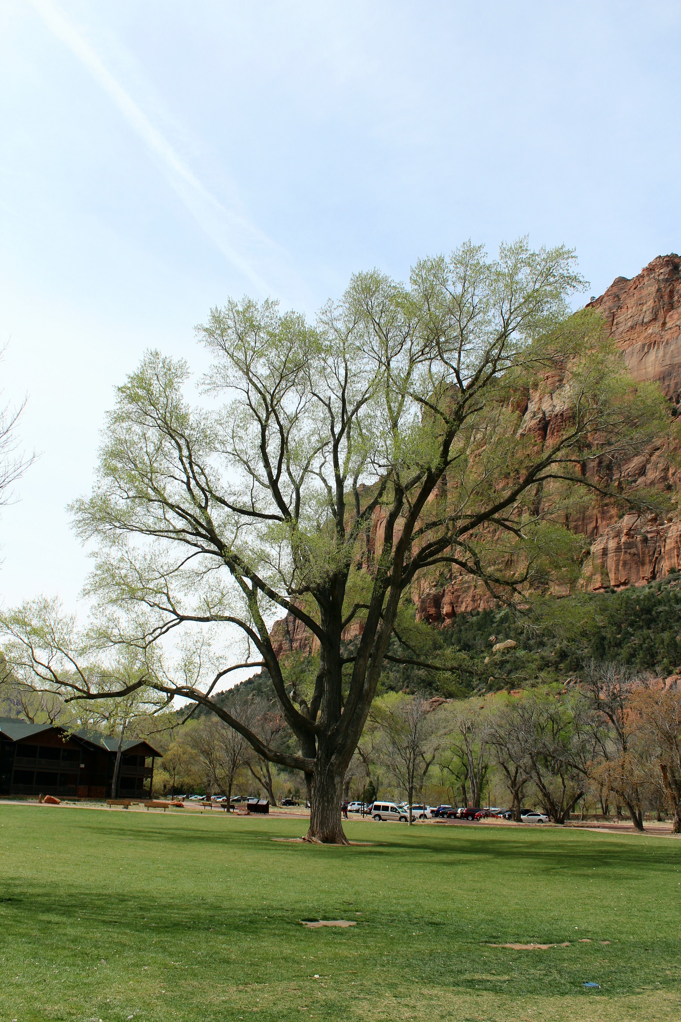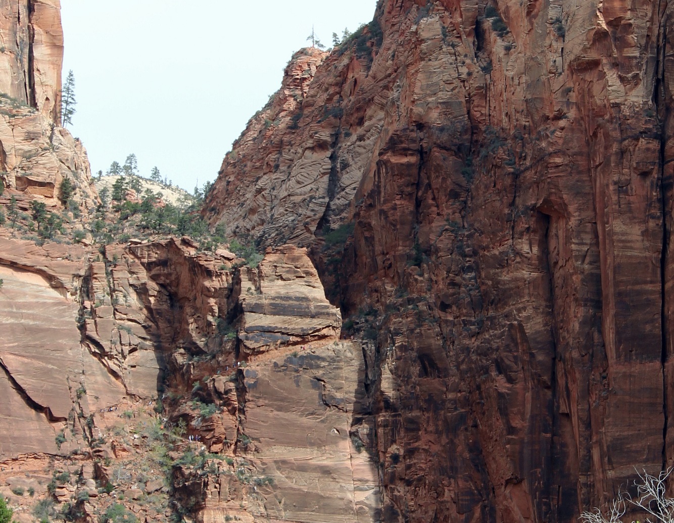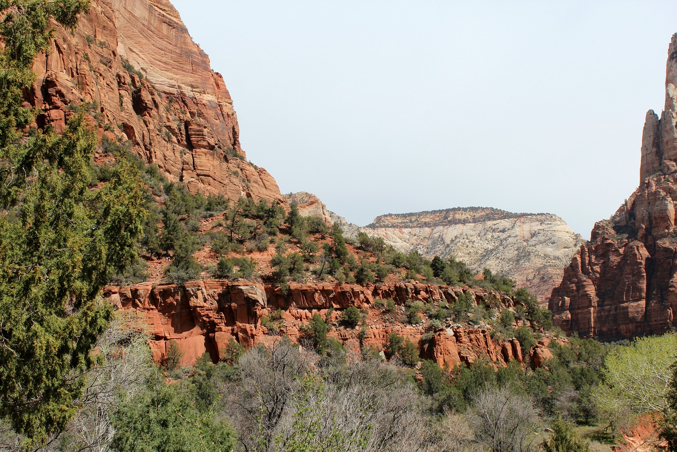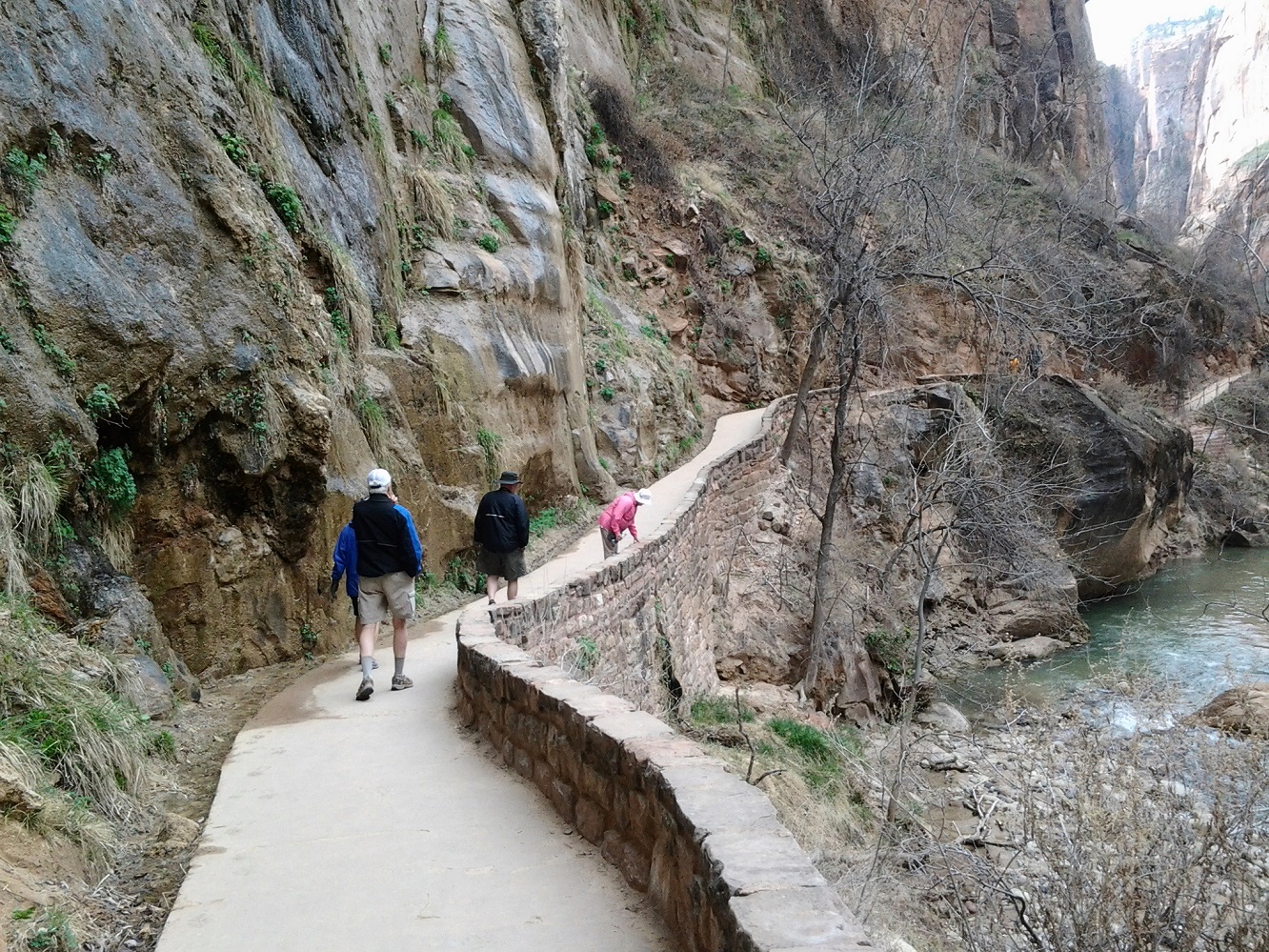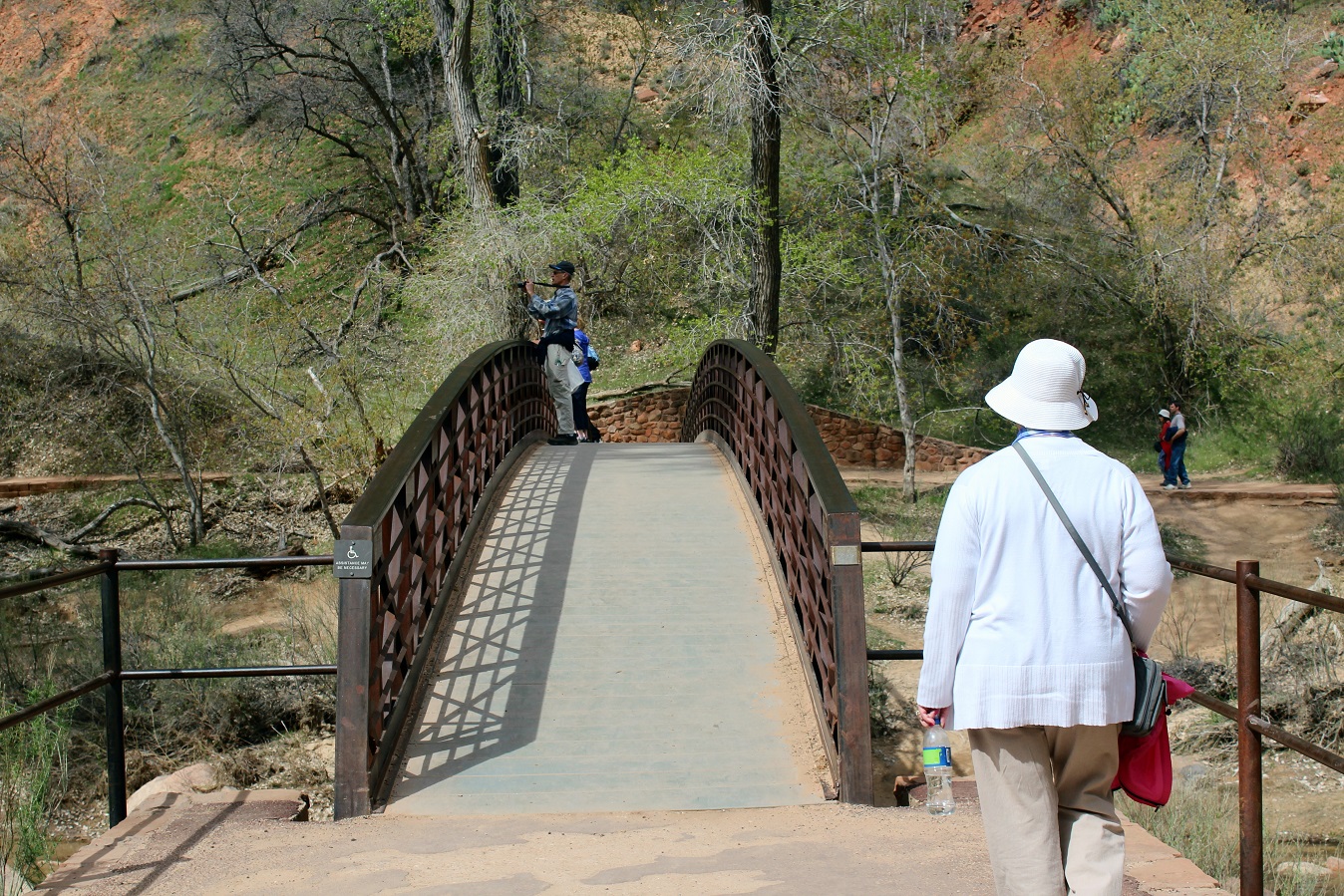 [Back in current time, the group is on the move from the Grotto (eyeballing Angels Landing) to Zion Lodge.]
