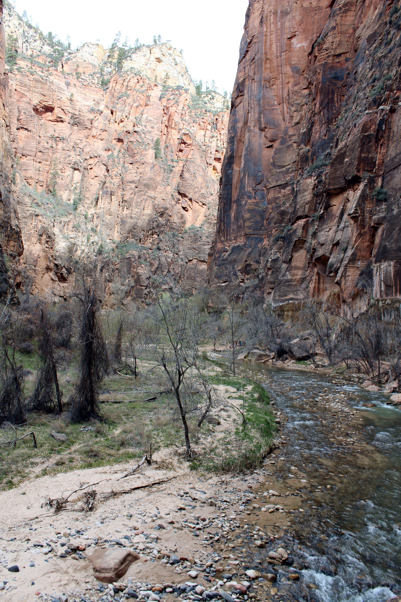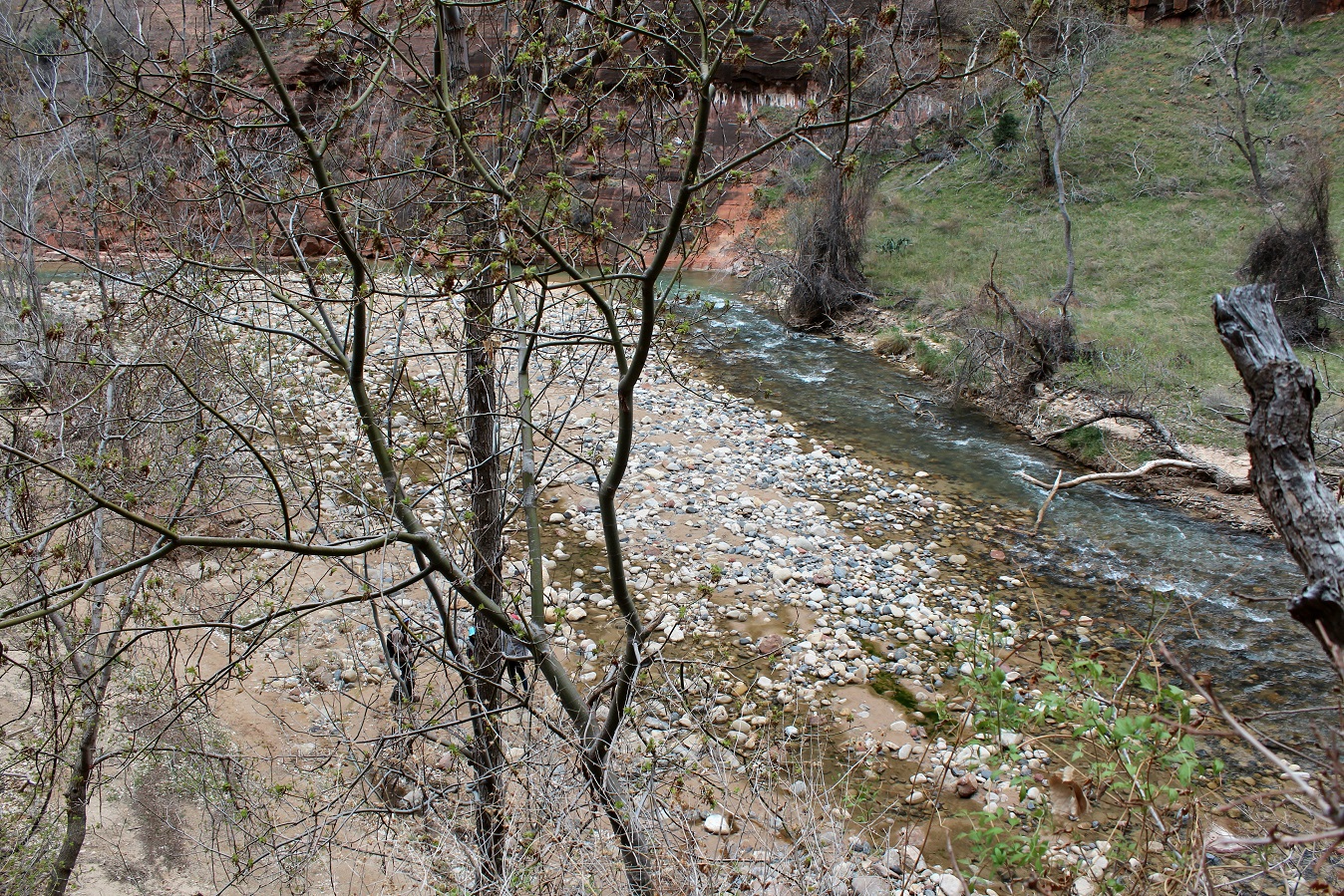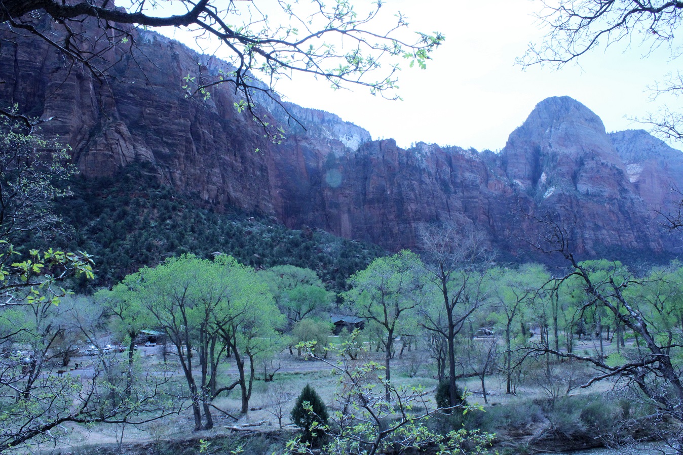 [This is where we were. The end of the line, The Temple of Sinawava, where we will hike along the Virgin River Trail.]