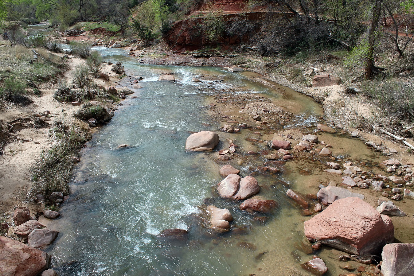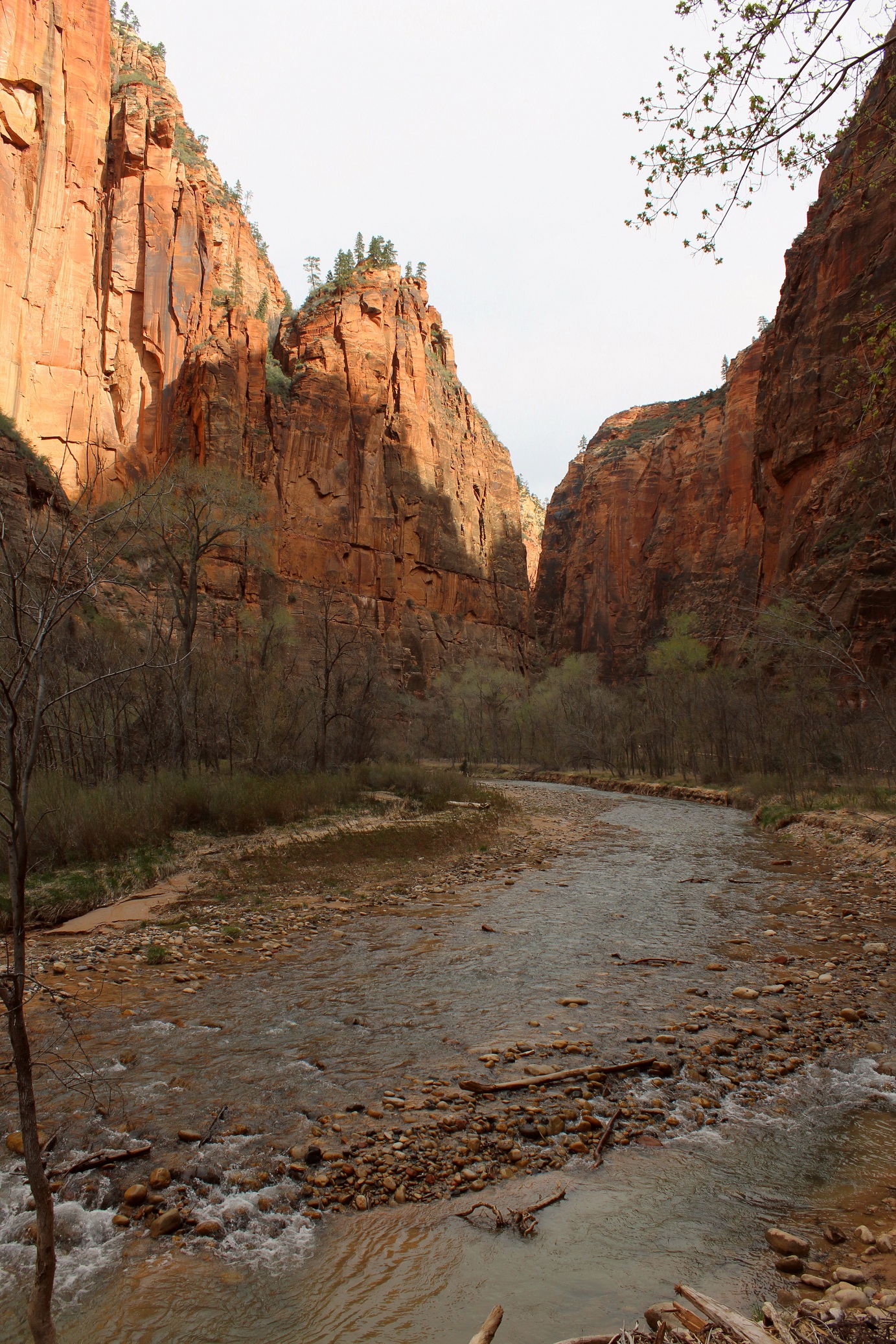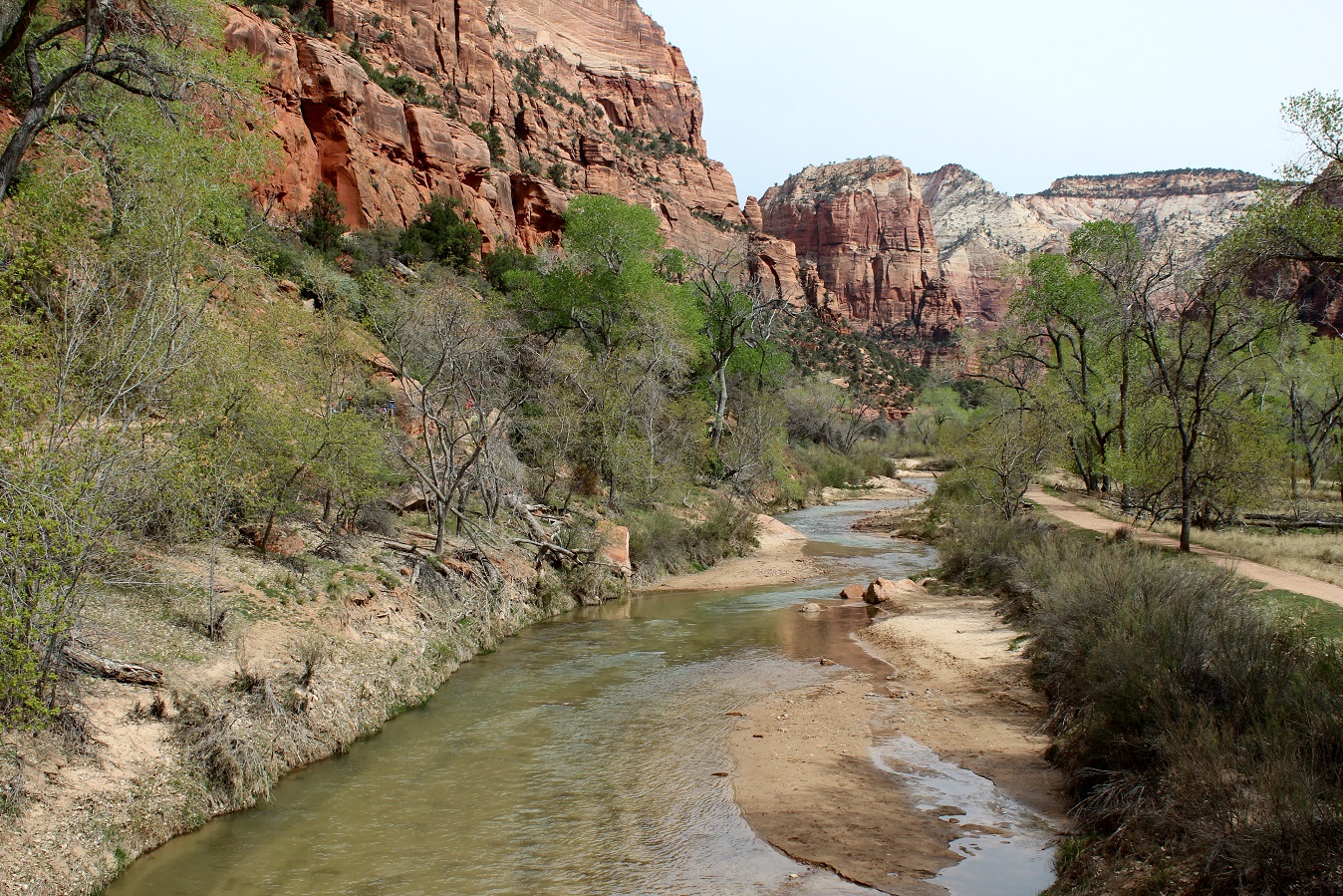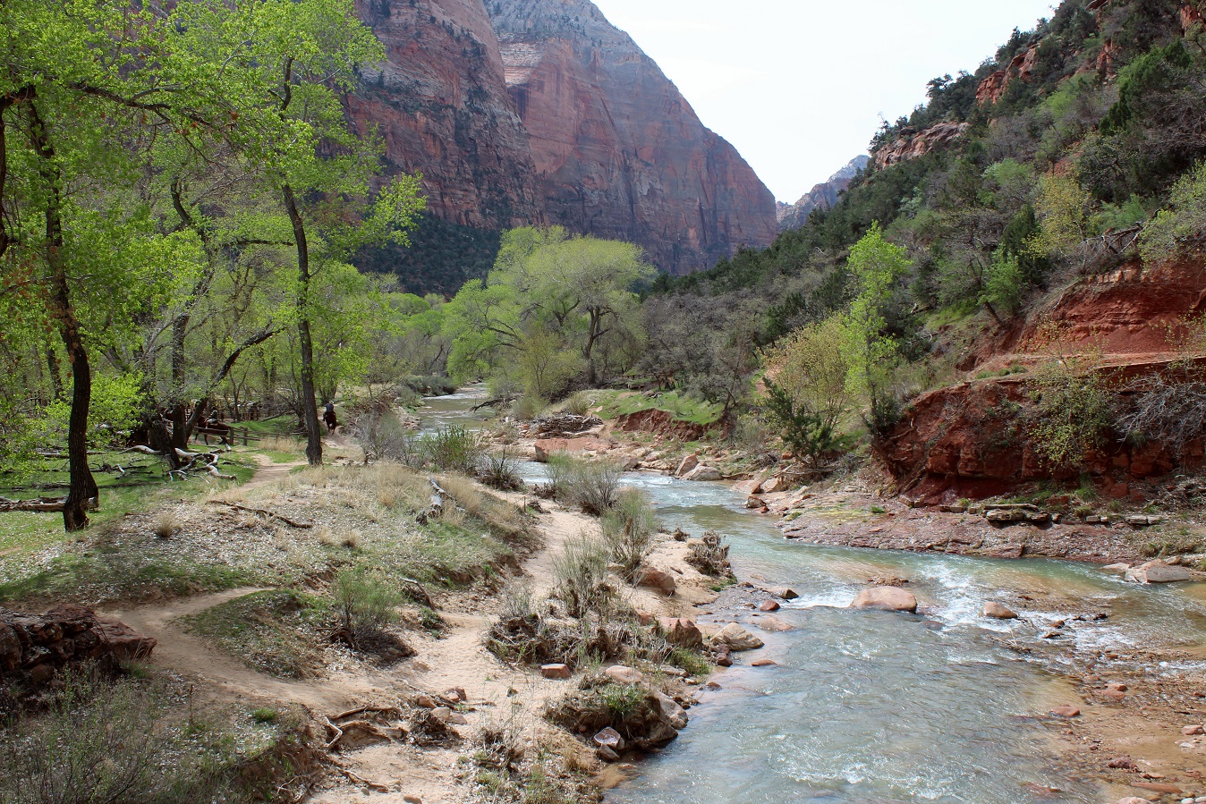 [This is where we were. The end of the line, The Temple of Sinawava, where we will hike along the Virgin River Trail.]