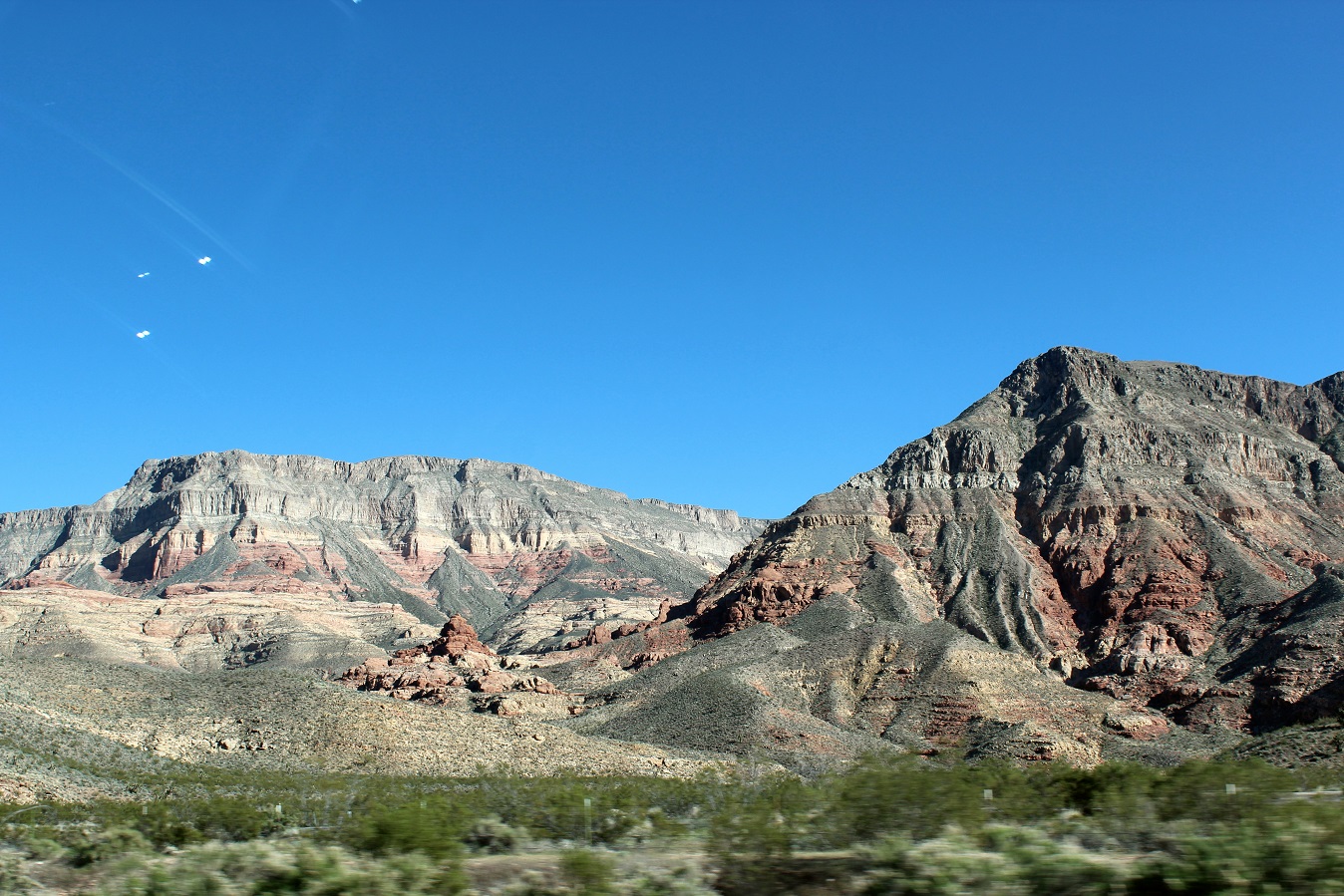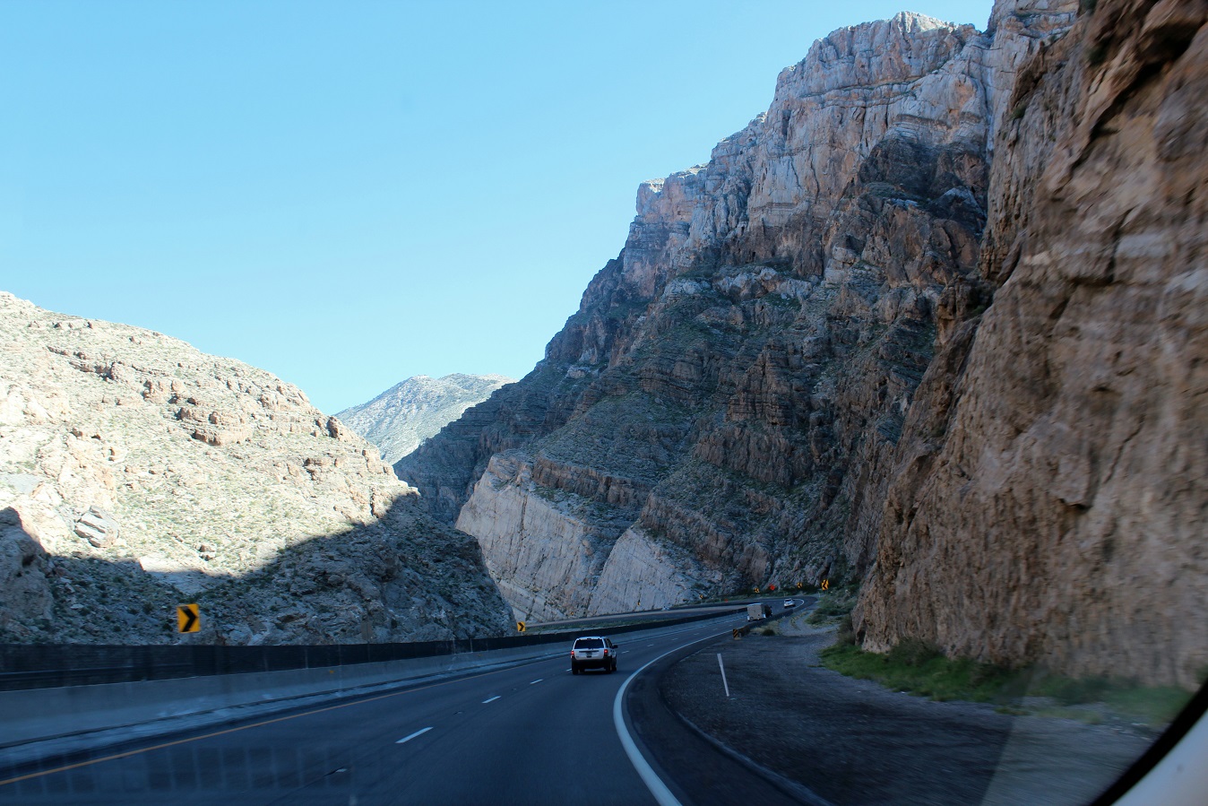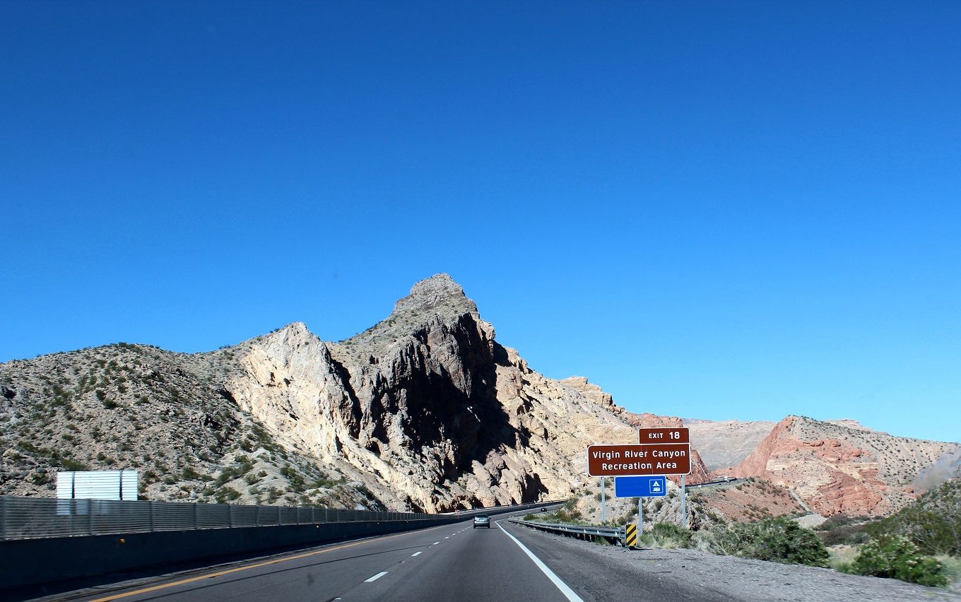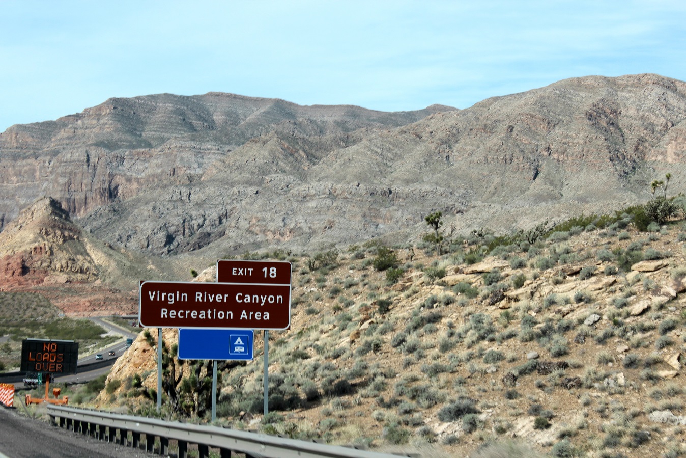 [They did advise that the road to Las Vegas (120 miles from St. George) would be among the most scenic on our trip so far as I-15 follows the Virgin River gorge through the Beaver Dam Mountains.]
