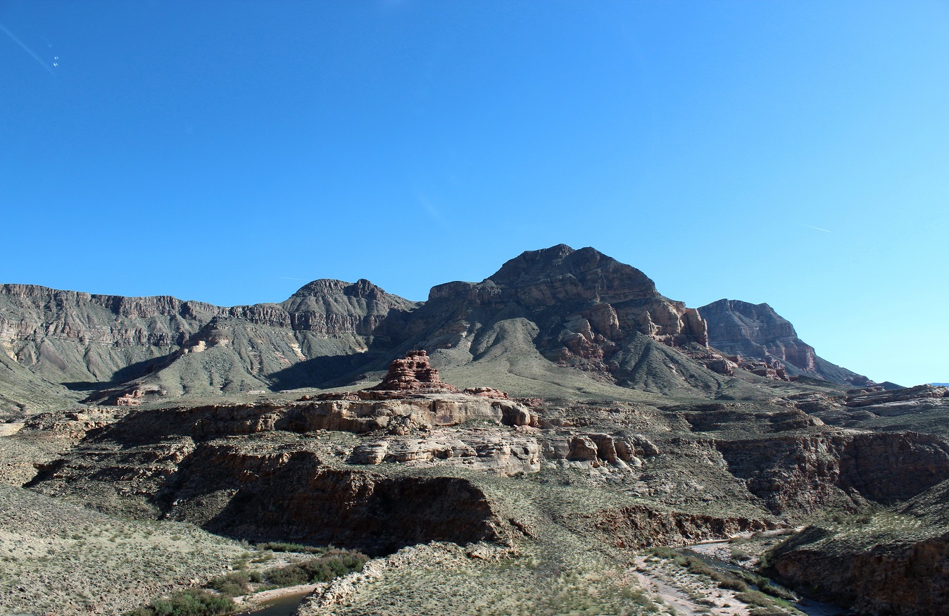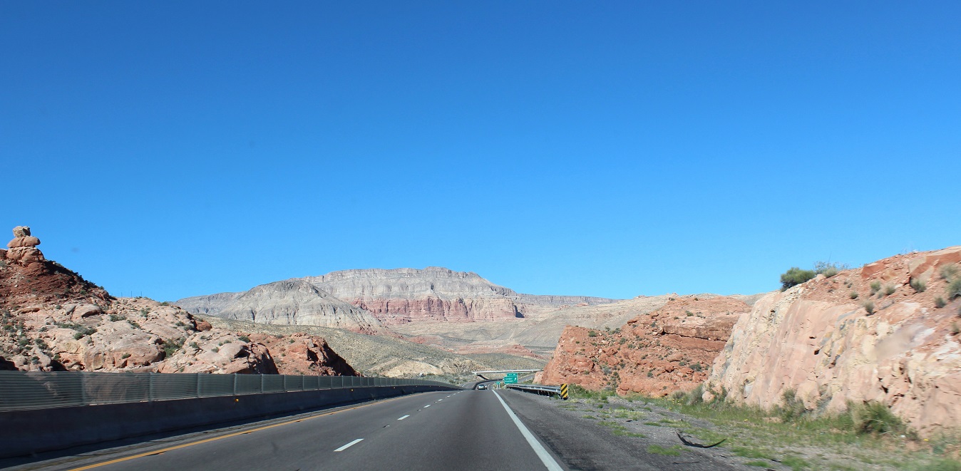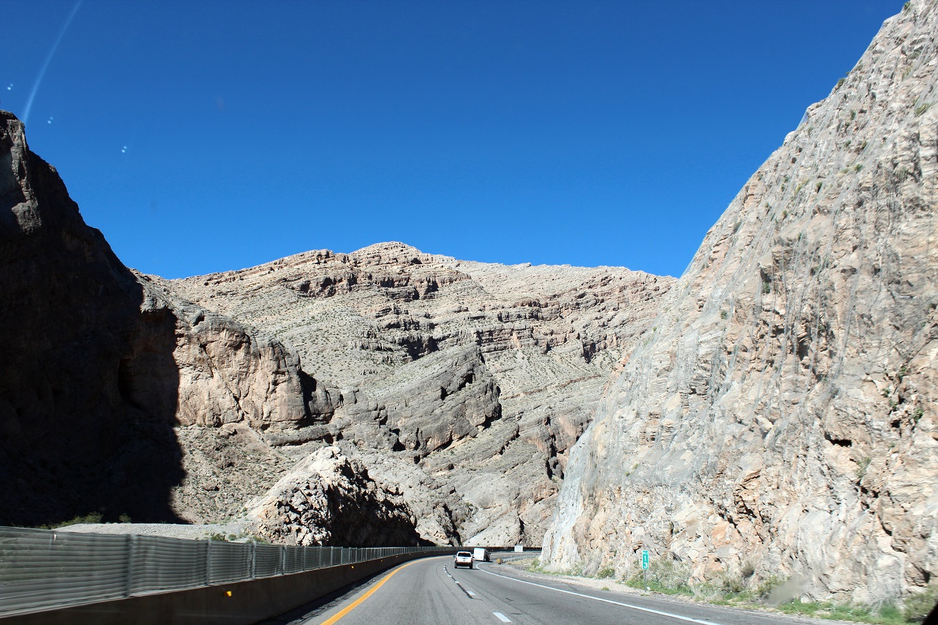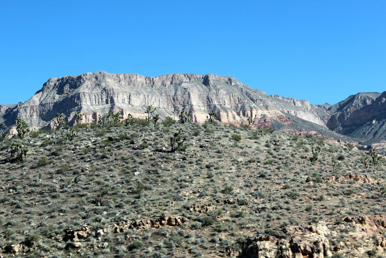 [They did advise that the road to Las Vegas (120 miles from St. George) would be among the most scenic on our trip so far as I-15 follows the Virgin River gorge through the Beaver Dam Mountains.]