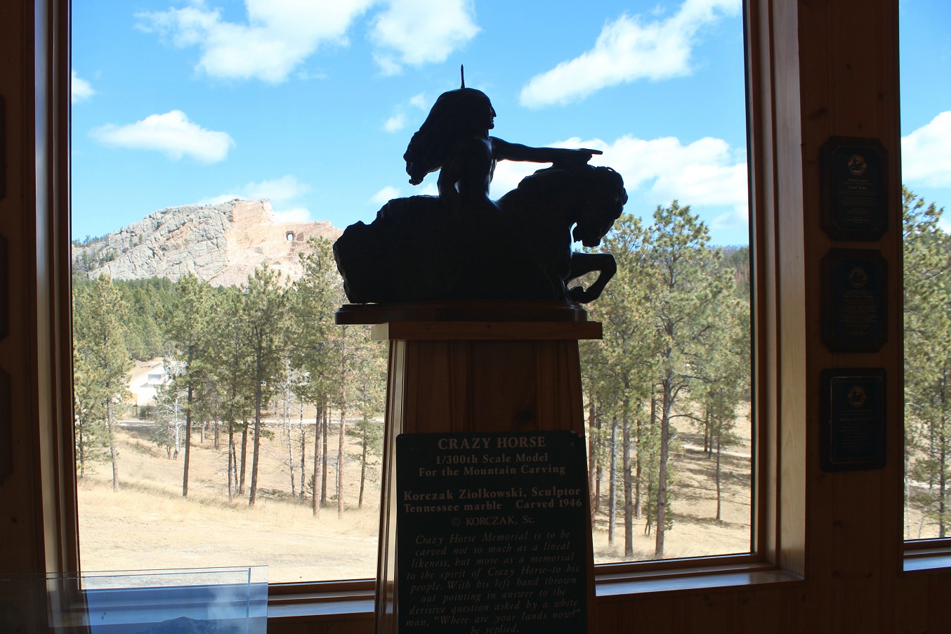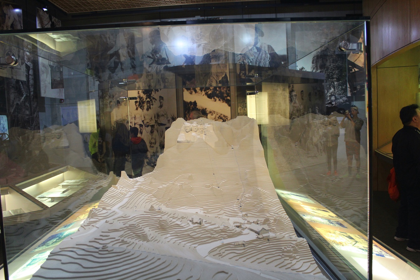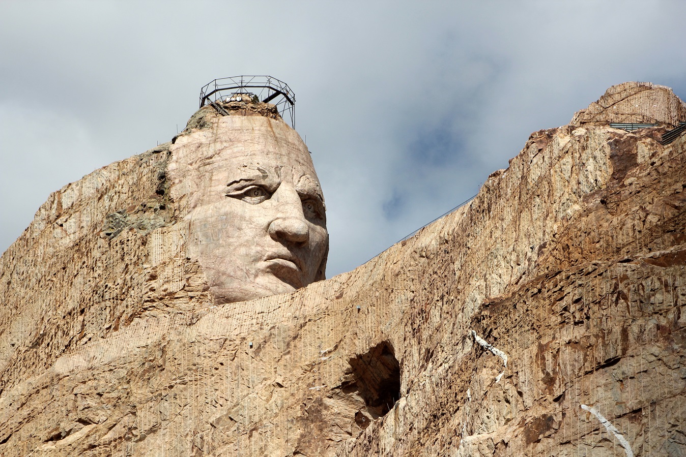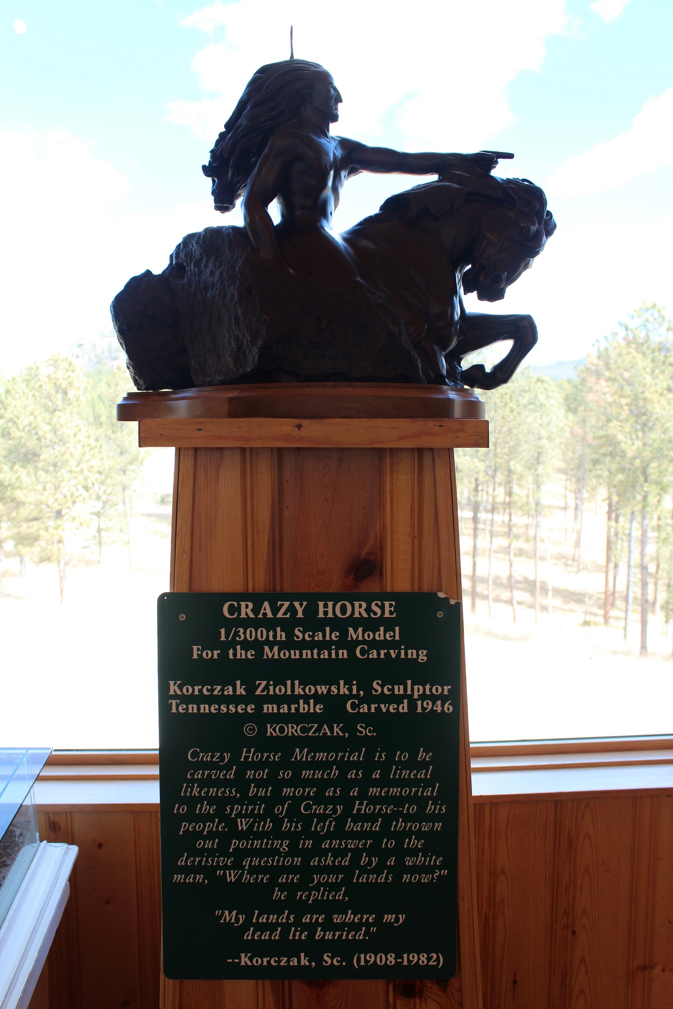 [This was one of the more amazing stories . . . Korczak started the sculpture all by himself in 1948. It was more than 700 stairs up to his work area, carrying about 50 pounds of equipment with him. He ultimately realized he needed a compressor, bought this one used (a Buda, as I recall), and he would crank start it and then begin his climb. But it was not reliable and often conked out – he would have to go back down to re-start it. One day he did that NINE times! I can’t even imagine what kind of shape he was in, and he was not a young man. So, Crazy Horse has been under construction for 67 years, most of that time span by Korczak himself. More workers of late have made much more progress in the last 15 years than Korczak did in the first 50 years. Best estimates are that it is still at least 20 – 30 years from completion. Guess I won’t see it.]