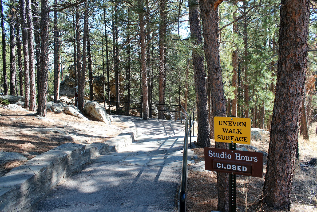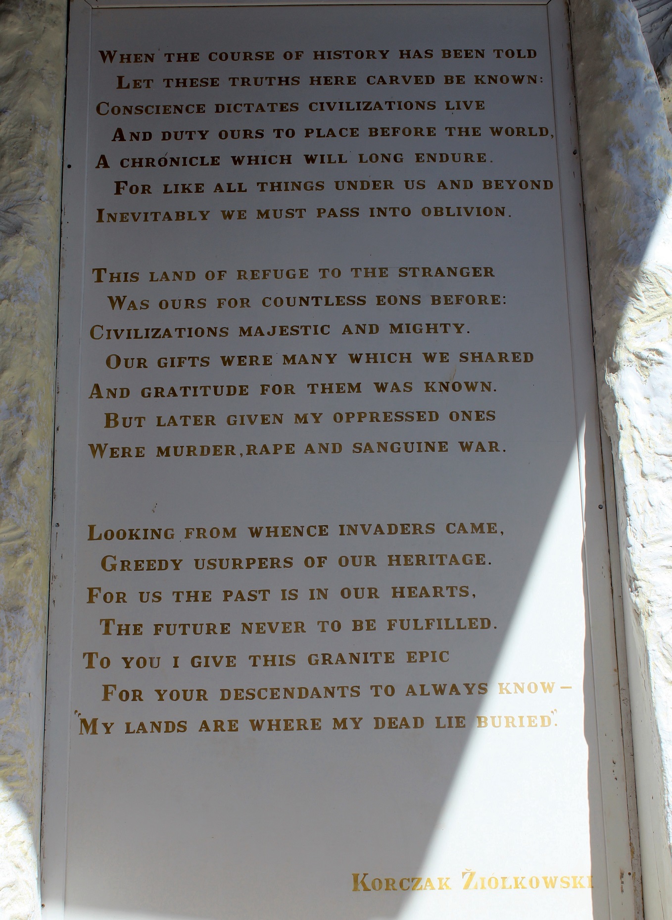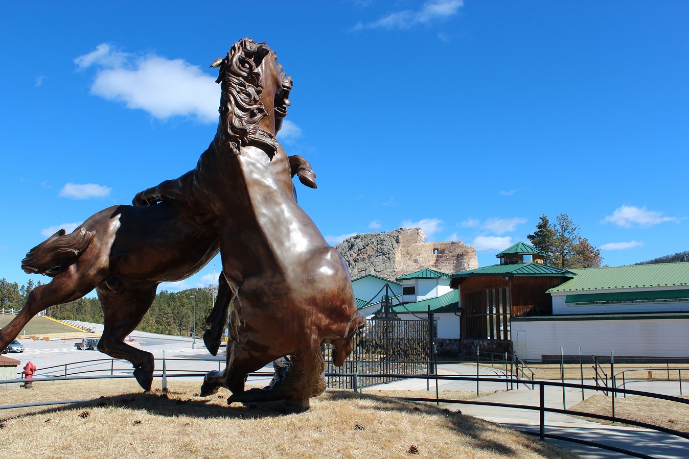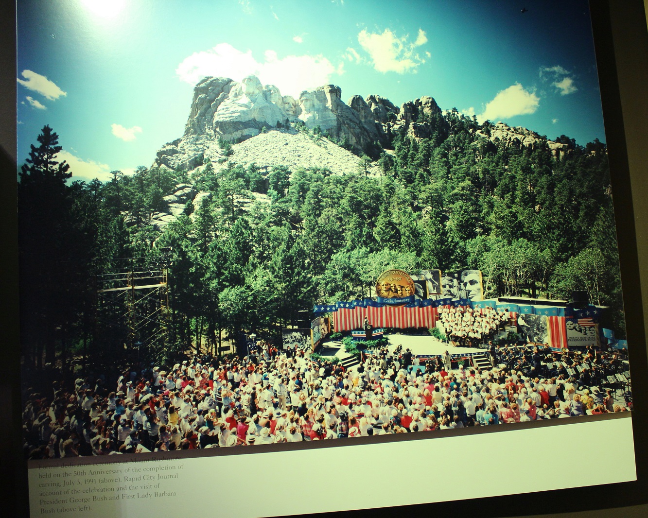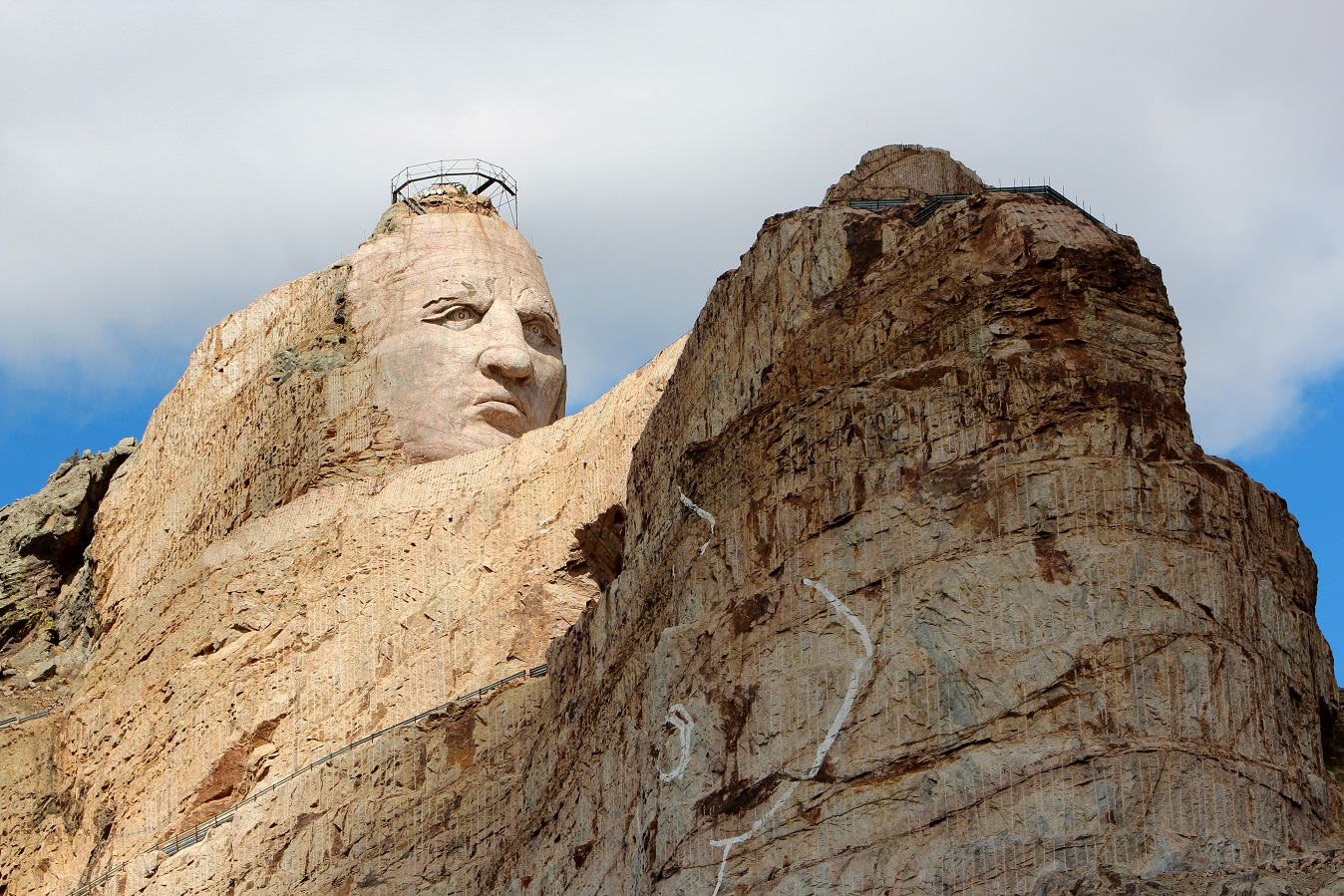 [This was one of the more amazing stories . . . Korczak started the sculpture all by himself in 1948. It was more than 700 stairs up to his work area, carrying about 50 pounds of equipment with him. He ultimately realized he needed a compressor, bought this one used (a Buda, as I recall), and he would crank start it and then begin his climb. But it was not reliable and often conked out – he would have to go back down to re-start it. One day he did that NINE times! I can’t even imagine what kind of shape he was in, and he was not a young man. So, Crazy Horse has been under construction for 67 years, most of that time span by Korczak himself. More workers of late have made much more progress in the last 15 years than Korczak did in the first 50 years. Best estimates are that it is still at least 20 – 30 years from completion. Guess I won’t see it.]