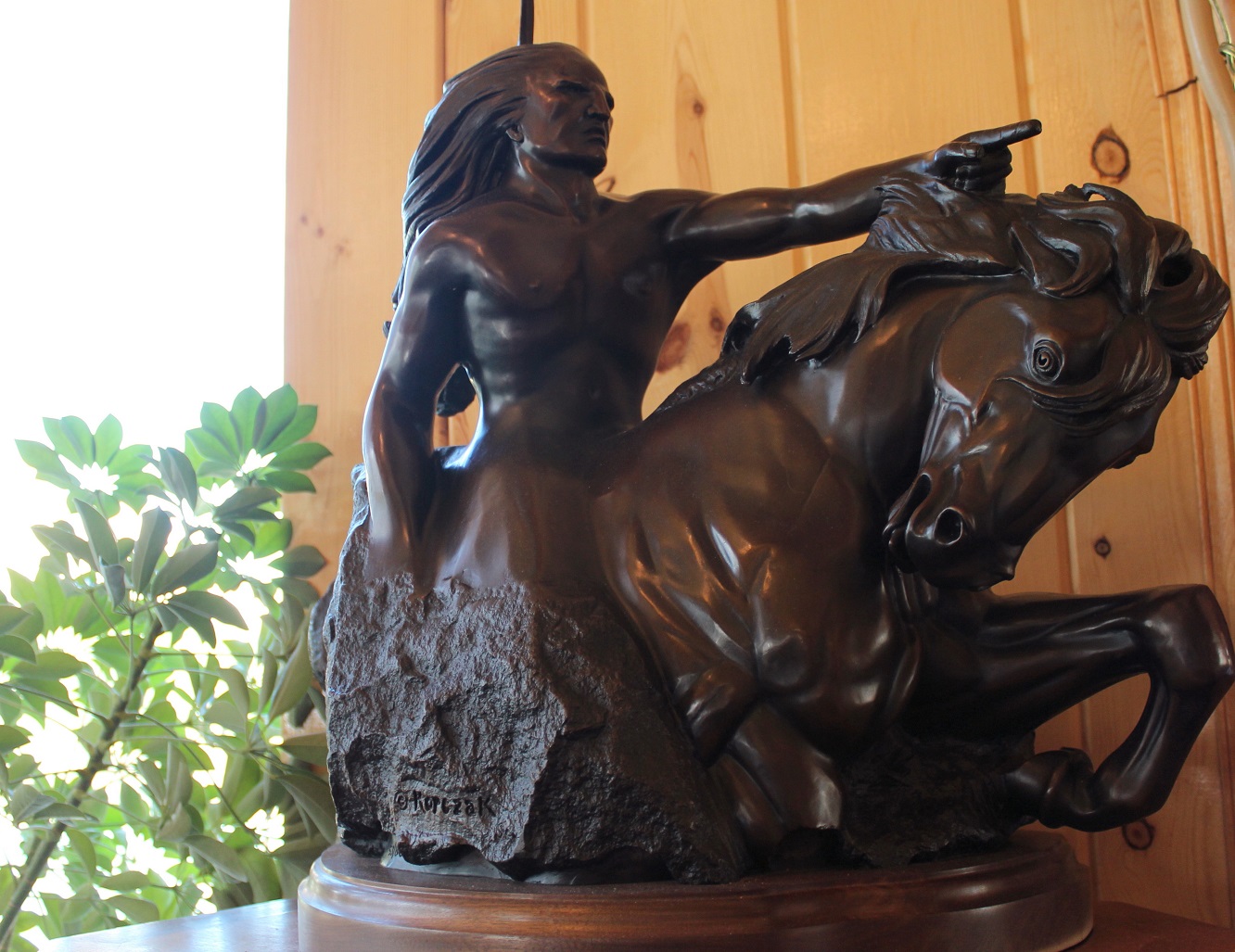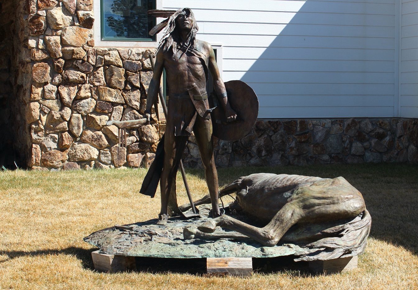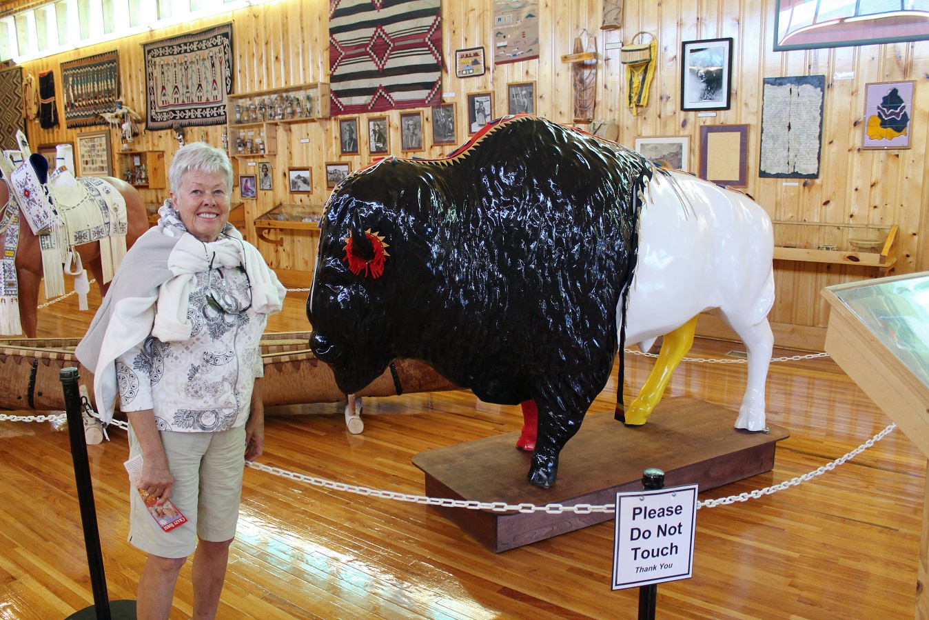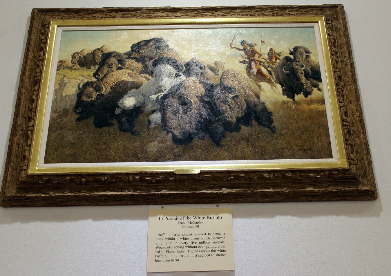 [This was one of the more amazing stories . . . Korczak started the sculpture all by himself in 1948. It was more than 700 stairs up to his work area, carrying about 50 pounds of equipment with him. He ultimately realized he needed a compressor, bought this one used (a Buda, as I recall), and he would crank start it and then begin his climb. But it was not reliable and often conked out – he would have to go back down to re-start it. One day he did that NINE times! I can’t even imagine what kind of shape he was in, and he was not a young man. So, Crazy Horse has been under construction for 67 years, most of that time span by Korczak himself. More workers of late have made much more progress in the last 15 years than Korczak did in the first 50 years. Best estimates are that it is still at least 20 – 30 years from completion. Guess I won’t see it.]