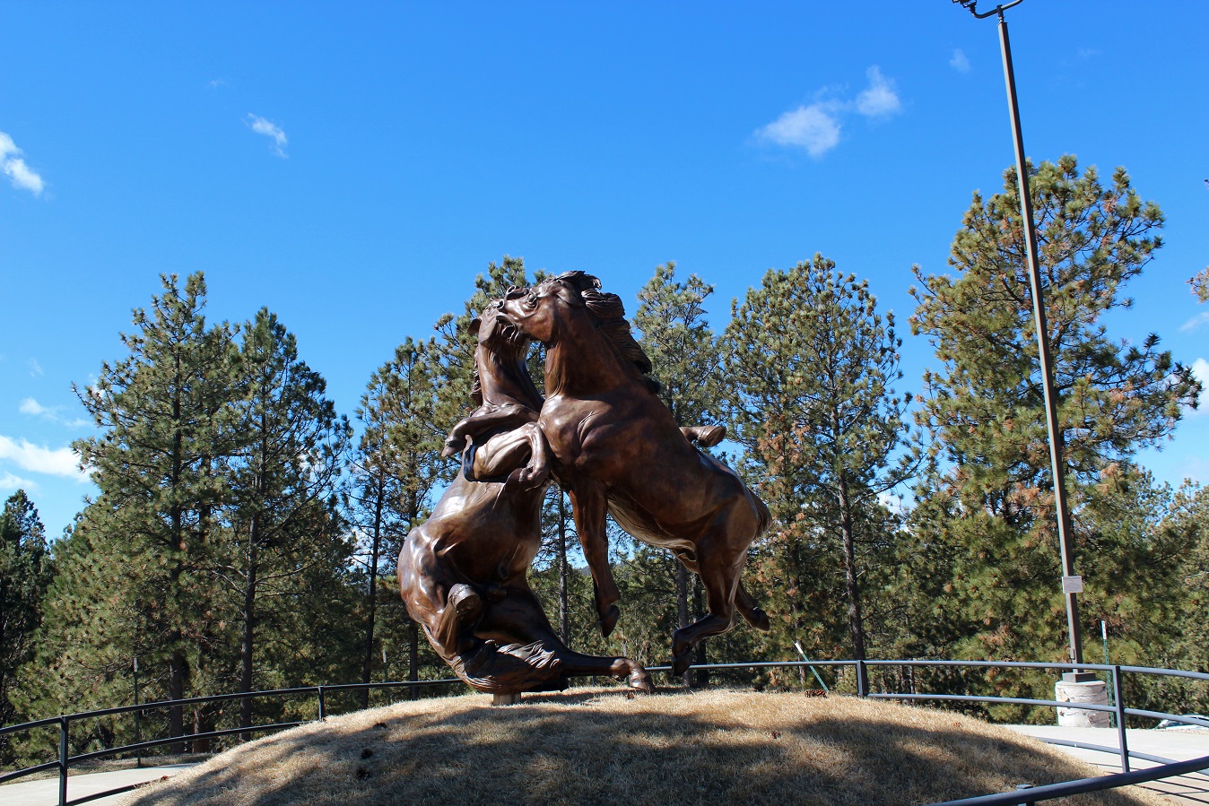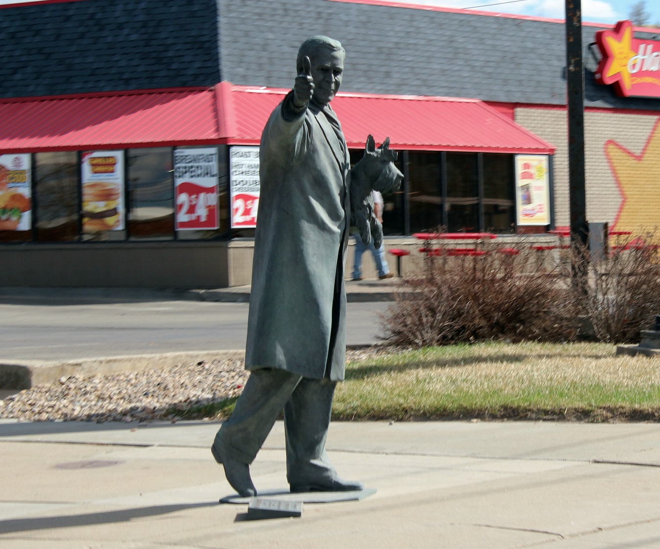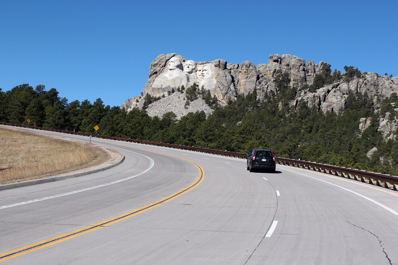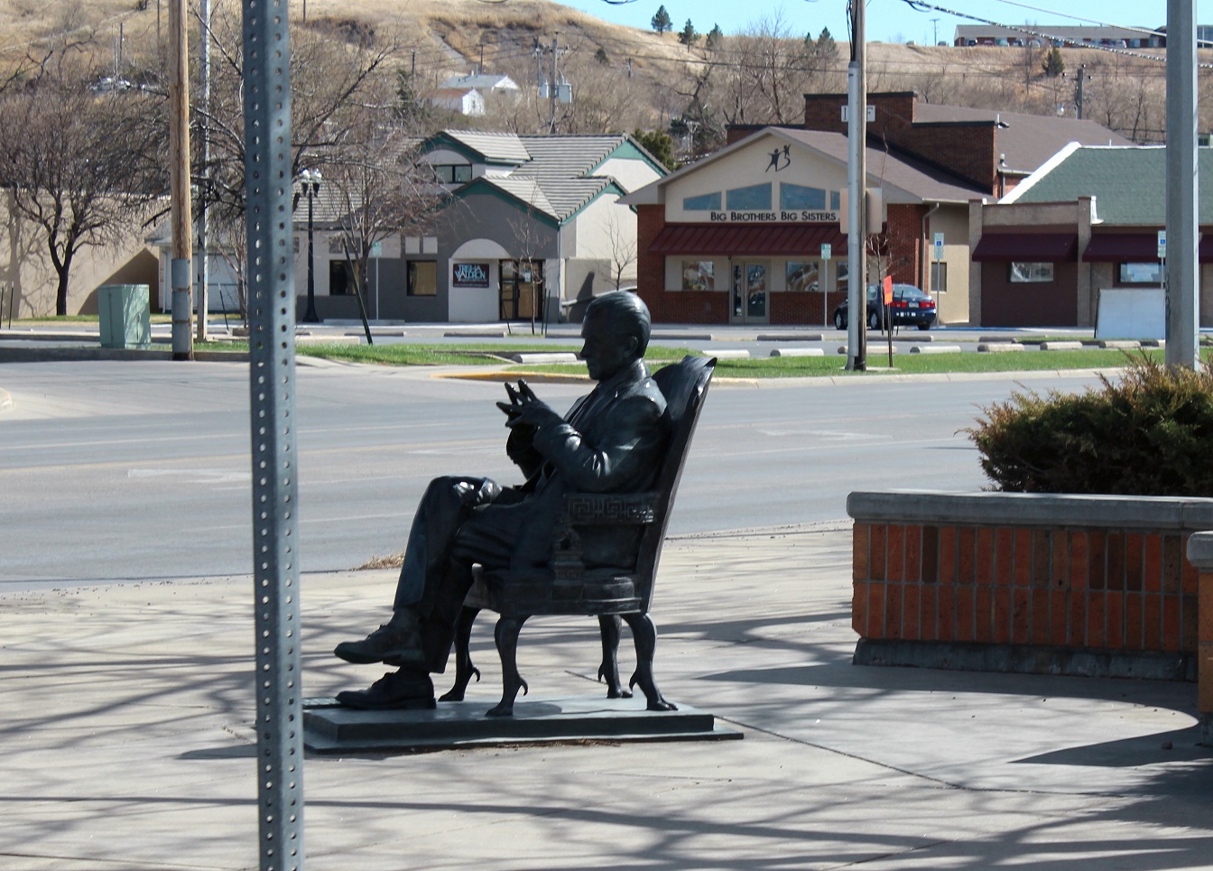 [What to do with a full day in Rapid City? Hmmm, I guess Mt. Rushmore and Crazy Horse come immediately to mind. And in the “City of Presidents,” you will find every one of them on a street corner. These were some of the ones the Supervisor roared by on our way to the three presidents on the mountainside.]