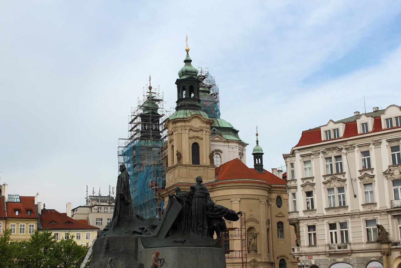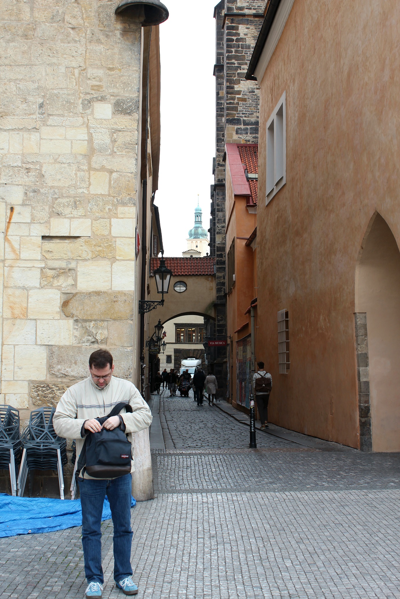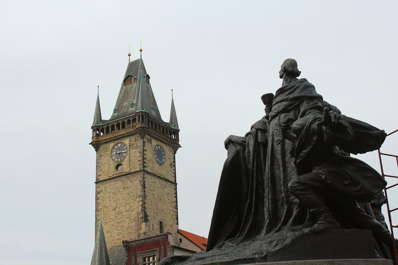 [Displaying photographic bona fides, Mr. Hus with the Old Town City Hall clock tower.]