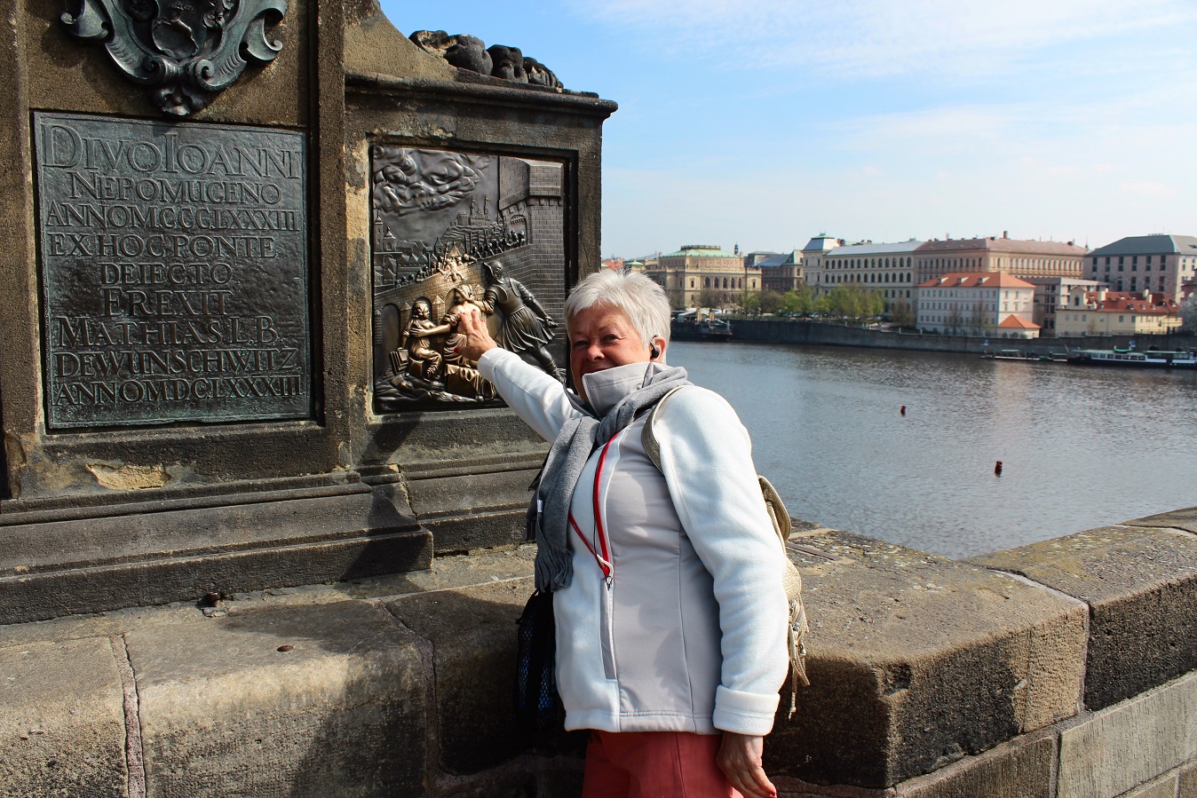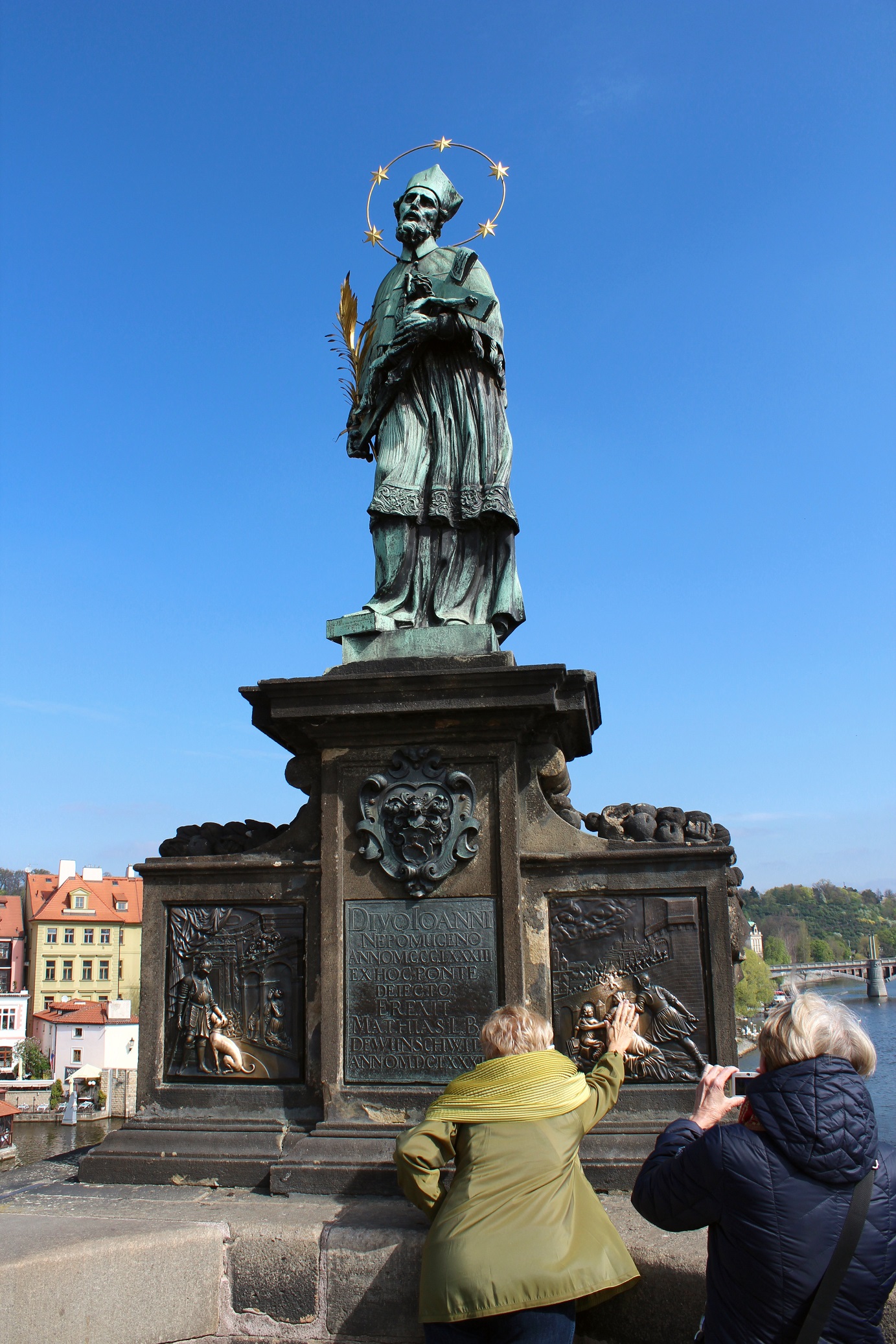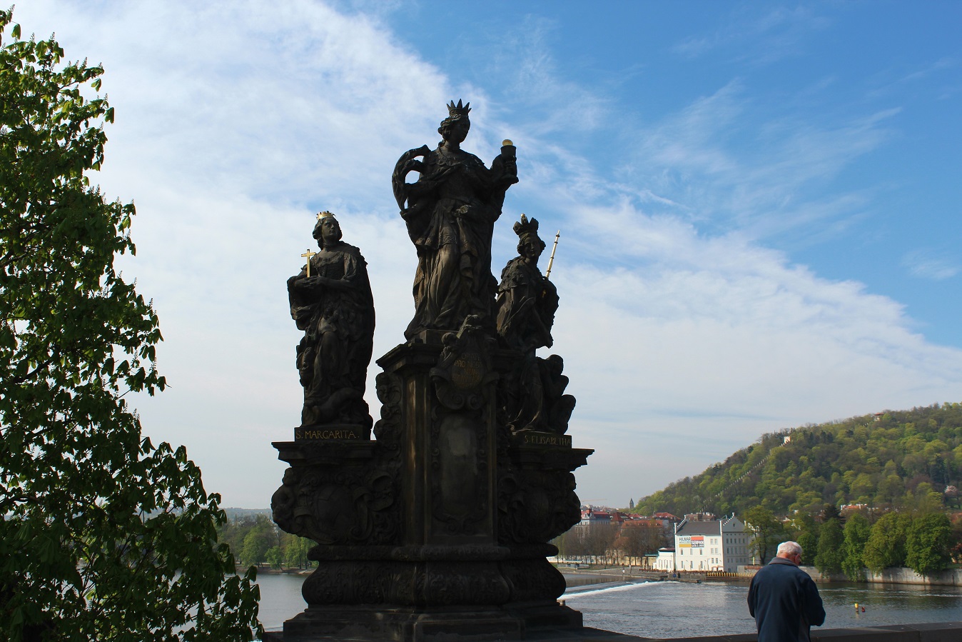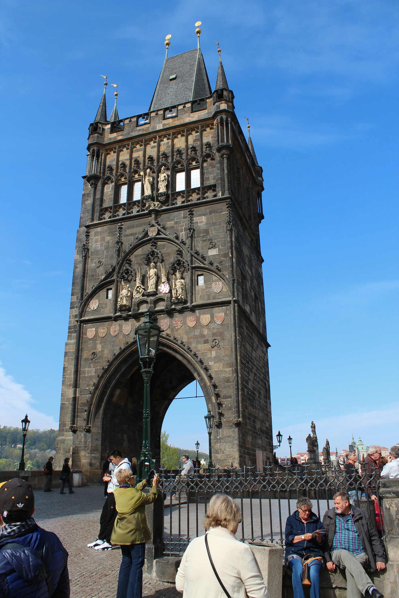[And now we’re across the bridge and walking to a bus to take us to Prague Castle.]