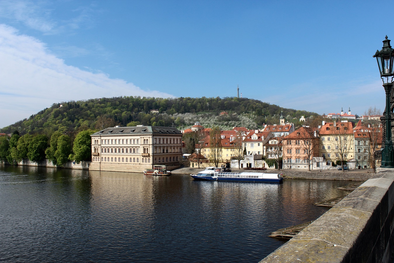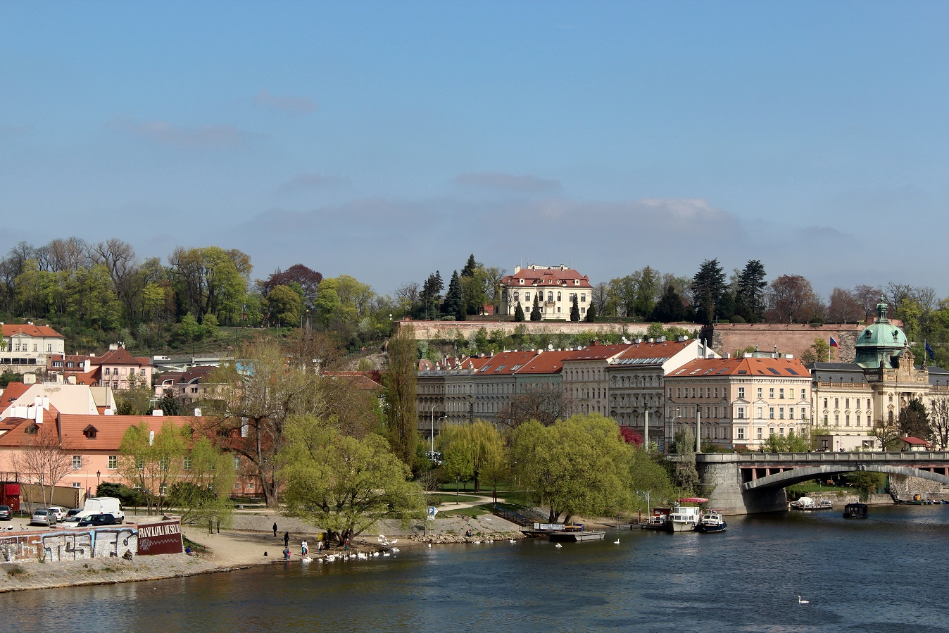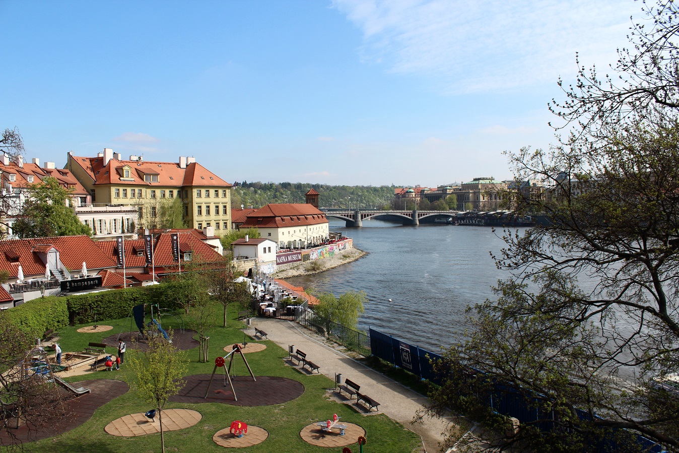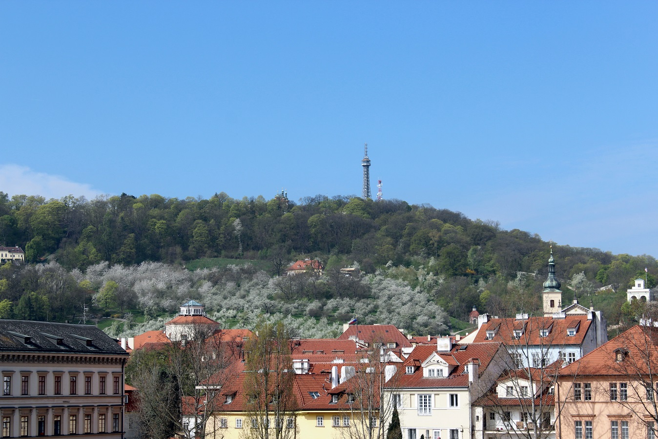 [The Eiffel Tower in the distance.  It is!  Built as a mini version of Paris’s Eiffel Tower, the Petrin Observation Tower was built in 1891 for the Jubilee Exhibition.  The tower is 60m tall, which doesn’t seem particularly high until you add in the fact that it sits at the summit of Petrin Hill, which is 318m (1043 feet) high.  Climb the 299 steps to reach the top of the tower and the view over Prague is magnificent. On a clear day it is possible to see the highest peak in the Czech Republic, Snezka, which is 150km away [Prague experience.com].]