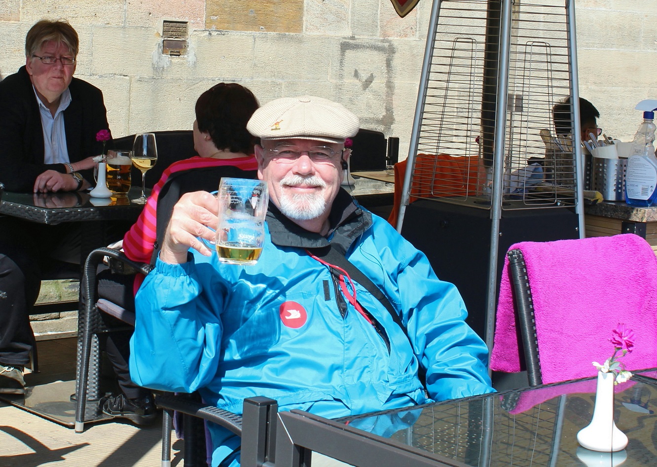 [The Prague Castle over the top of the Super’s head . . . and we’re heading that way.]