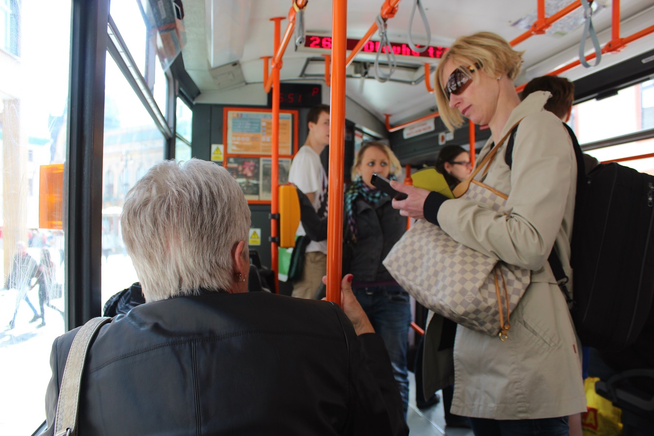 [With the Super, Reetz, and Karen on the funicular ride to the top of Petrin Hill.]