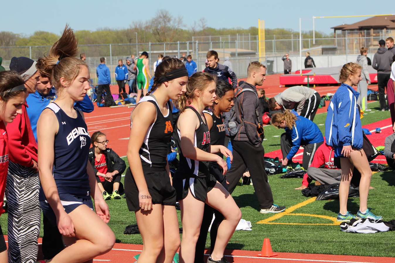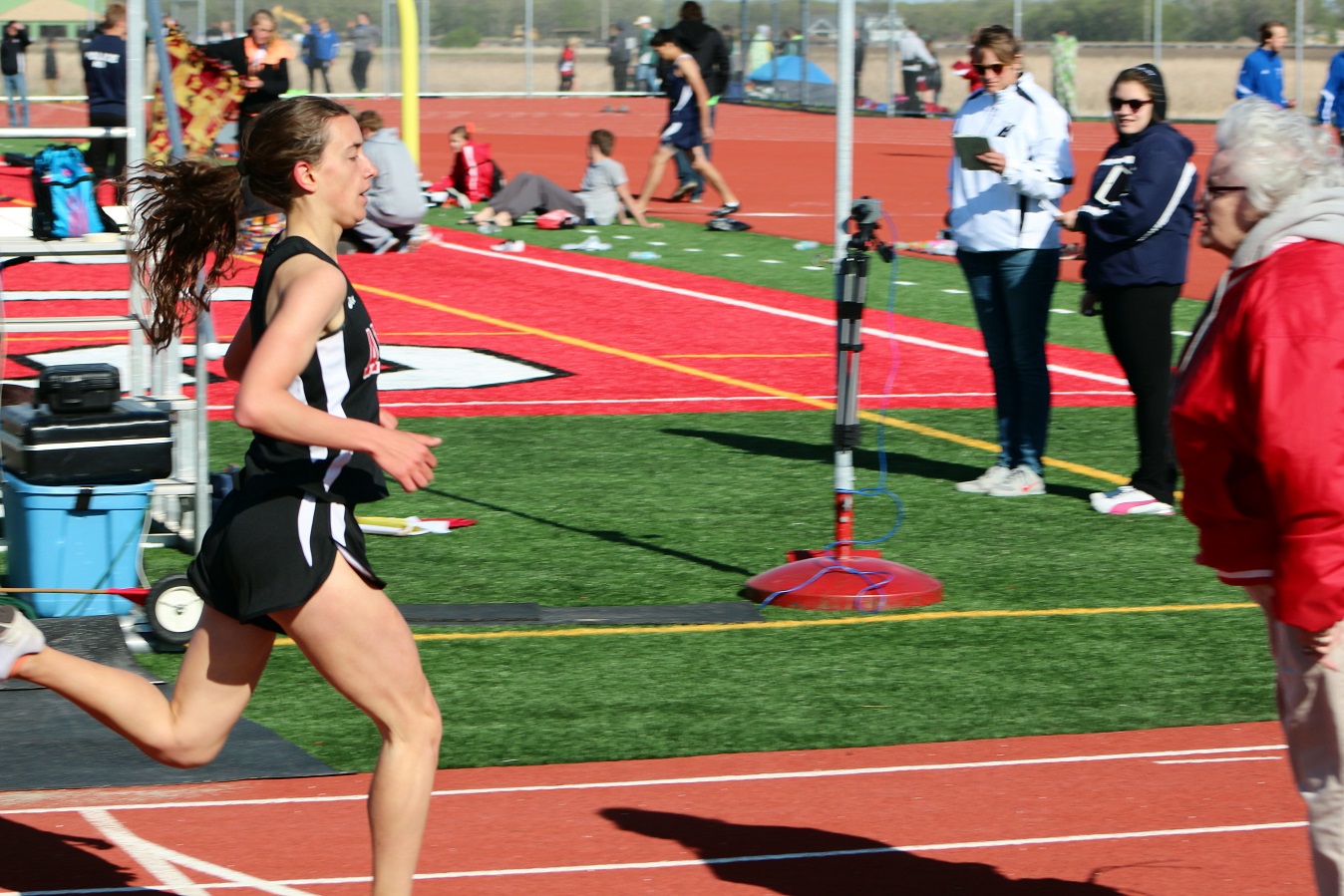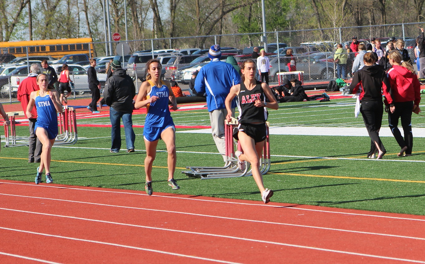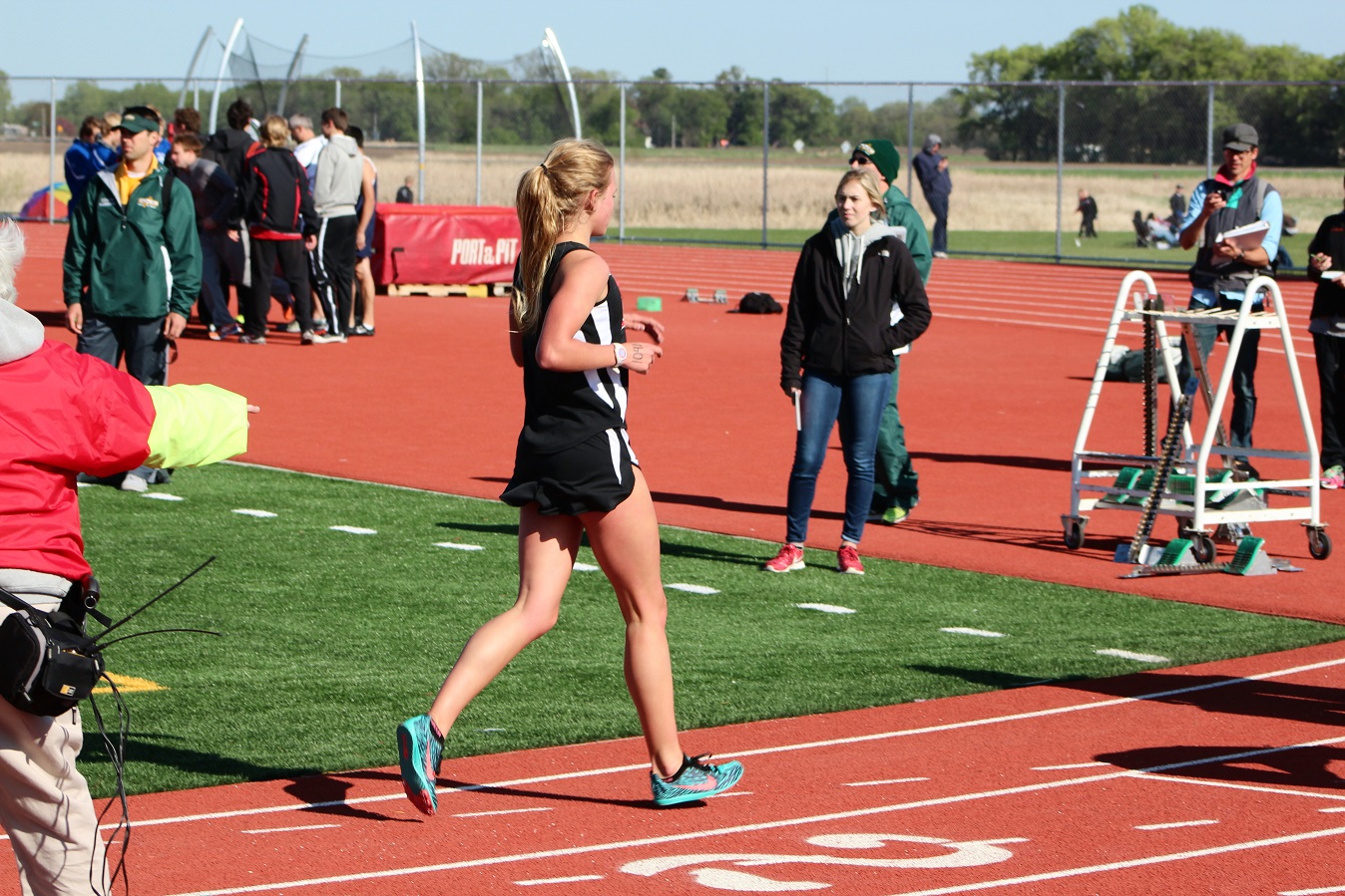[The distance races are all about the Hasz sisters. Megan won here in 5:01; she was hoping to finish under 5:00 but it was a strong head wind on the back stretch. Bethany later won the 3200-meter.]