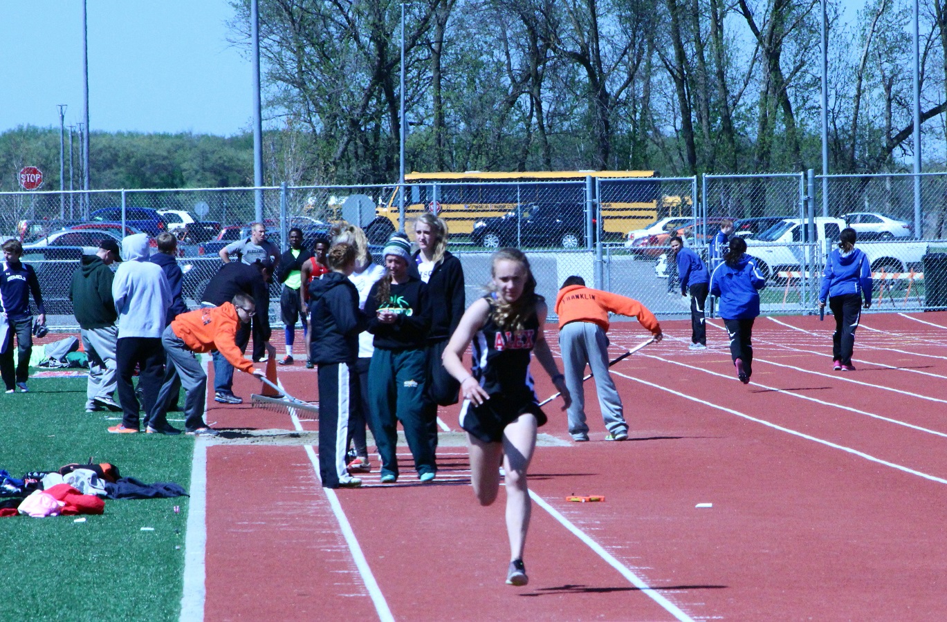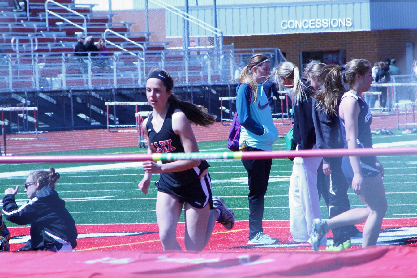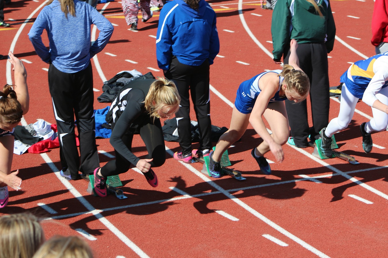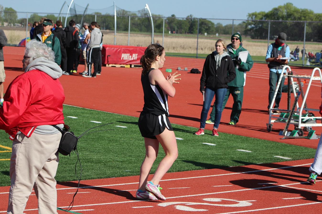 [The distance races are all about the Hasz sisters. Megan won here in 5:01; she was hoping to finish under 5:00 but it was a strong head wind on the back stretch. Bethany later won the 3200-meter.]