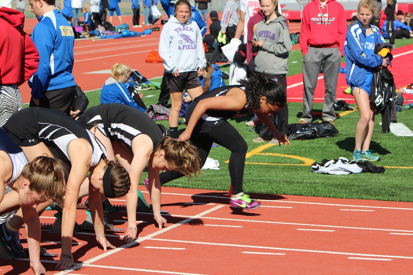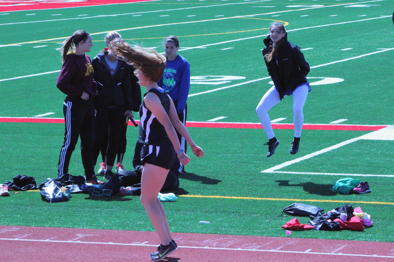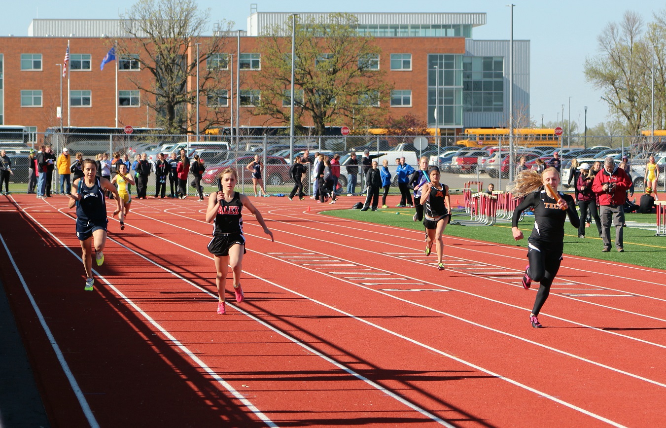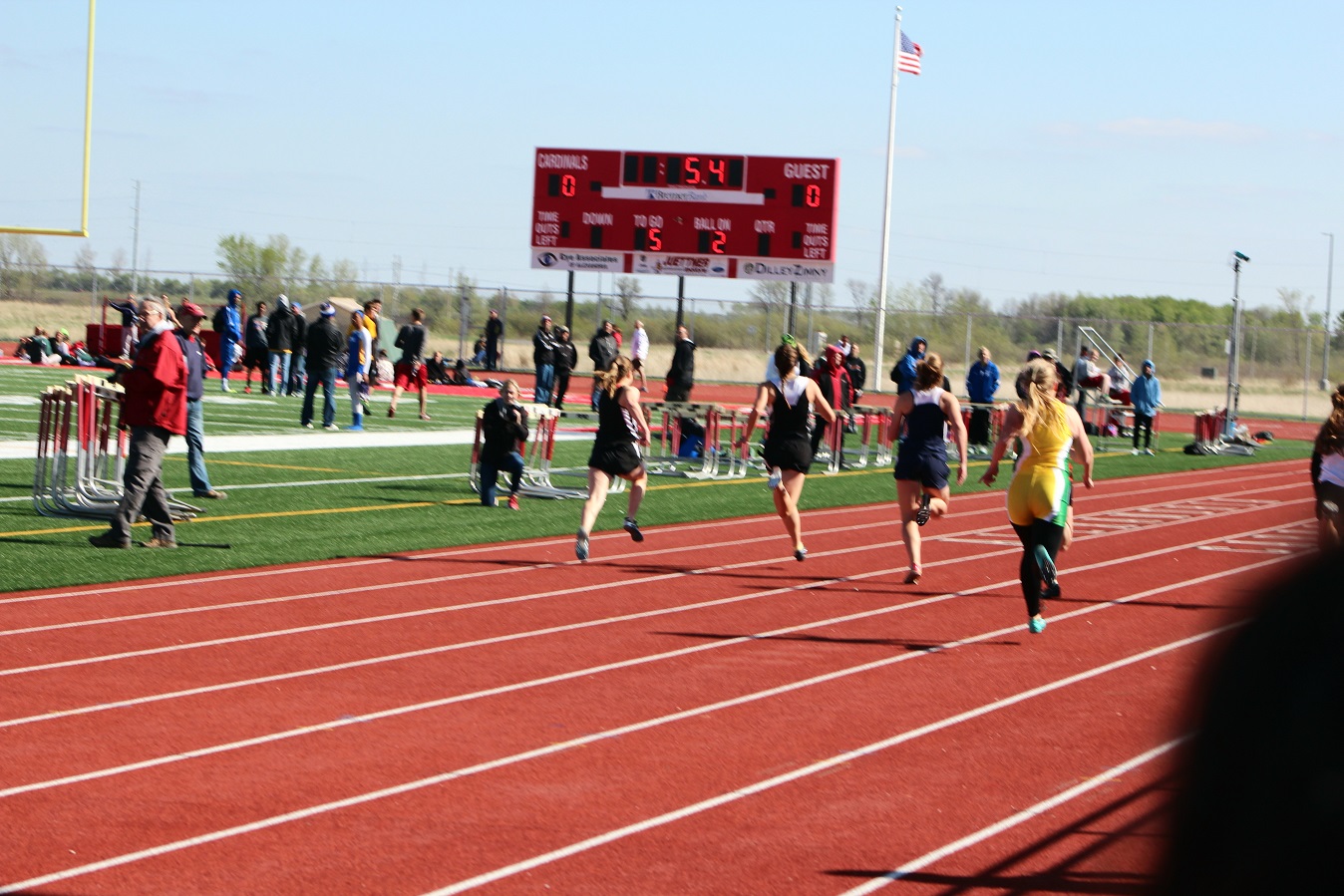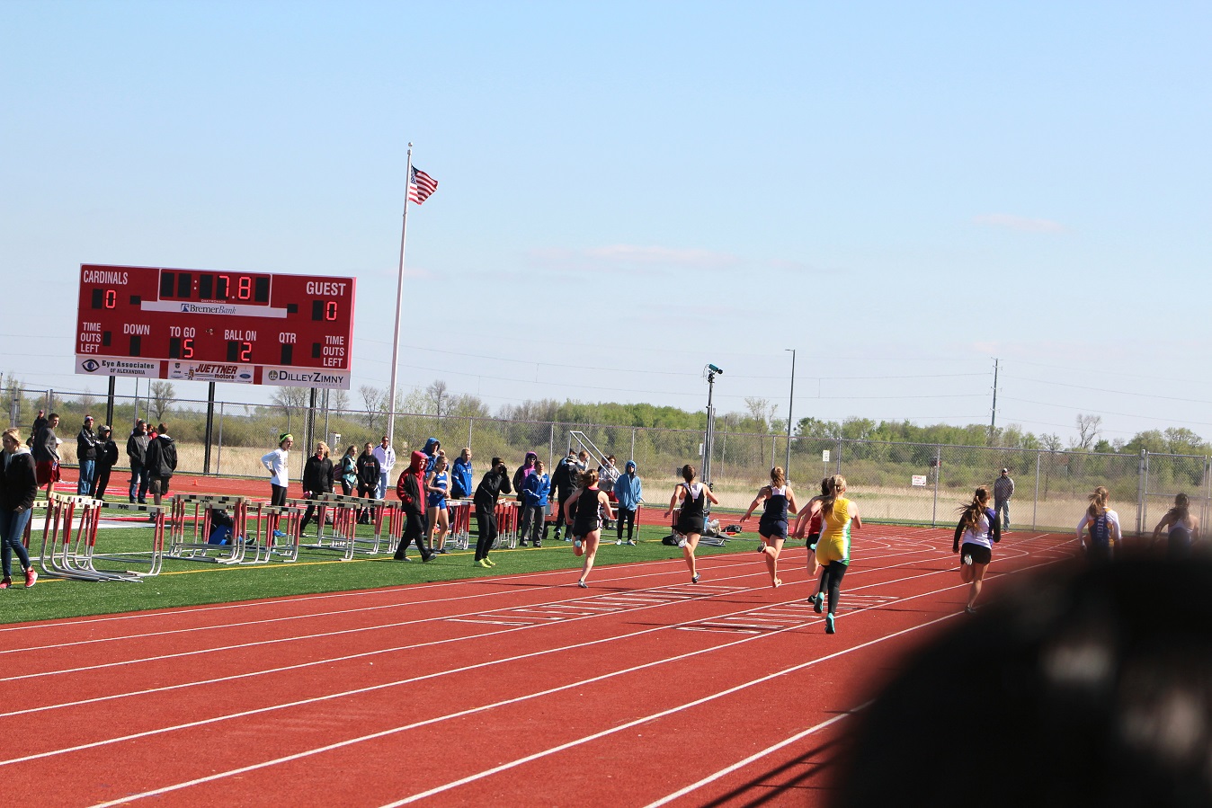 [The distance races are all about the Hasz sisters. Megan won here in 5:01; she was hoping to finish under 5:00 but it was a strong head wind on the back stretch. Bethany later won the 3200-meter.]