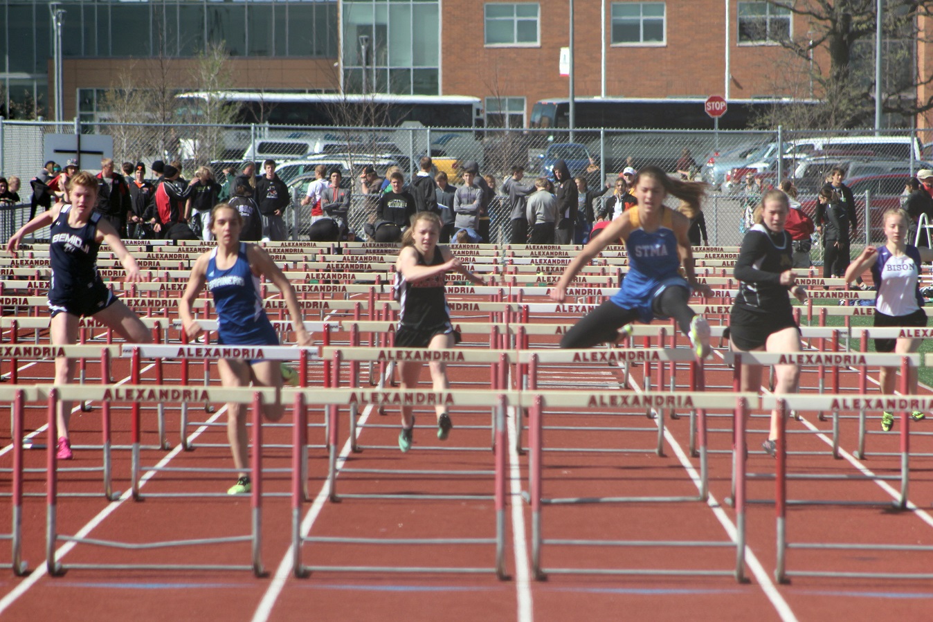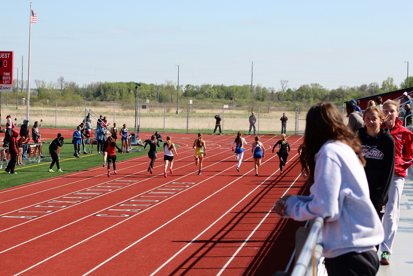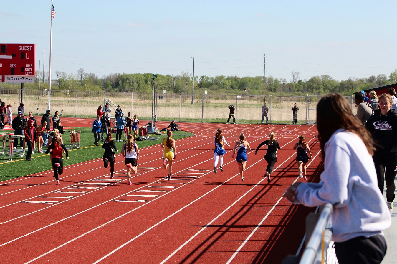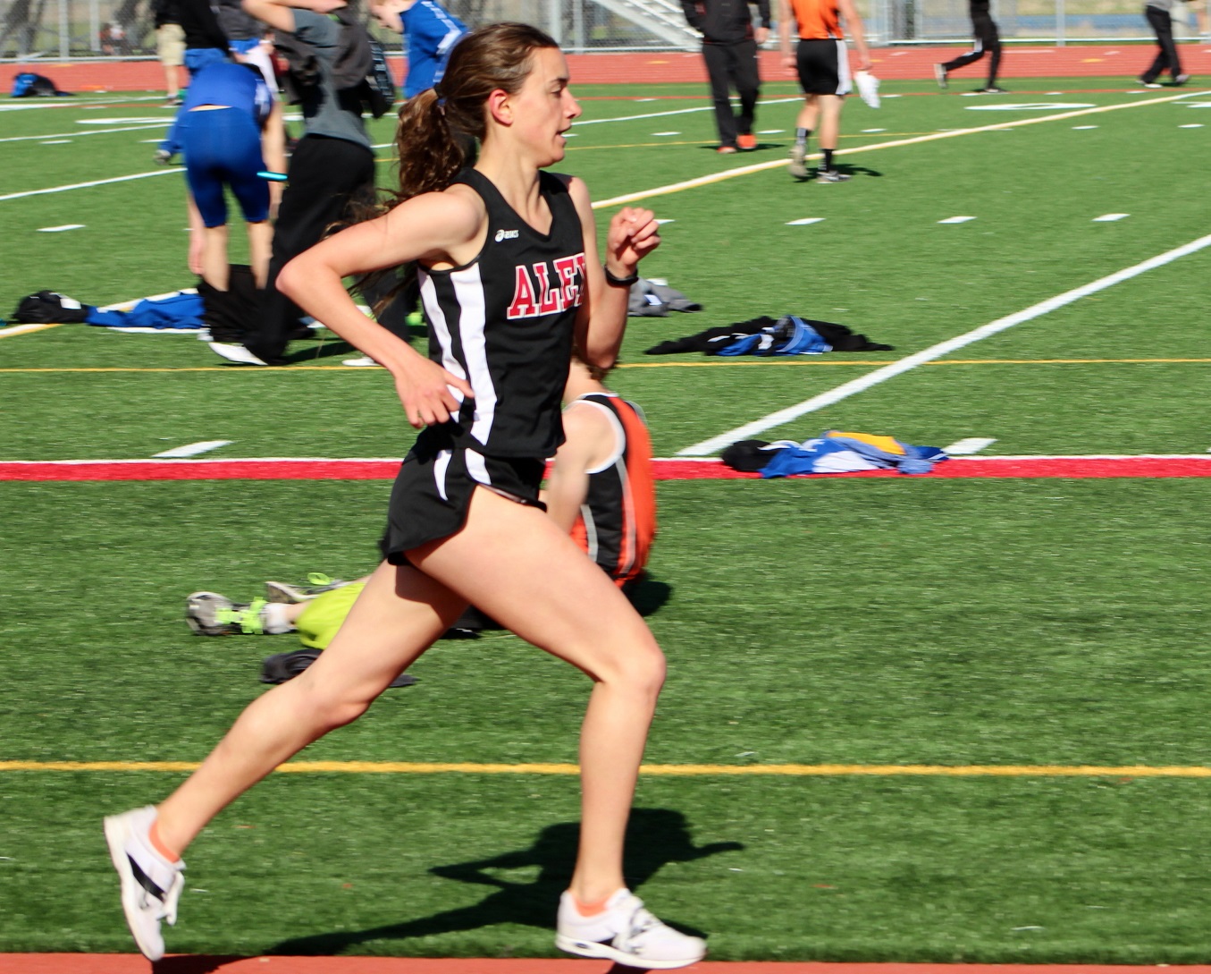 [The distance races are all about the Hasz sisters. Megan won here in 5:01; she was hoping to finish under 5:00 but it was a strong head wind on the back stretch. Bethany later won the 3200-meter.]