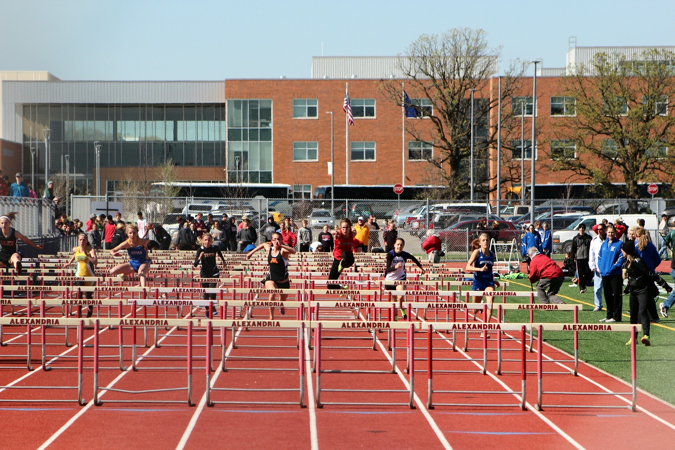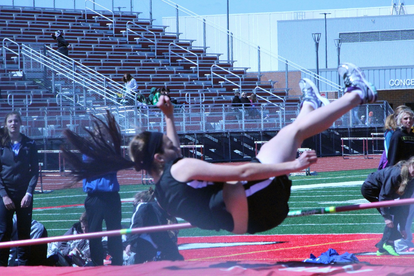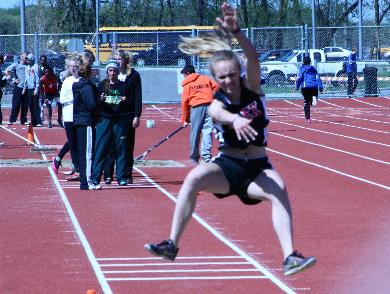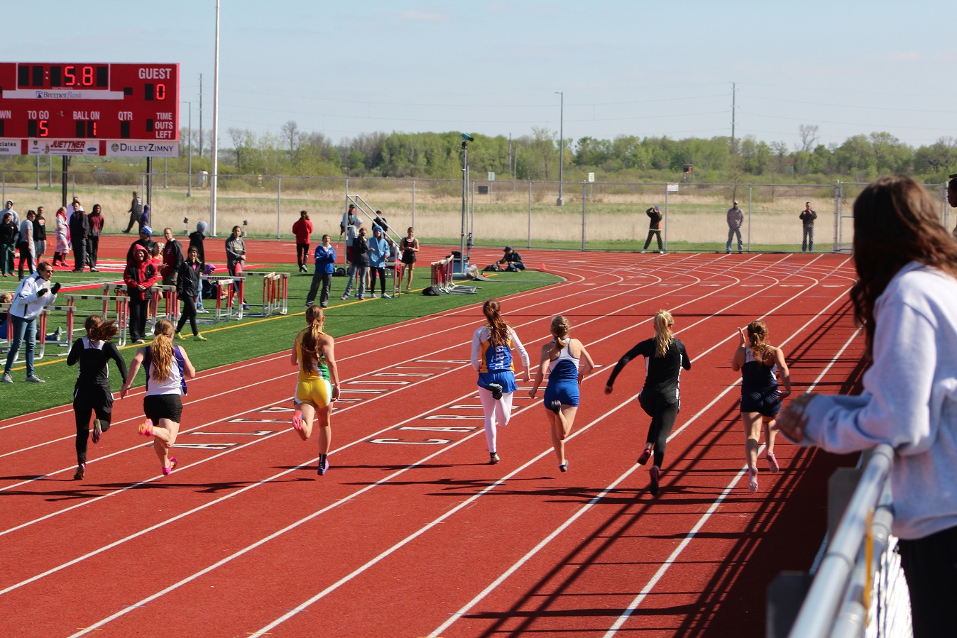 [The distance races are all about the Hasz sisters. Megan won here in 5:01; she was hoping to finish under 5:00 but it was a strong head wind on the back stretch. Bethany later won the 3200-meter.]