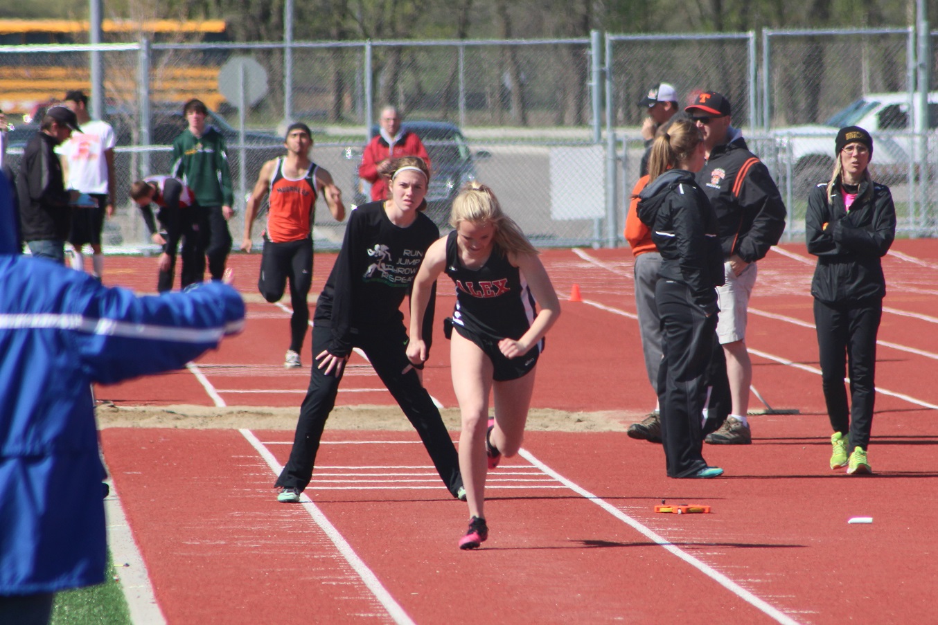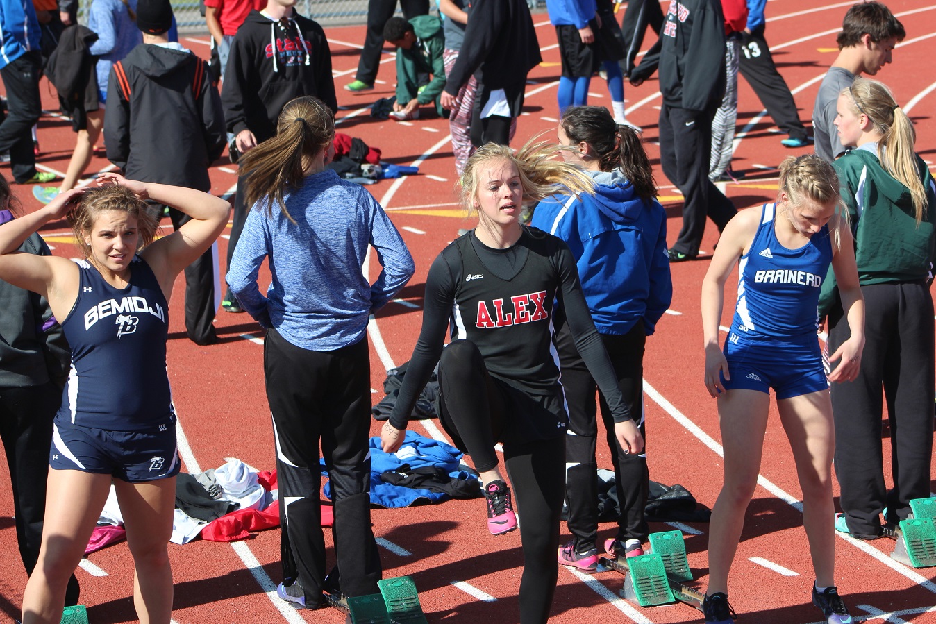 ‘Twas a beautiful day for a track meet at Alexandria Area High School. OK, 50-ish and blustery, but who doesn’t like all the sunshine? It was the True Team Section Meet – I don’t know what the means? It been been scheduled for Thursday but rain changed it to Friday. That made it possible for me to finally do some Cub Reporting this spring (hadn’t been to a single sports event yet) – Thursdays are always overbooked. Anyway, there were nine teams involved – a feeble attempt at naming them all is Alex, Moorhead, Monticello, St. Cloud Tech, Sauk Rapids, St. Michael-Albertville, Brainerd, Bemidji, and Buffalo. I did it! I don’t know how to cover a big track meet. I don’t think you can individually. It started at 3:00 and didn’t end until after 8:00 (I’m told) – I left a little after 6:00 after being on my feet for three hours. I don’t know many of our athletes. I tried to shoot anyone in an Alex jersey. It began with the field events. I found a spot in the southeast corner where with my head on a swivel I could see the long jump, the high jump, the shot put, and the discus. I don’t know who won anything (a coach this morning said he thought the boys finished 3rd and the girls 4th). I’ll leave the individuals unnamed if I don’t know them and maybe you readers can fill me in?