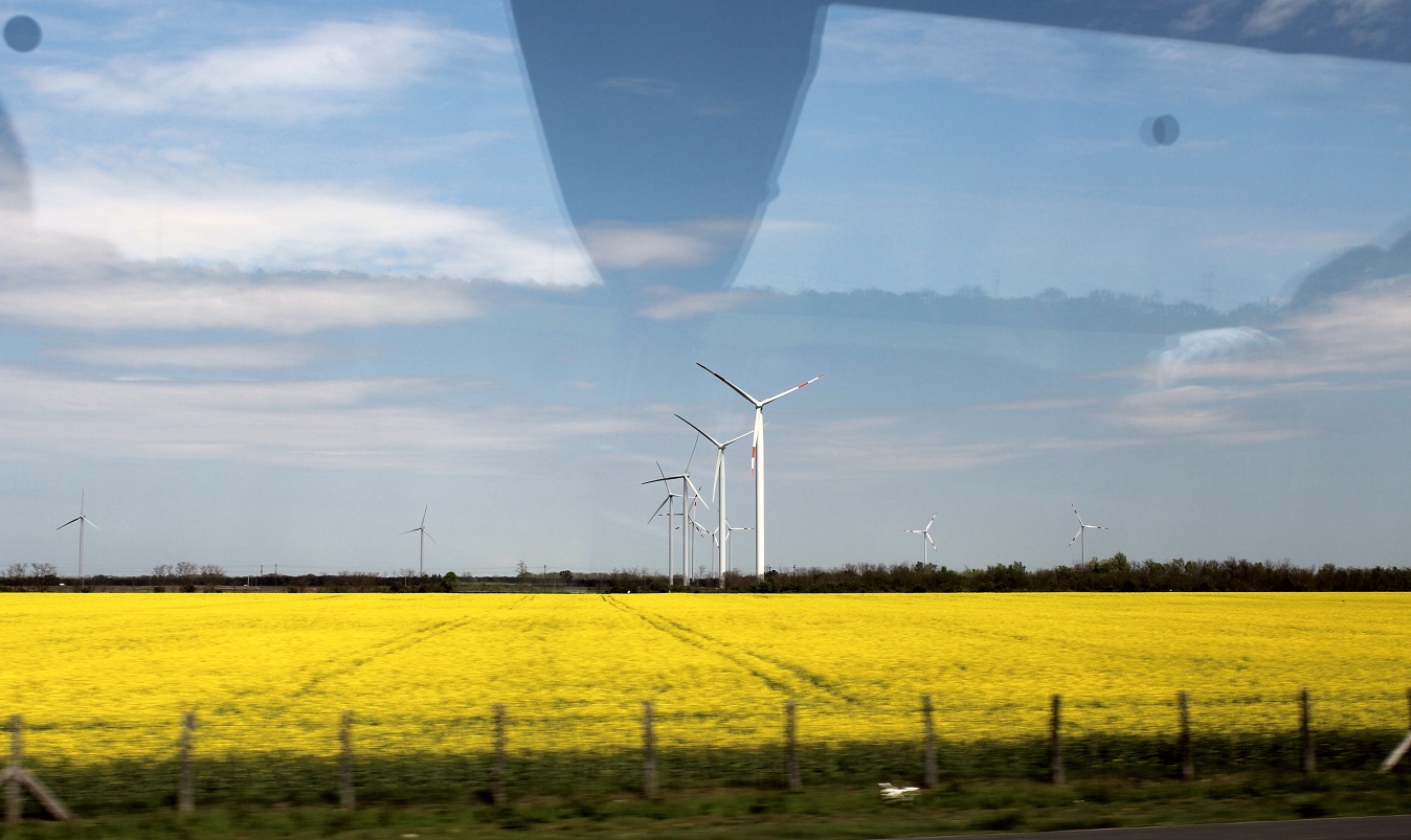 [These yellow fields of rapeseed are everywhere. They produce canola oil that is now principally used to make bio-diesel fuel.]