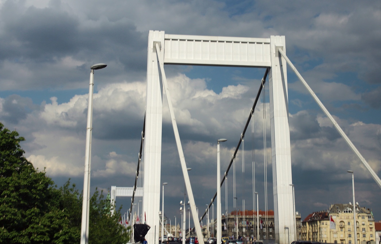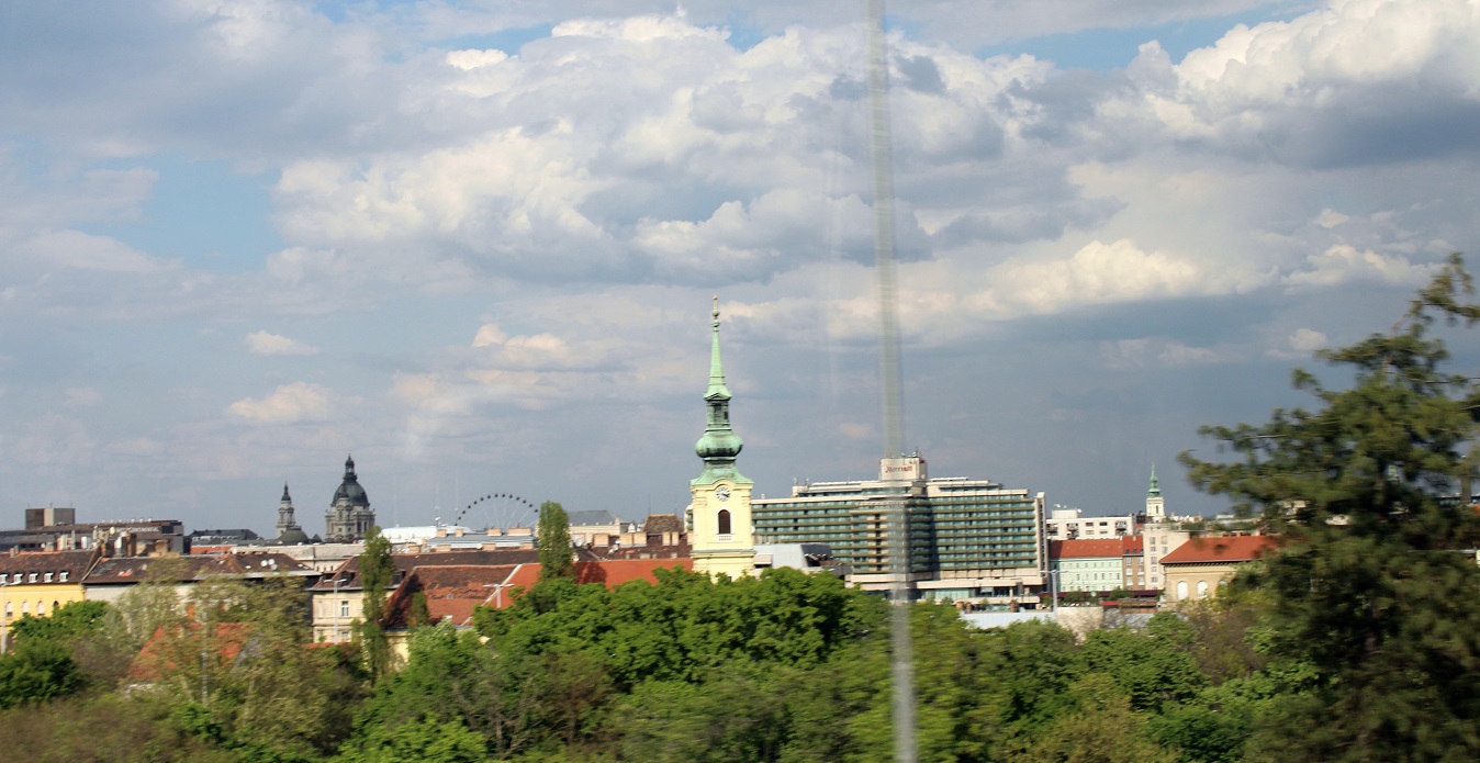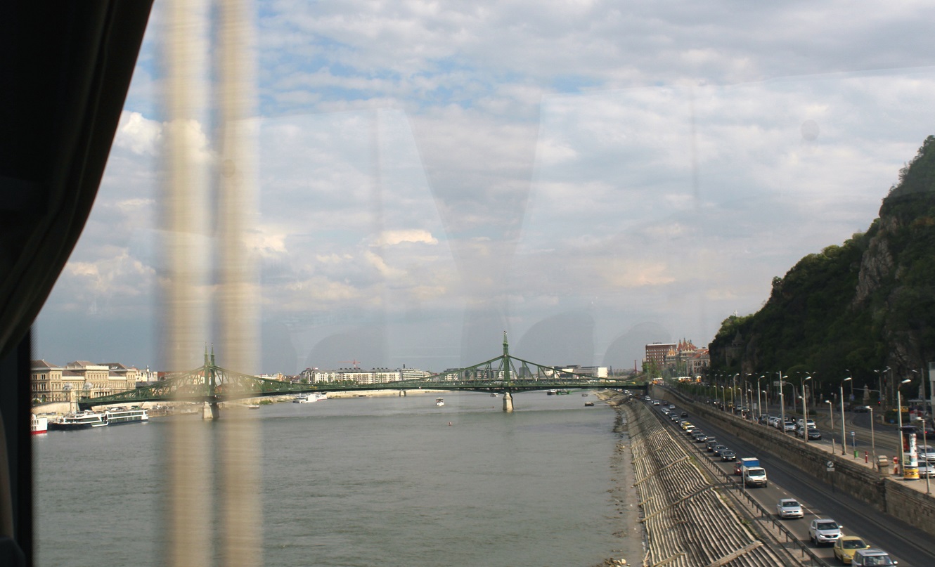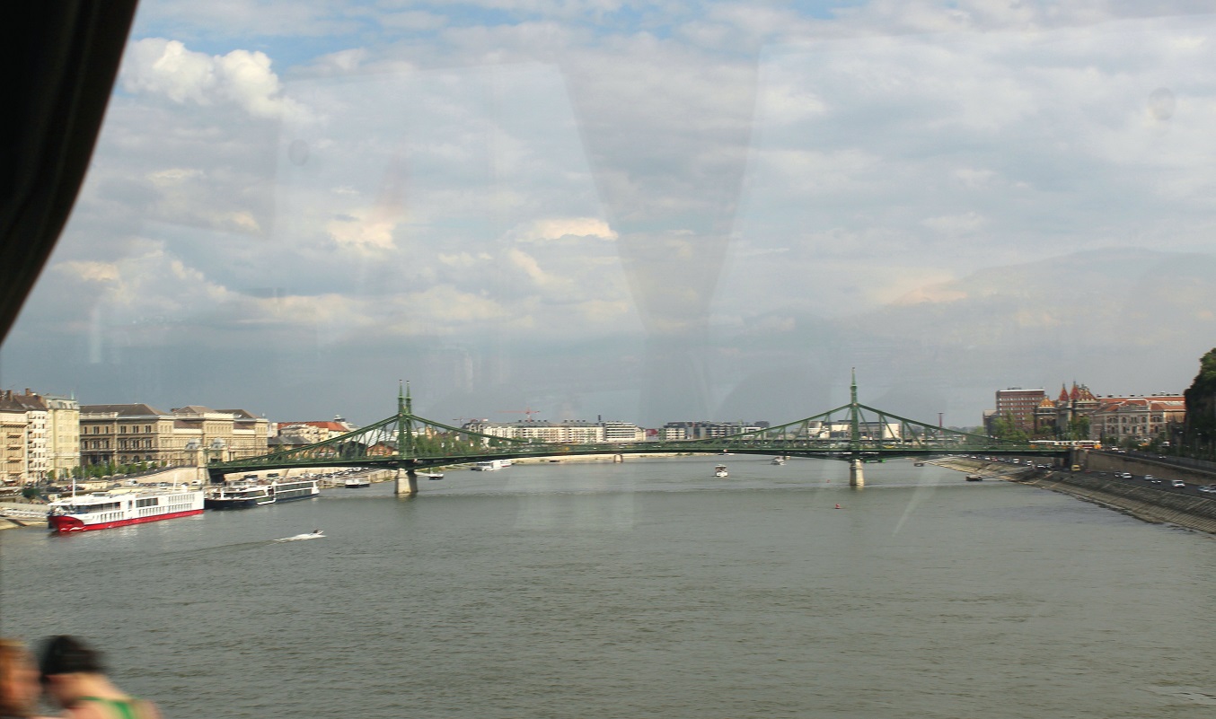 [Our first views of Budapest through the bus windows. In the immediate above photo is our hotel – the Marriott right on the Danube!]