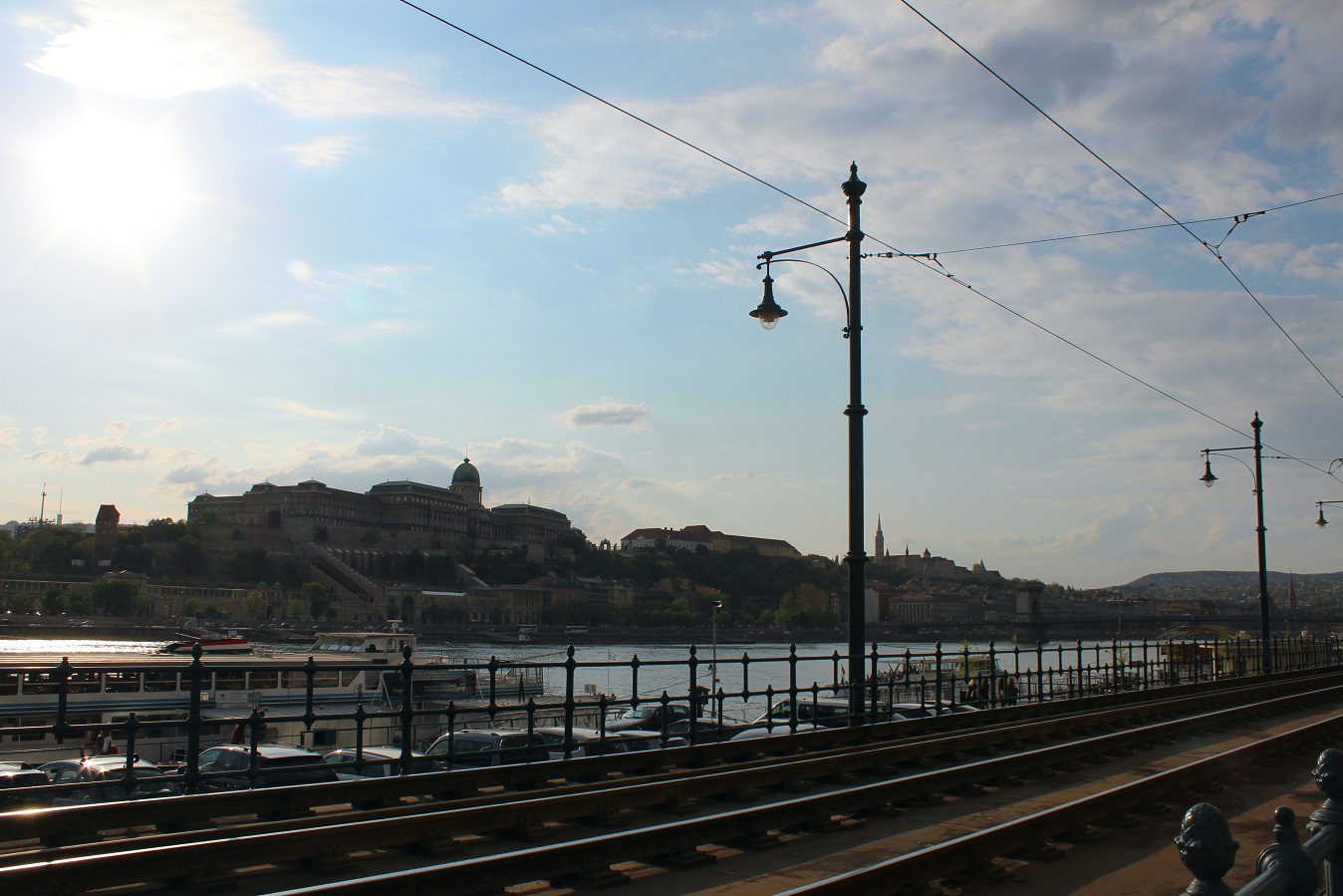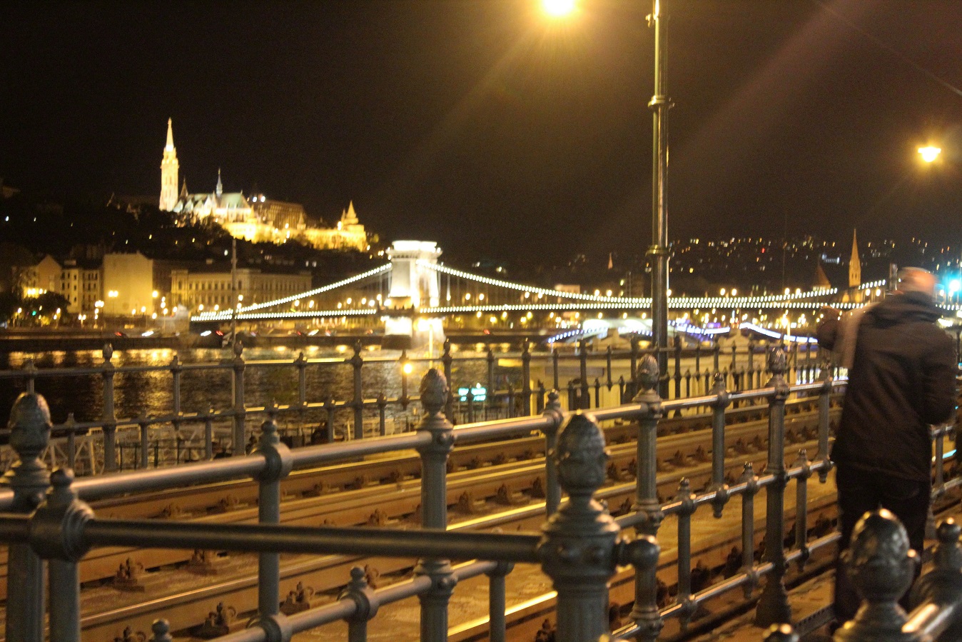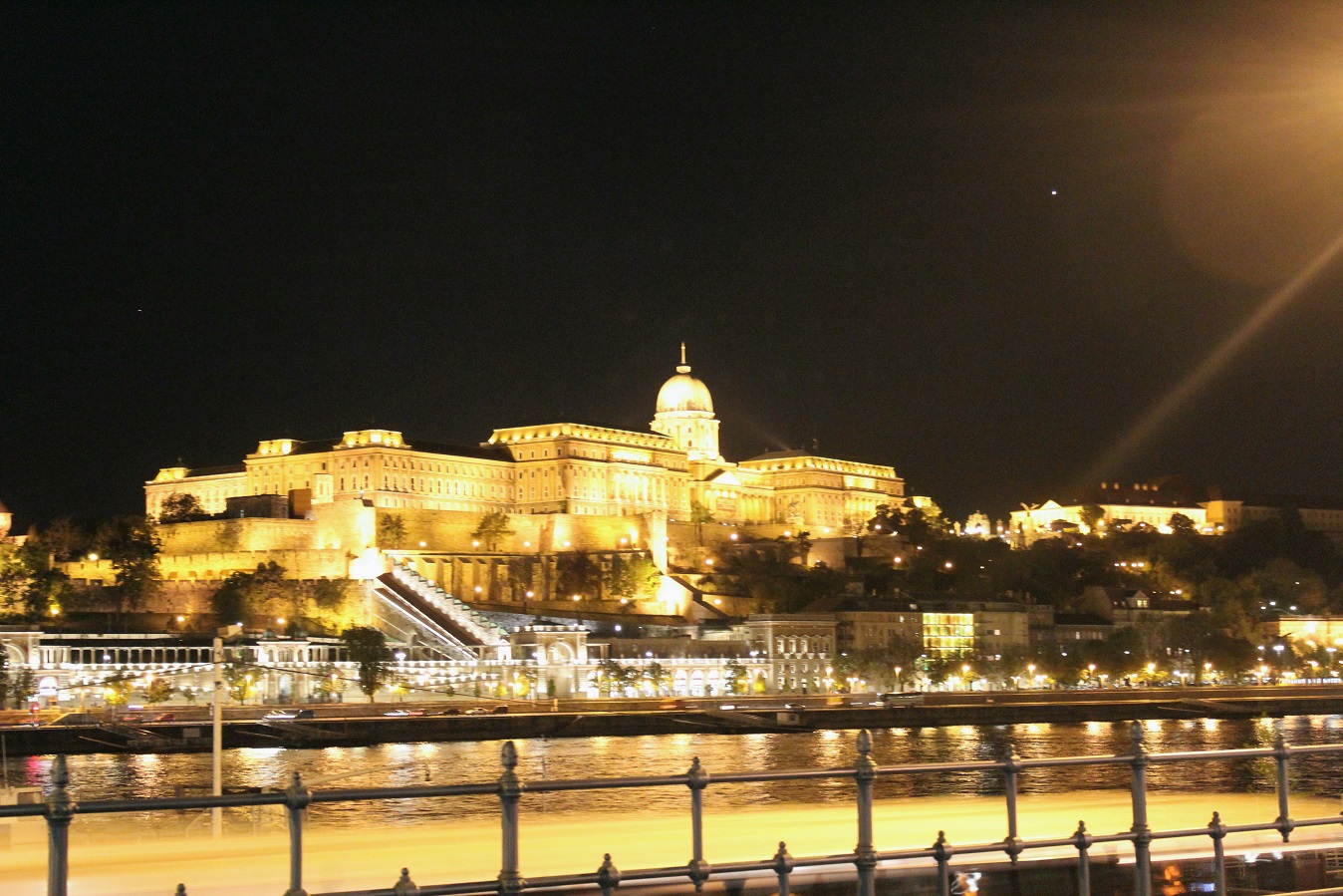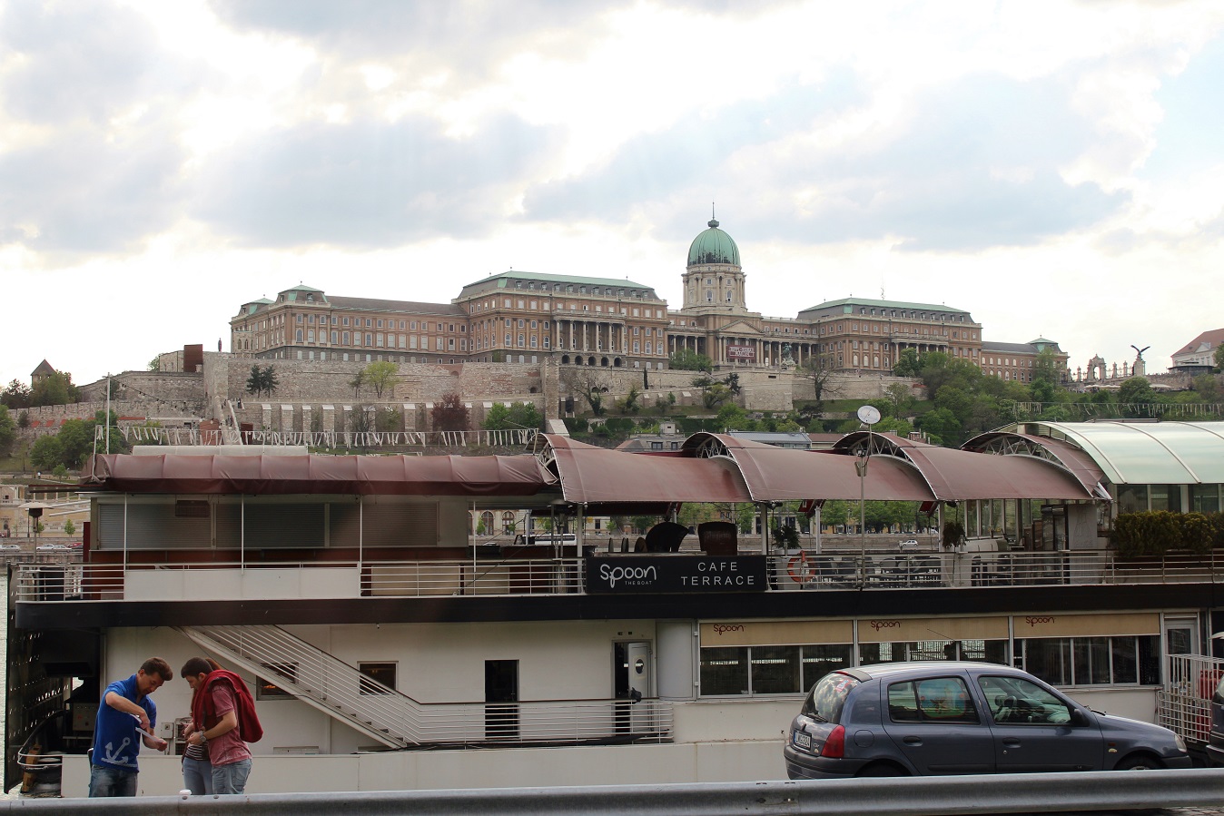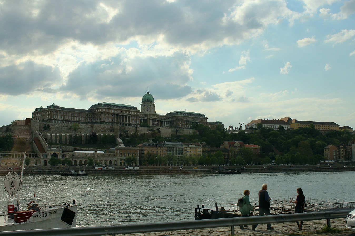 [And here’s where we’re heading, Budapest, the capital of Hungary. That’s Buda on the left, highlighted by Buda Castle (many following photos), and Pest on the right, where we stayed (the Marriott Hotel on the far right). That’s Chain Bridge connecting the two. [Photo on loan from Wikipedia.]]